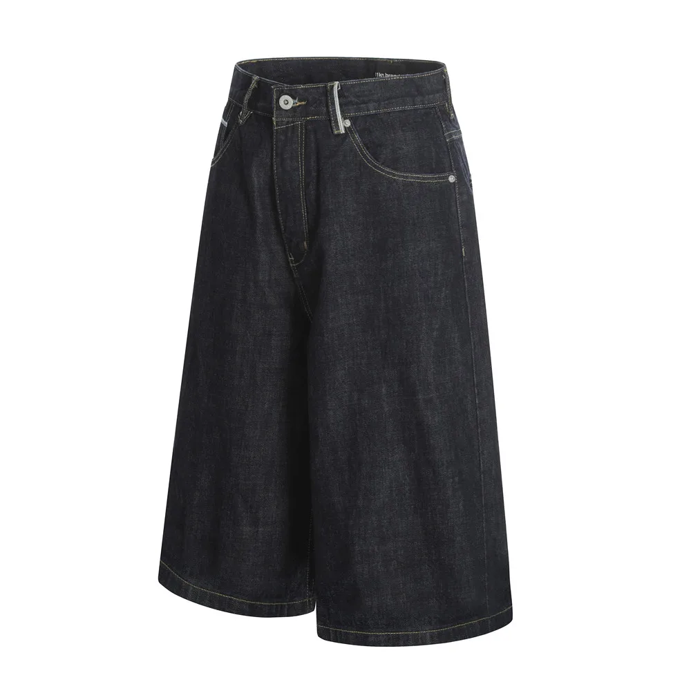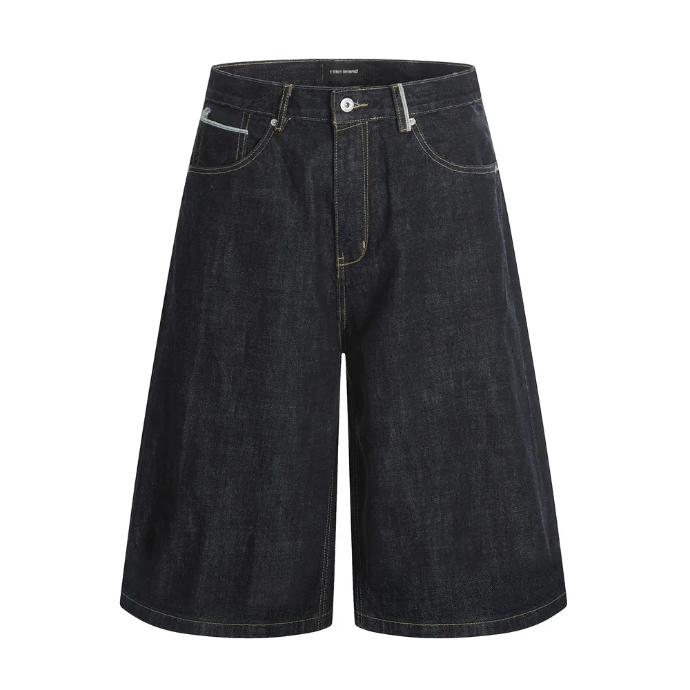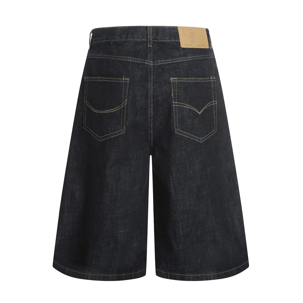 Pantaloncini di jeans grezzi Uomo Estate Retro Streetwear Bermuda Baggy oversize Gamba larga Topstitch Jeans corti al ginocchio solidi Uomo Jorts
