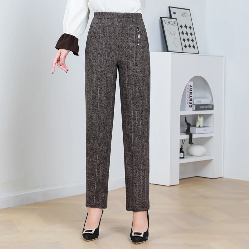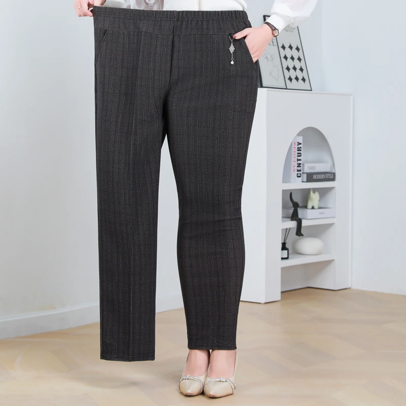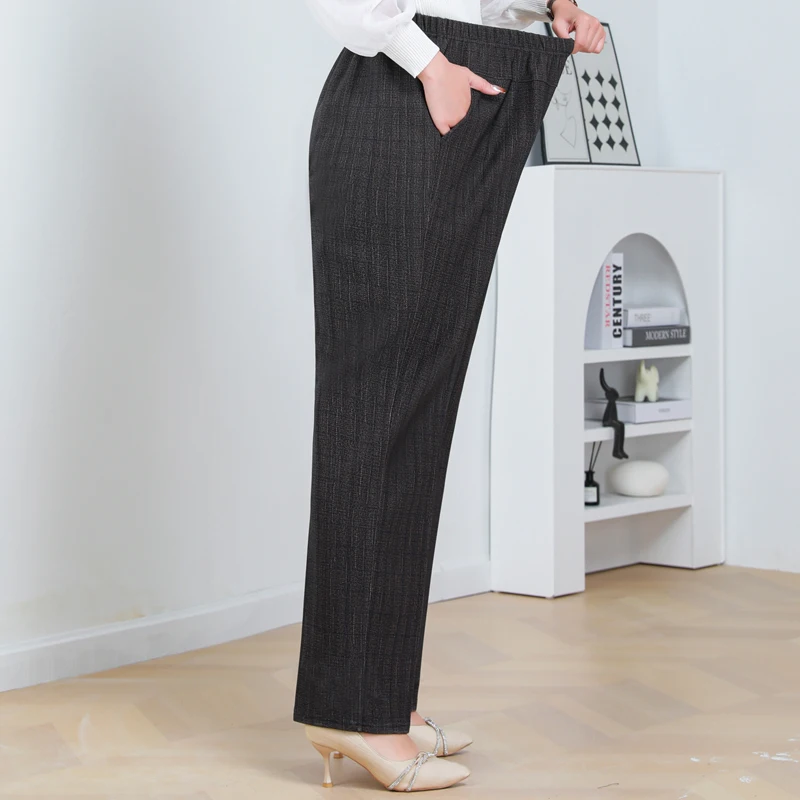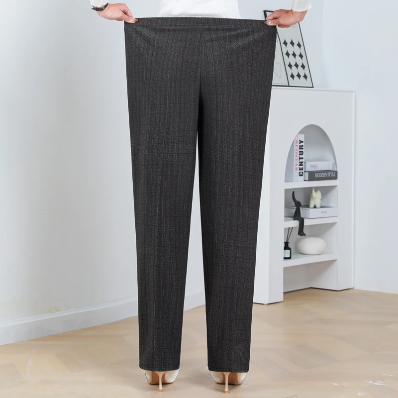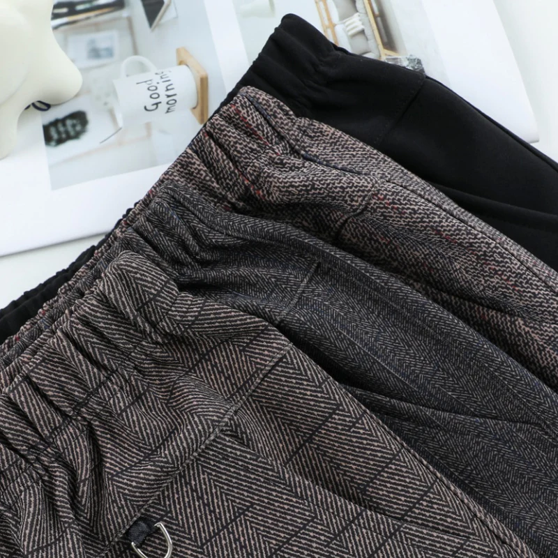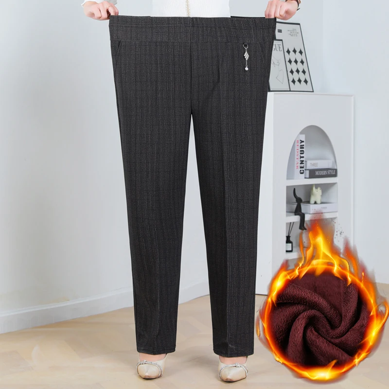 Pantaloni a gamba dritta a righe solide in vita elastica in pile di agnello autunno/inverno taglie forti Pantaloni dritti femminili larghi 8XL