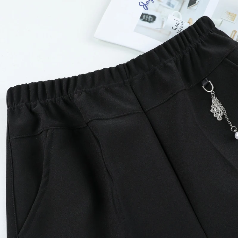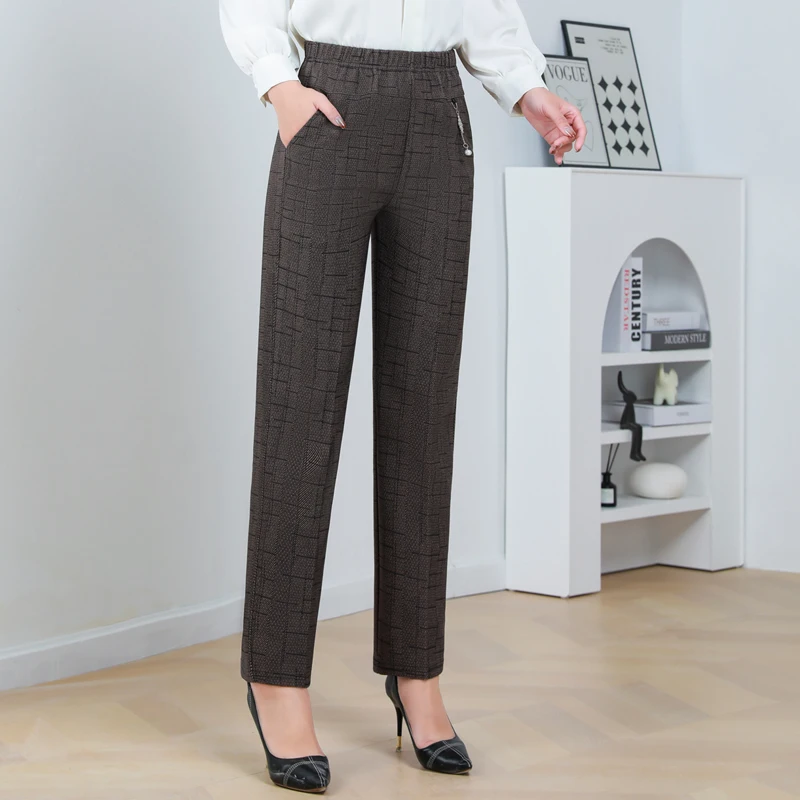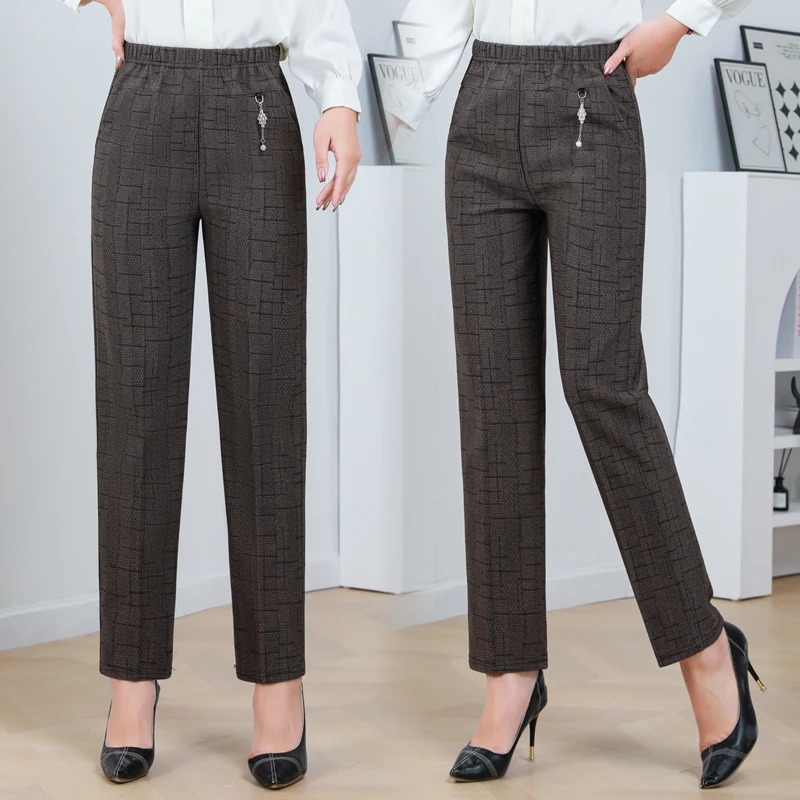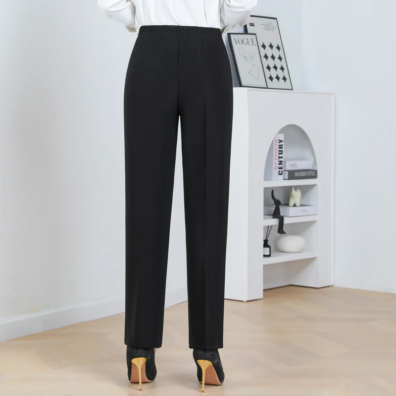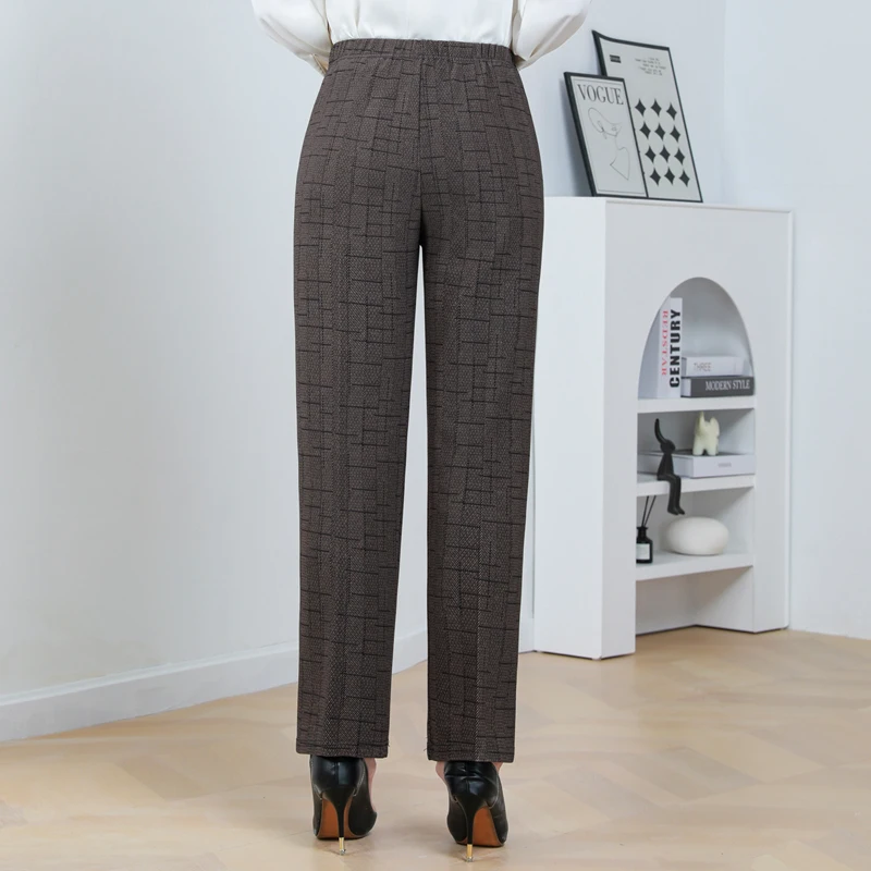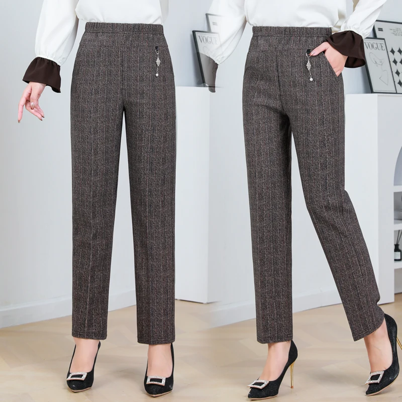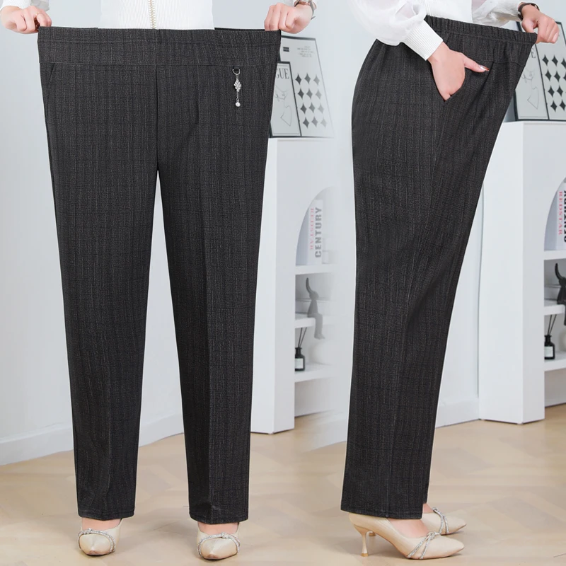 Pantaloni a gamba dritta a righe solide in vita elastica in pile di agnello autunno/inverno taglie forti Pantaloni dritti femminili larghi 8XL