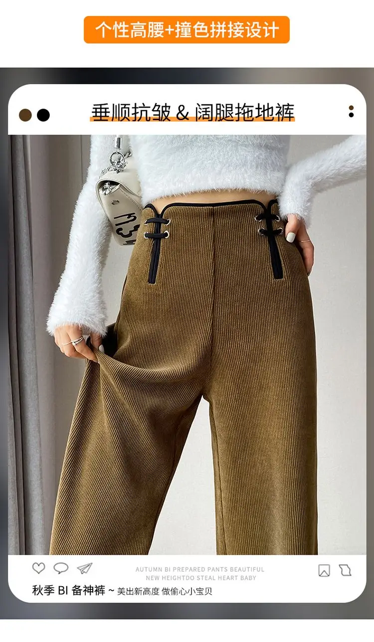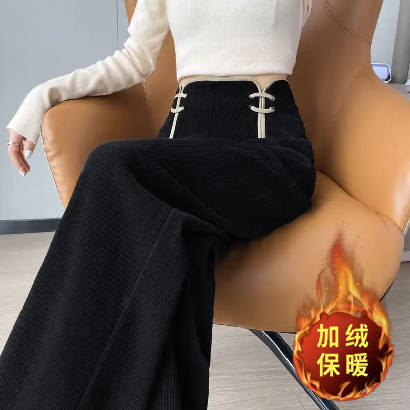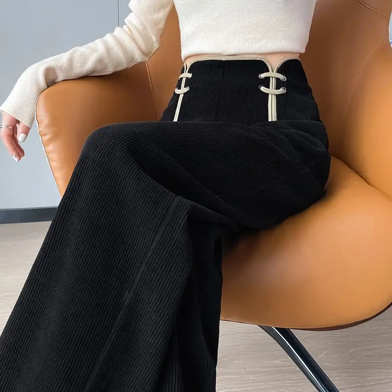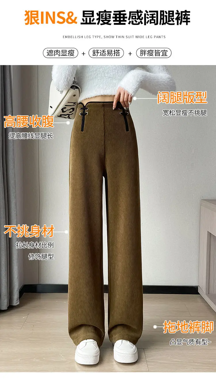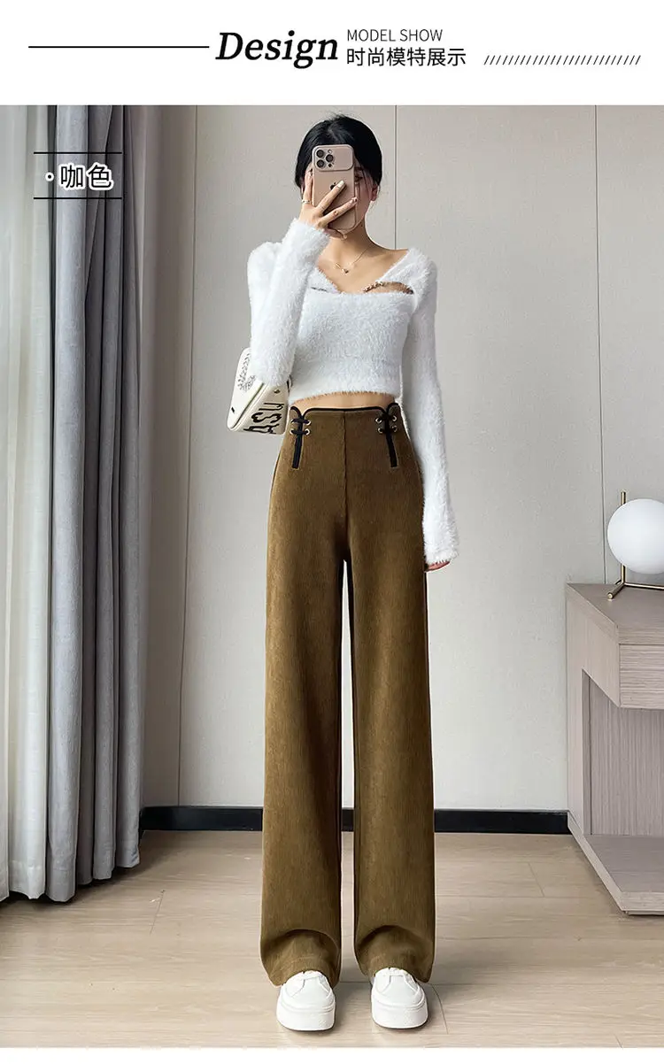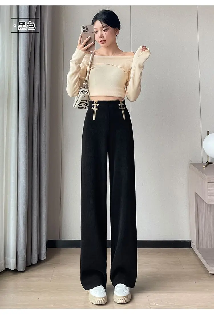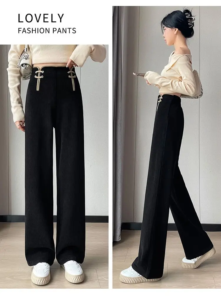 Pantaloni a gamba larga da donna Pantaloni autunno inverno Nuovo stile cinese pieghevole a vita alta cadente casual