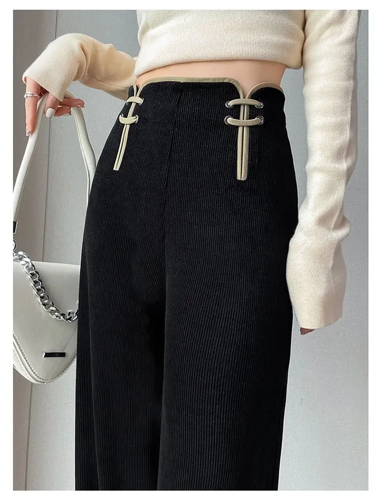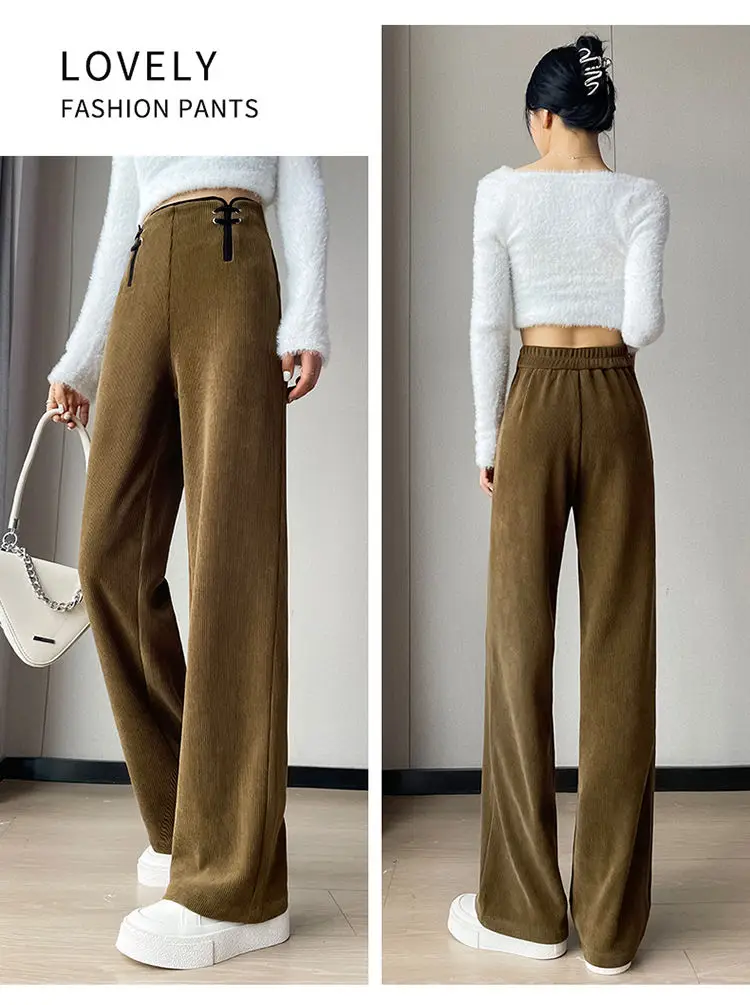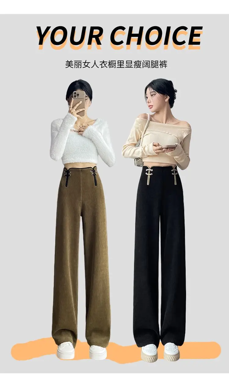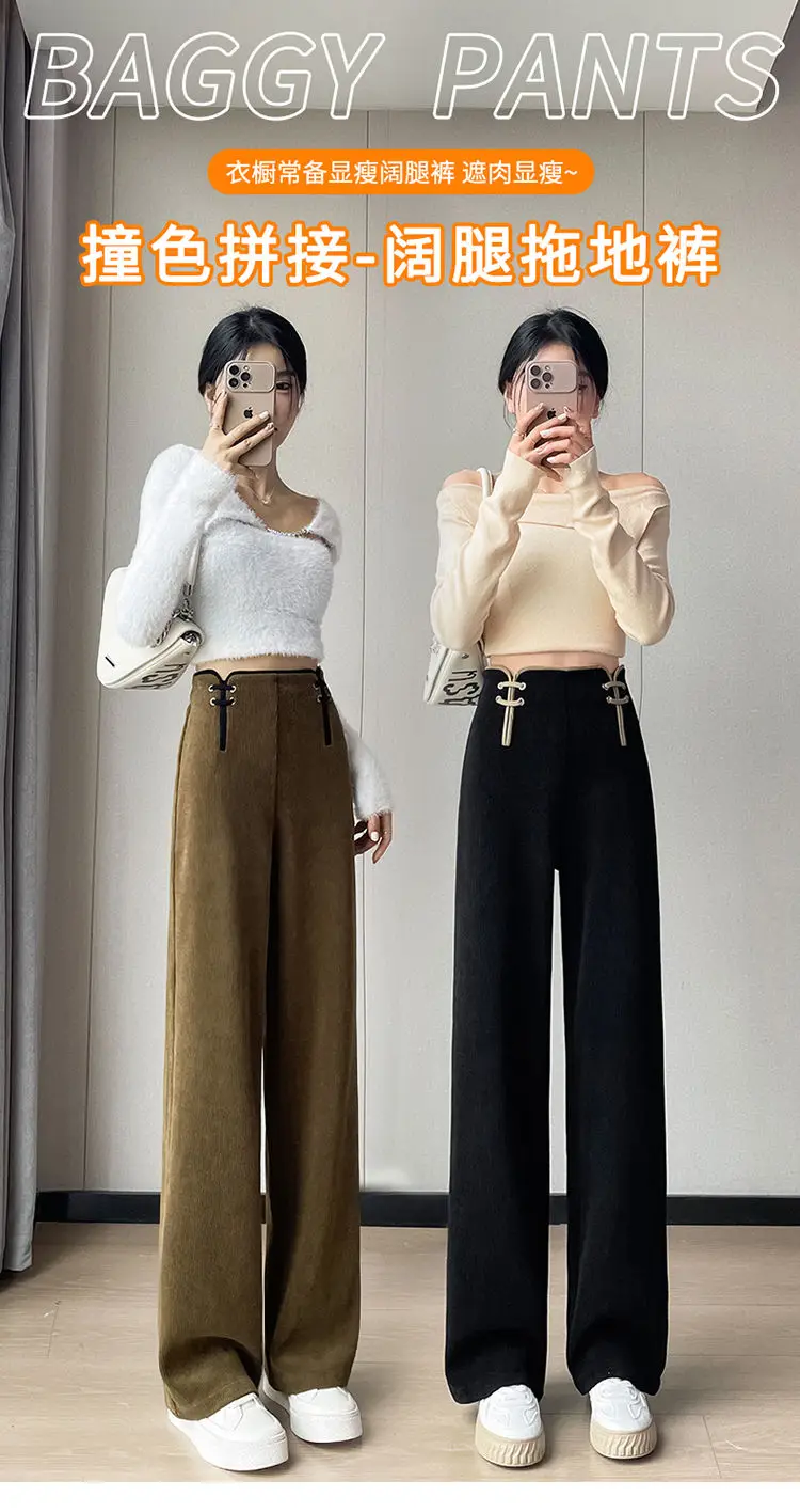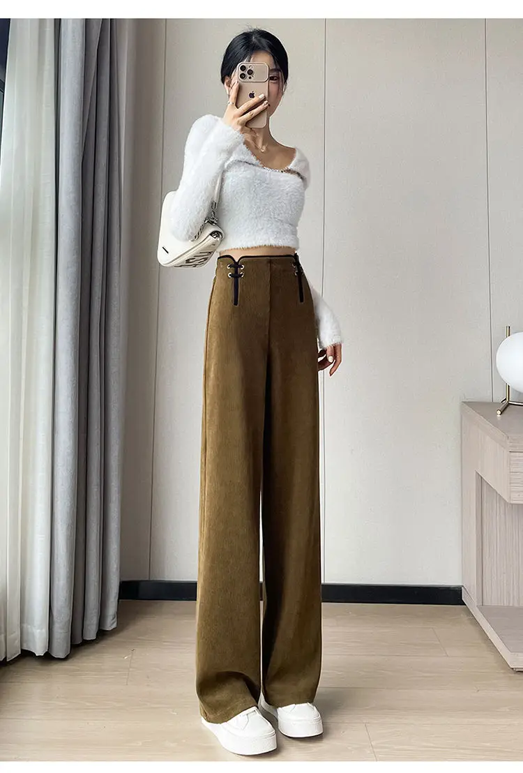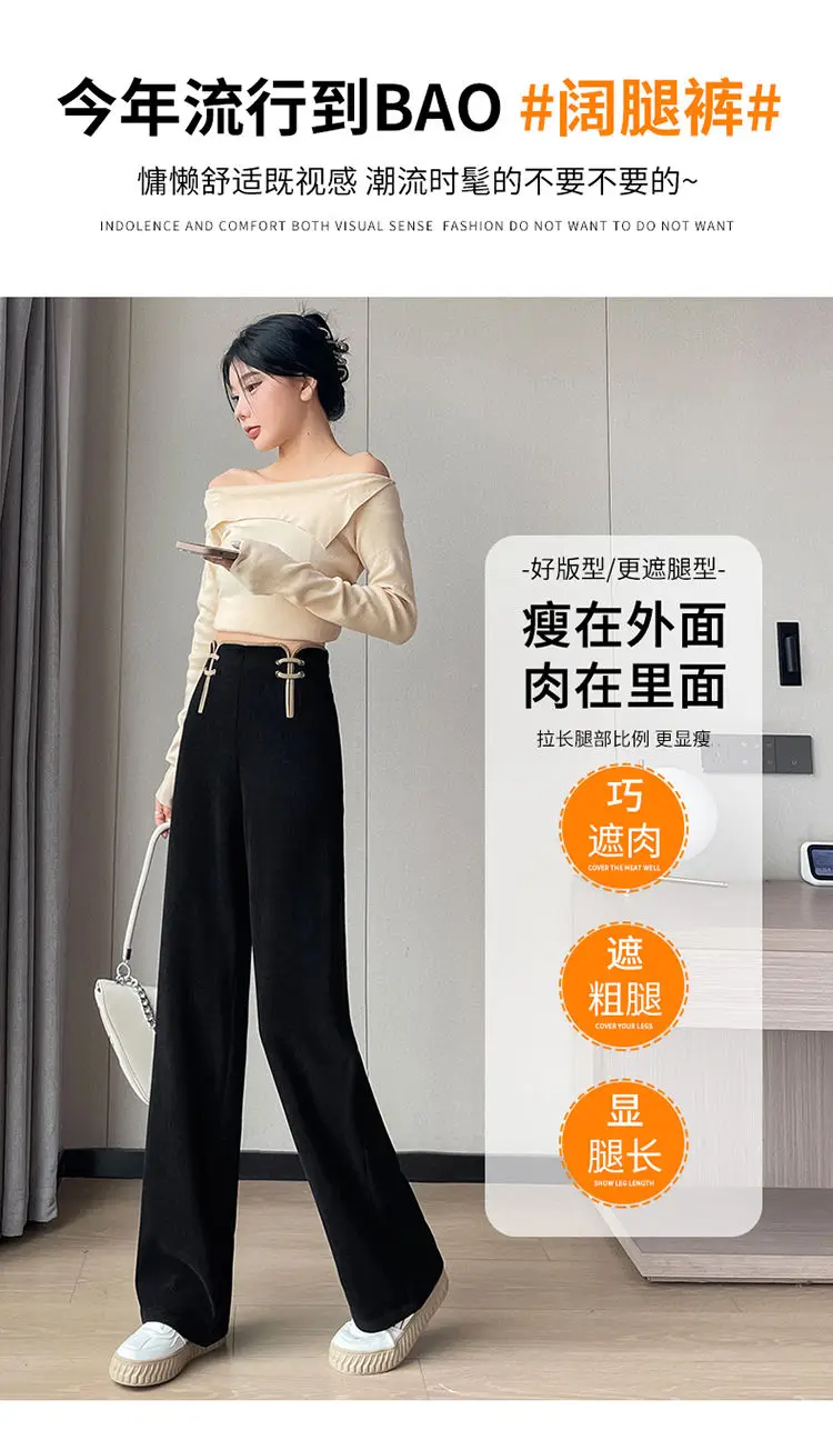 Pantaloni a gamba larga da donna Pantaloni autunno inverno Nuovo stile cinese pieghevole a vita alta cadente casual