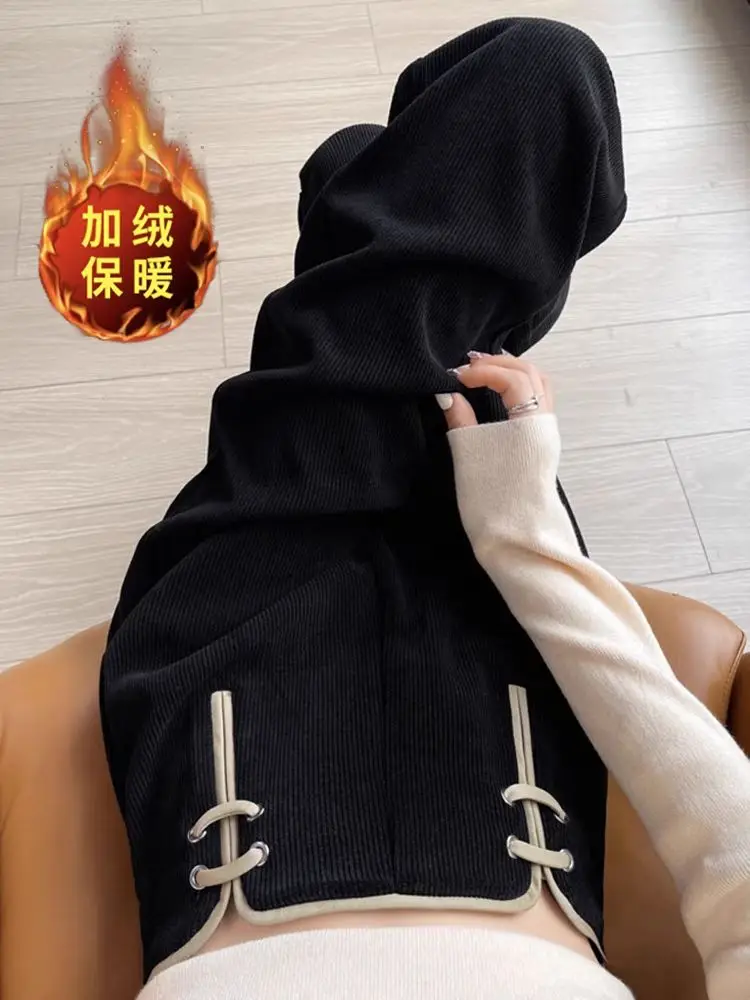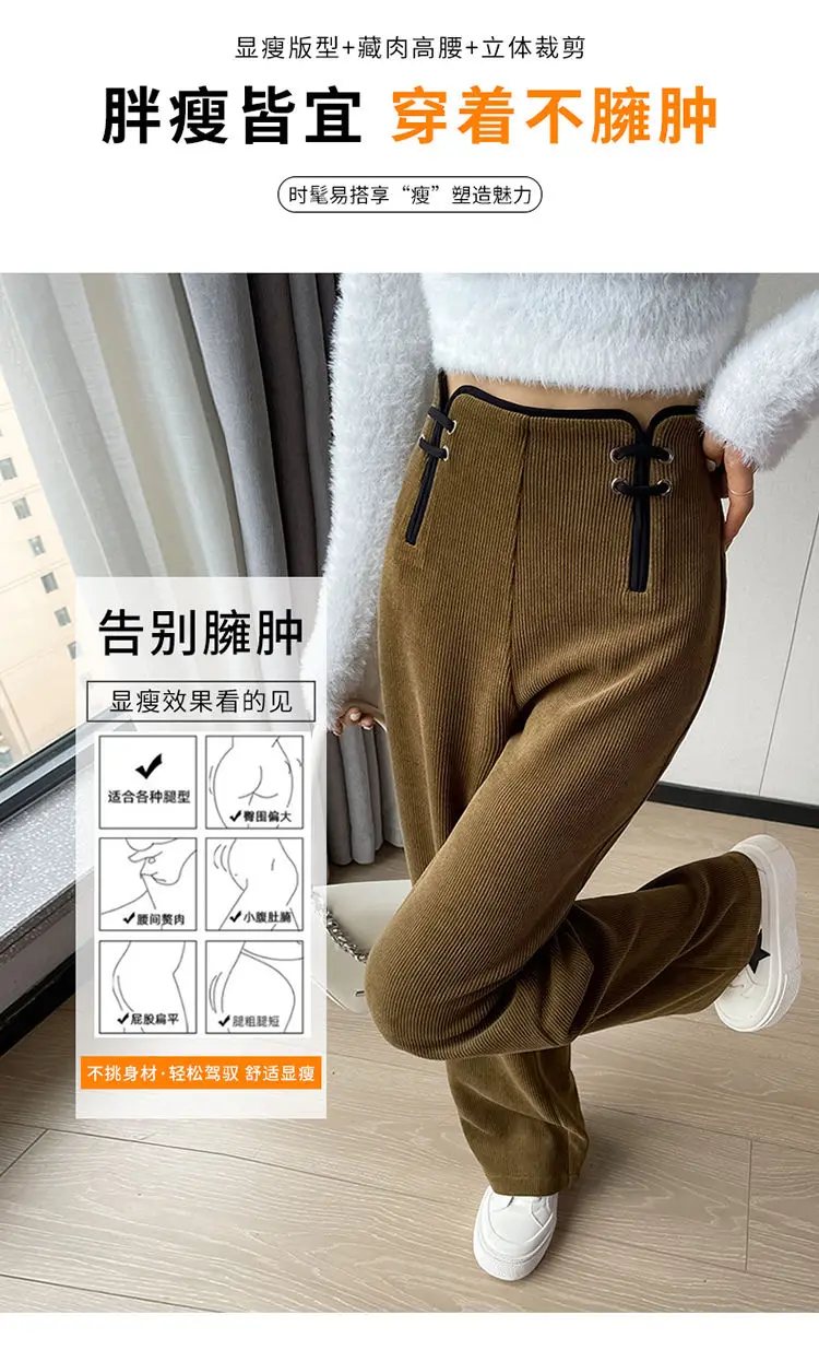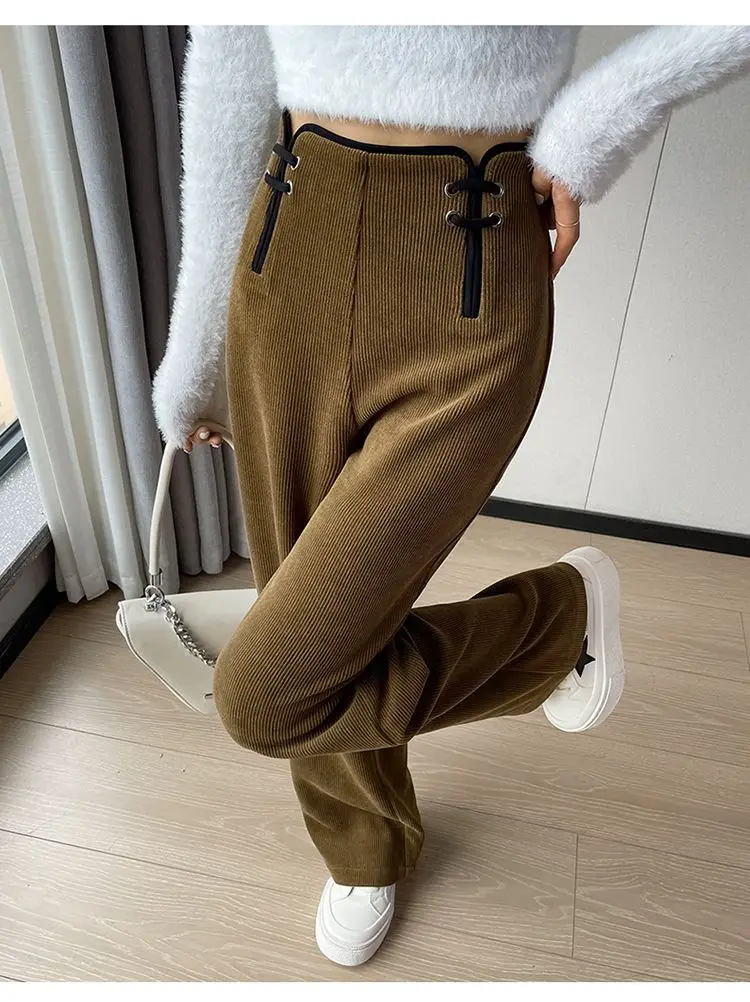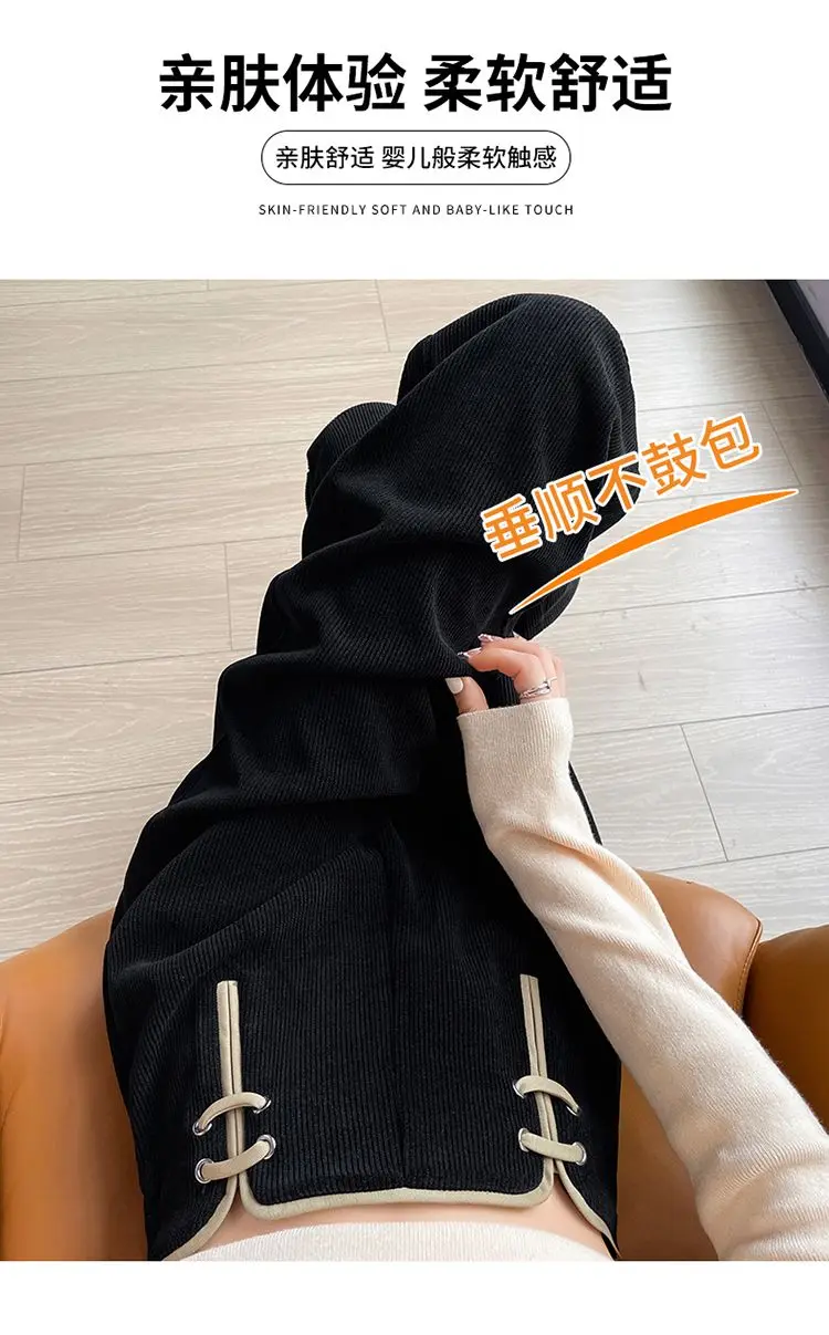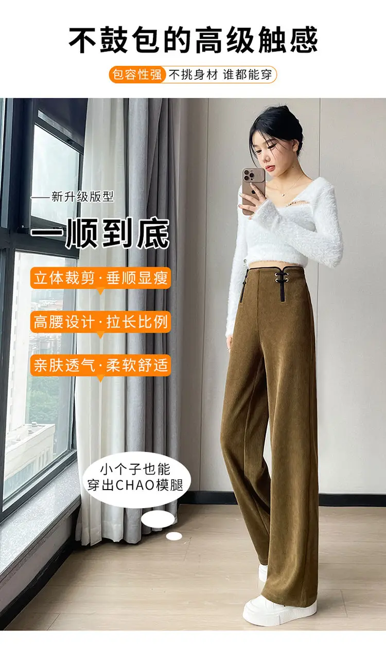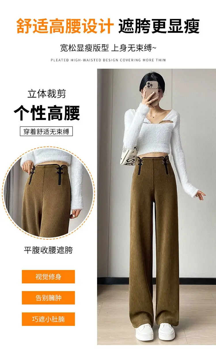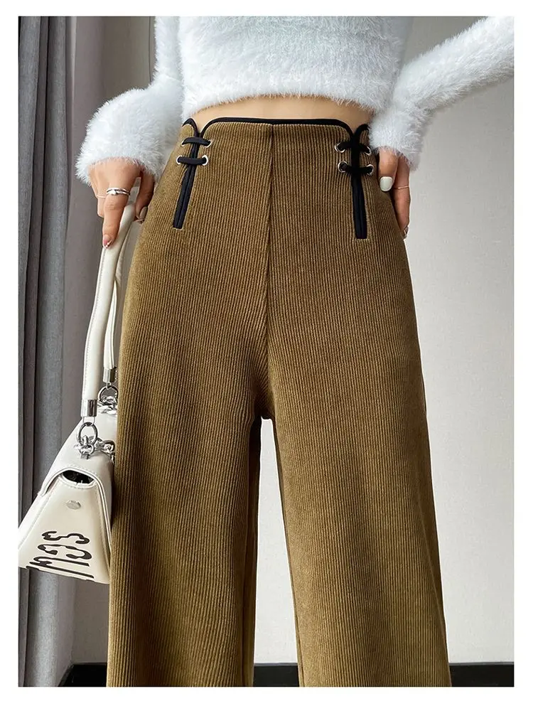 Pantaloni a gamba larga da donna Pantaloni autunno inverno Nuovo stile cinese pieghevole a vita alta cadente casual