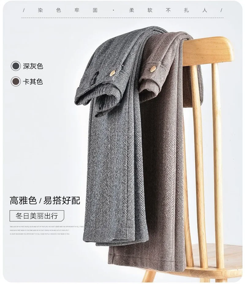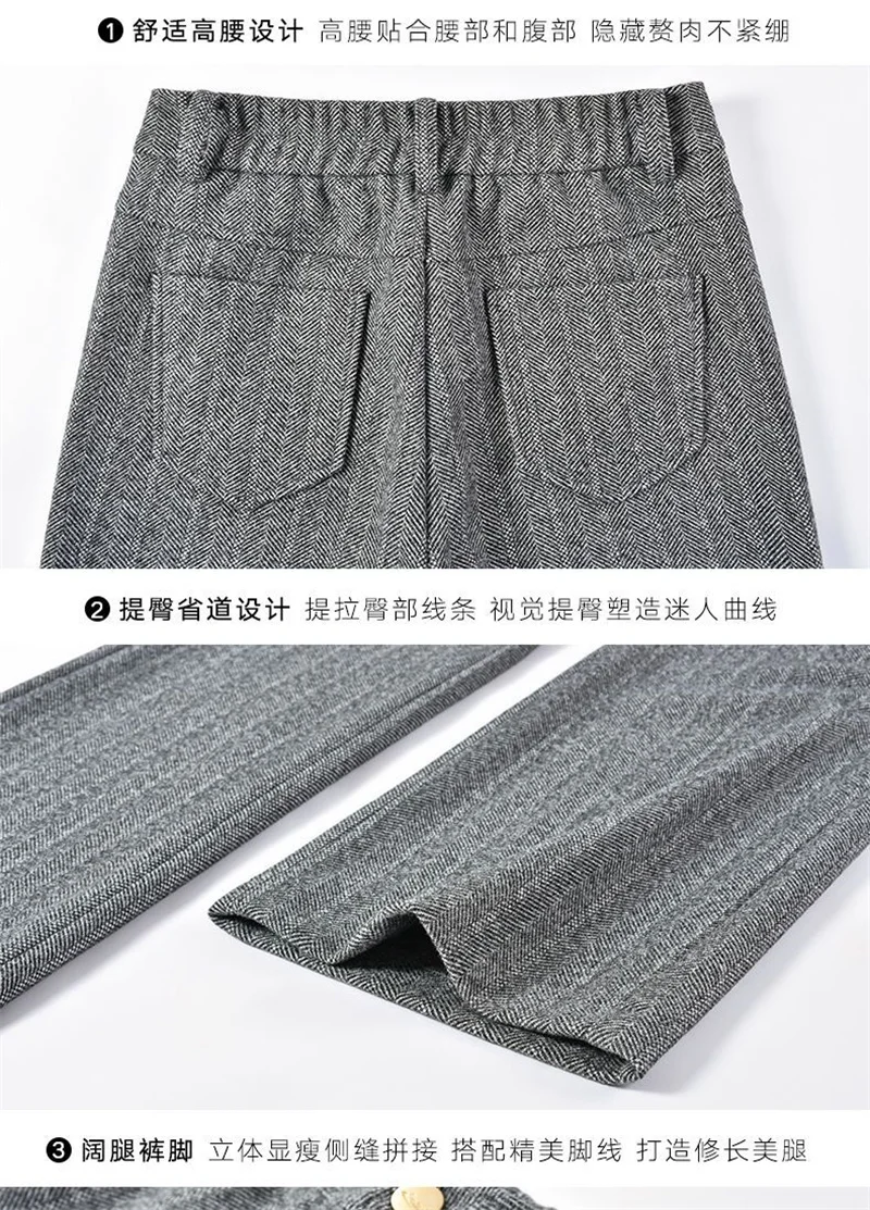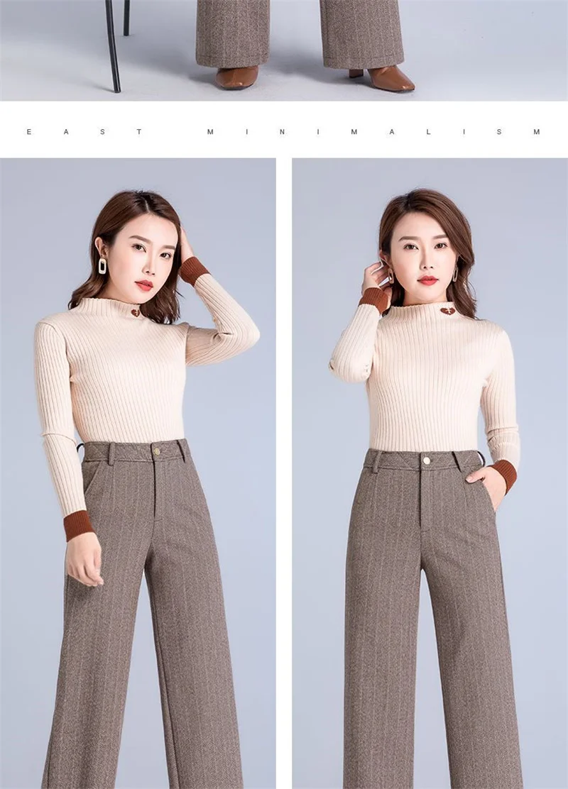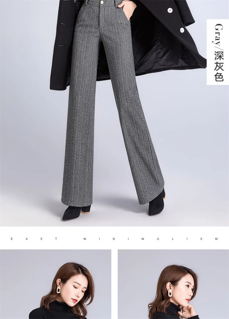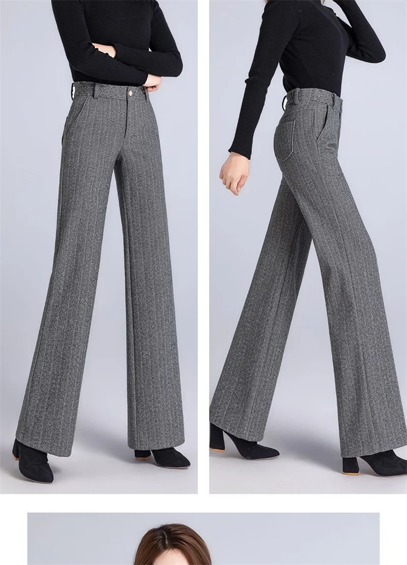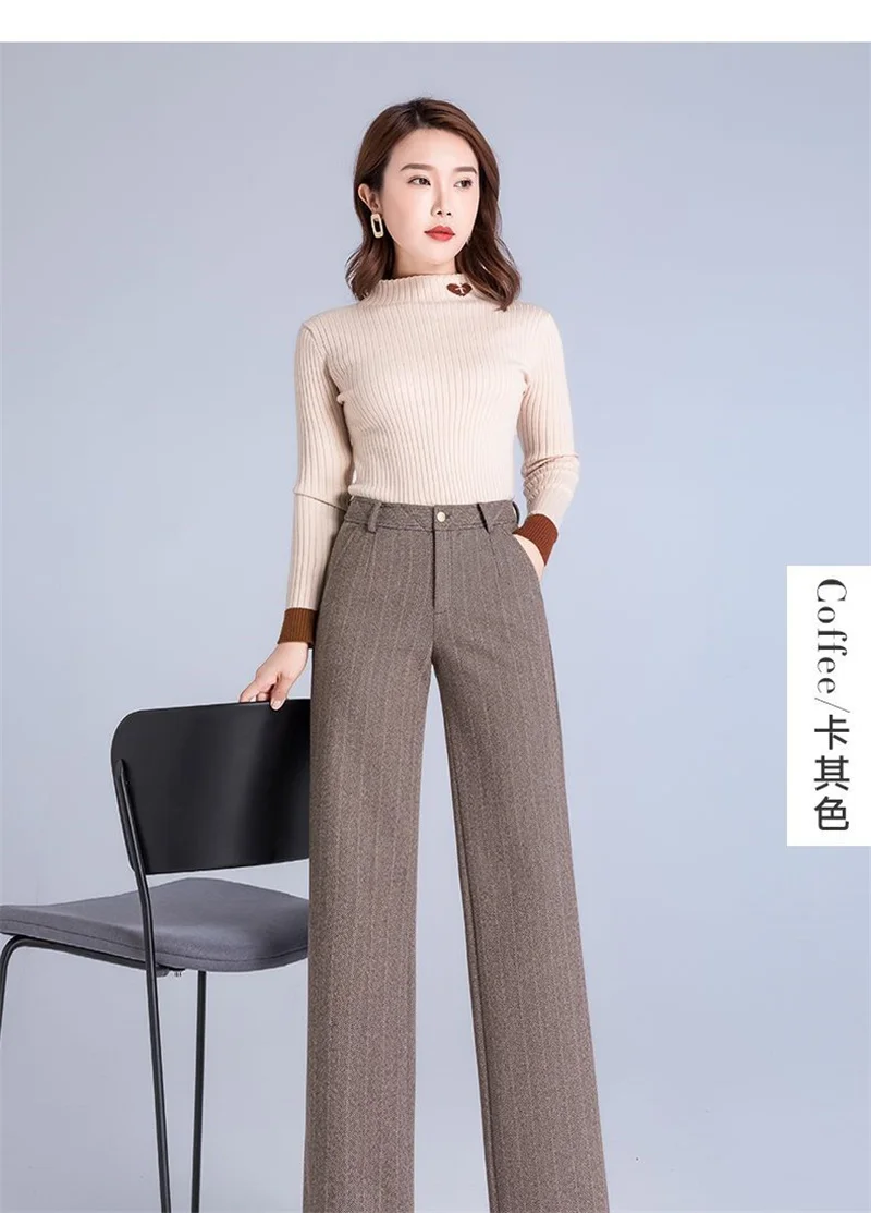 Pantaloni a gamba larga in lana da donna Autunno Inverno Addensare Pantaloni dritti casual a vita alta Pantaloni di lana eleganti da donna da ufficio di fascia alta