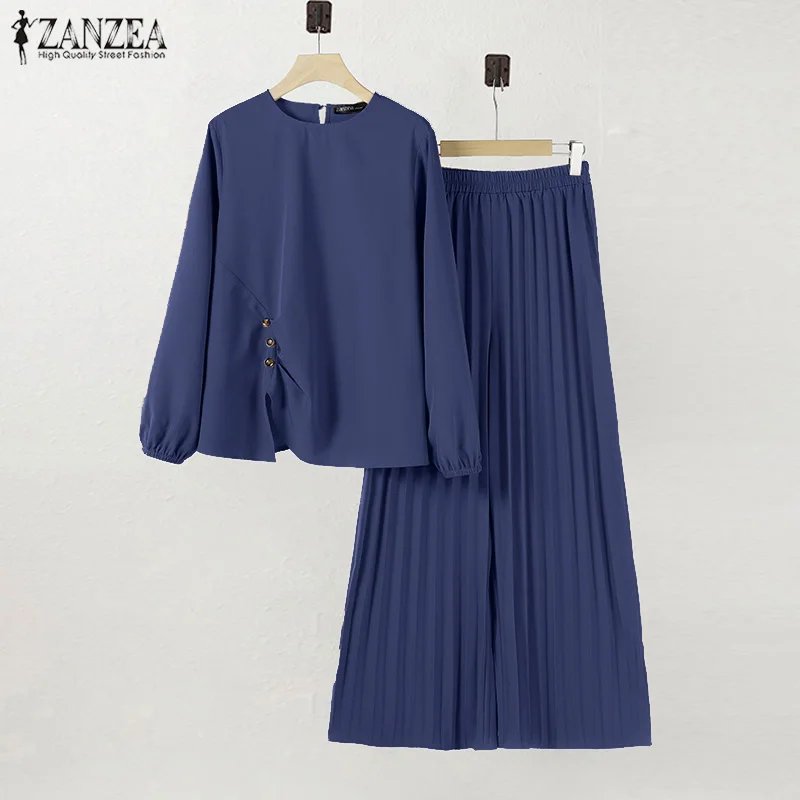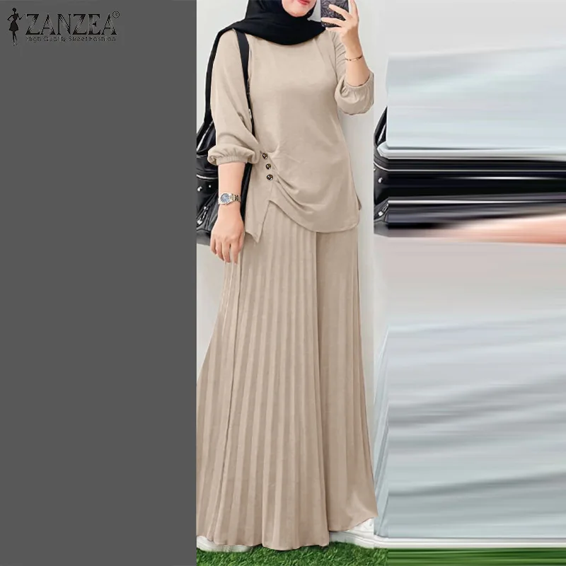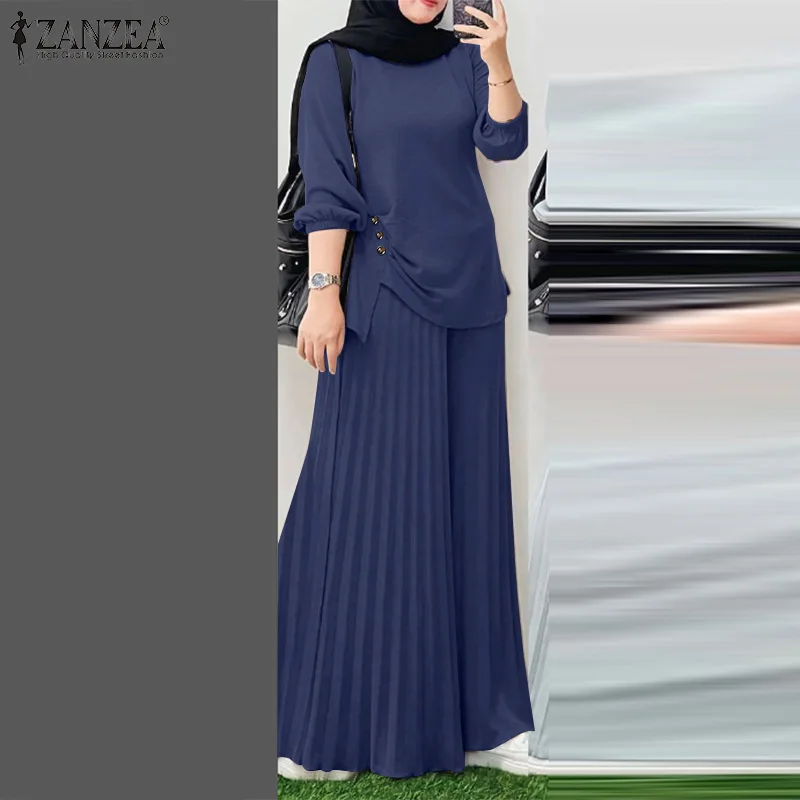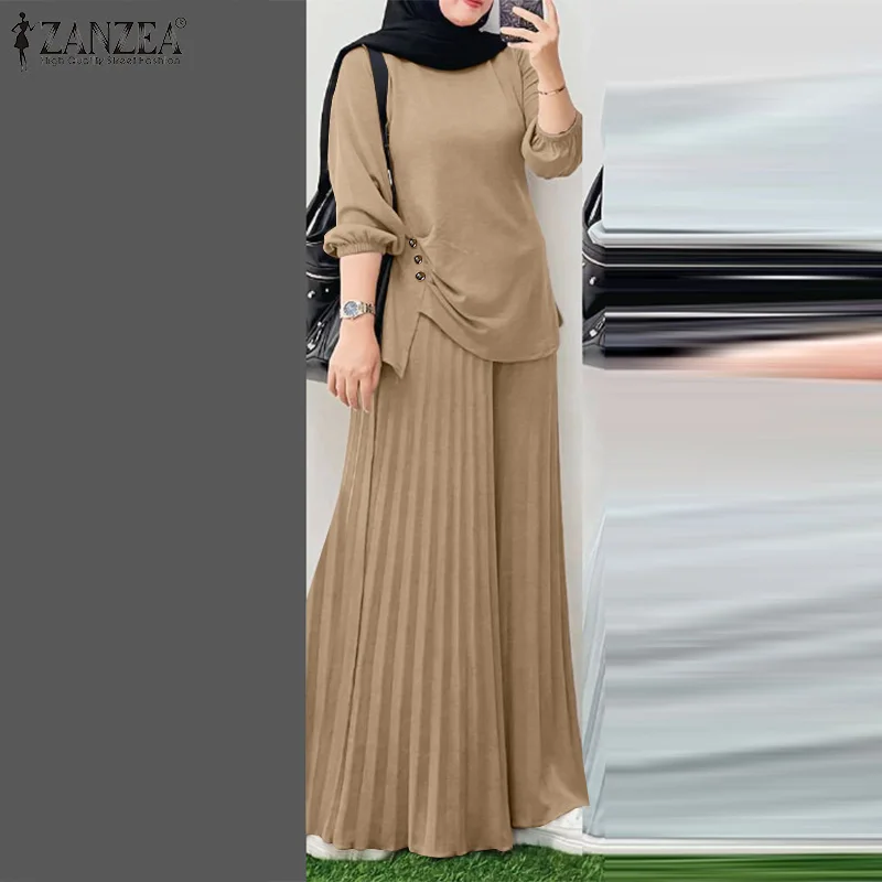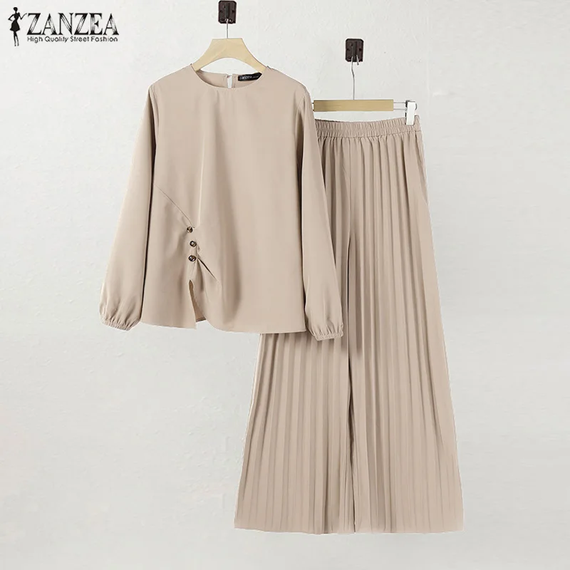 Pantaloni autunnali Abito 2025 ZANZEA Donna Musulmana Set coordinati Casual Top a maniche lunghe Pantaloni 2 pezzi Abiti Tuta ampia Oversize 1Pantaloni autunnali Abito 2025 ZANZEA Donna Musulmana Set coordinati Casual Top a maniche lunghe Pantaloni 2 pezzi Abiti Tuta ampia Oversize