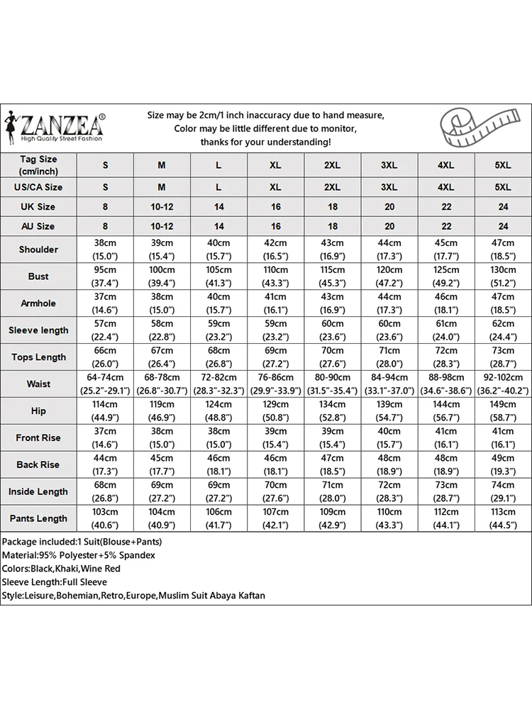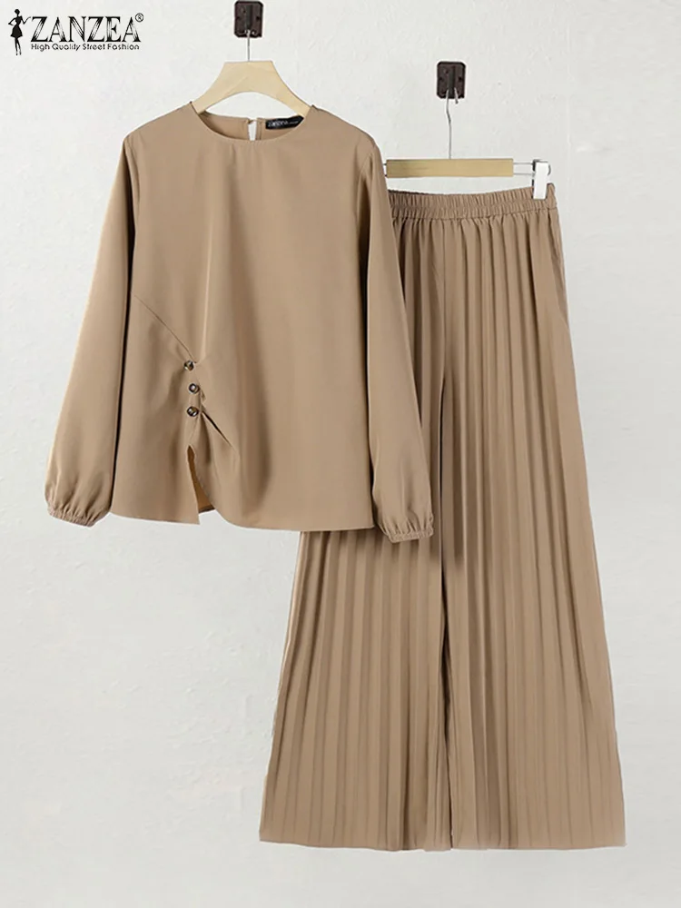 Pantaloni autunnali Abito 2025 ZANZEA Donna Musulmana Set coordinati Casual Top a maniche lunghe Pantaloni 2 pezzi Abiti Tuta ampia Oversize 1Pantaloni autunnali Abito 2025 ZANZEA Donna Musulmana Set coordinati Casual Top a maniche lunghe Pantaloni 2 pezzi Abiti Tuta ampia Oversize