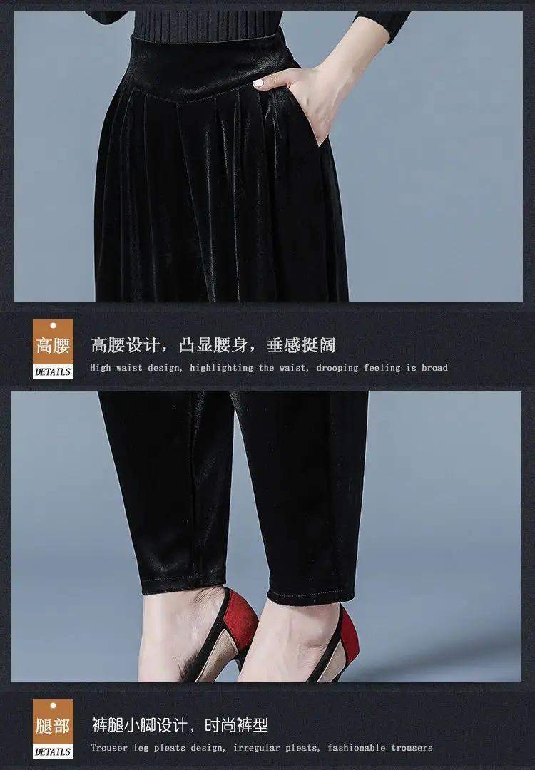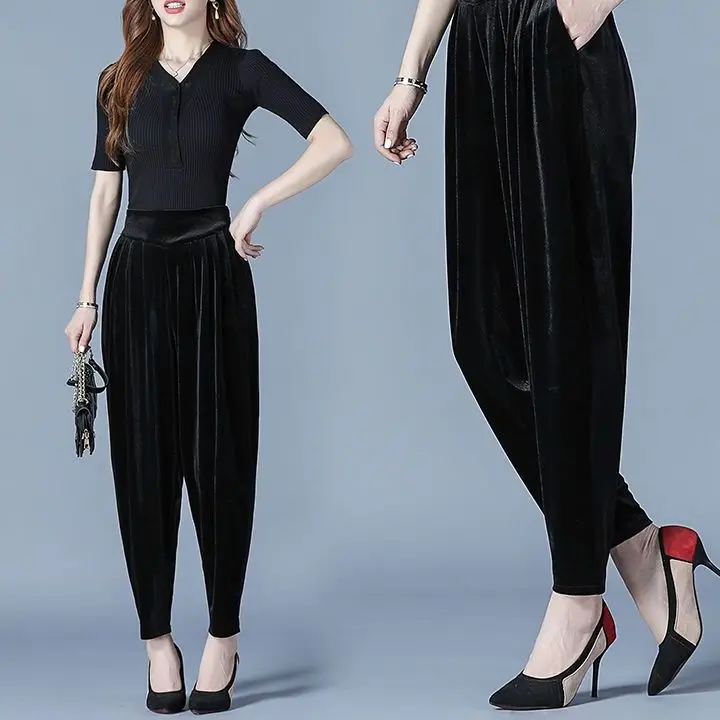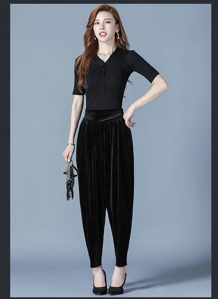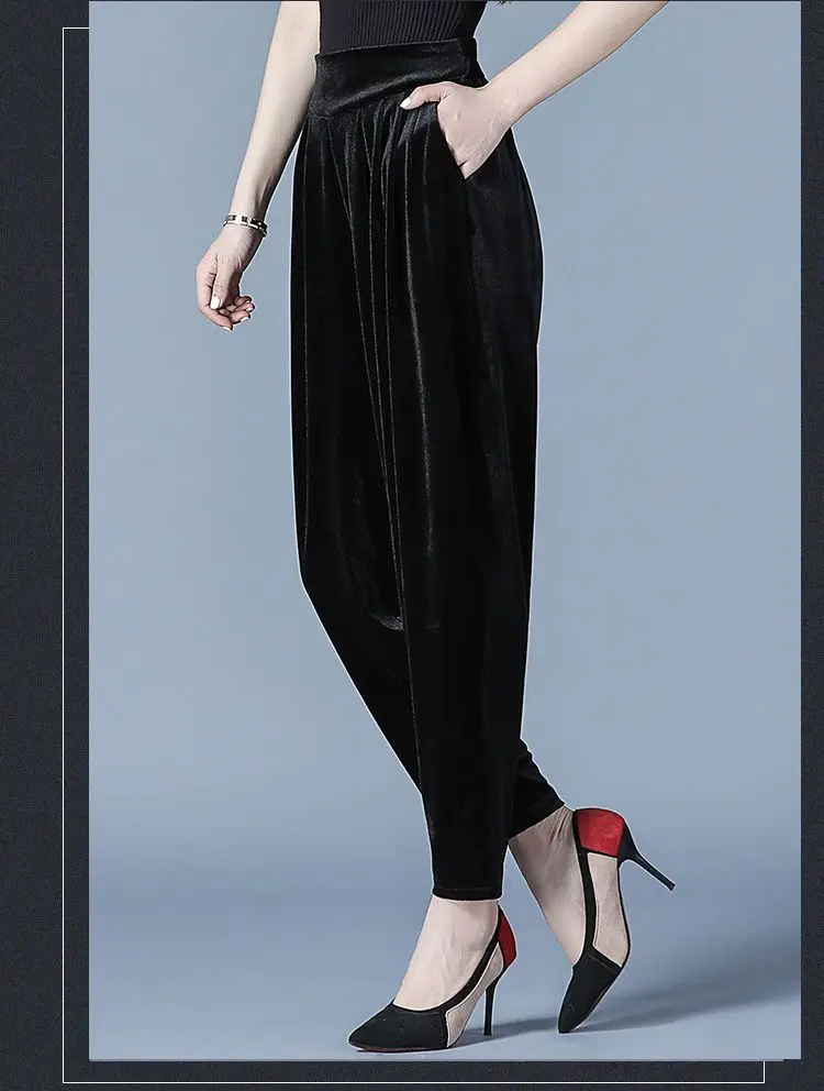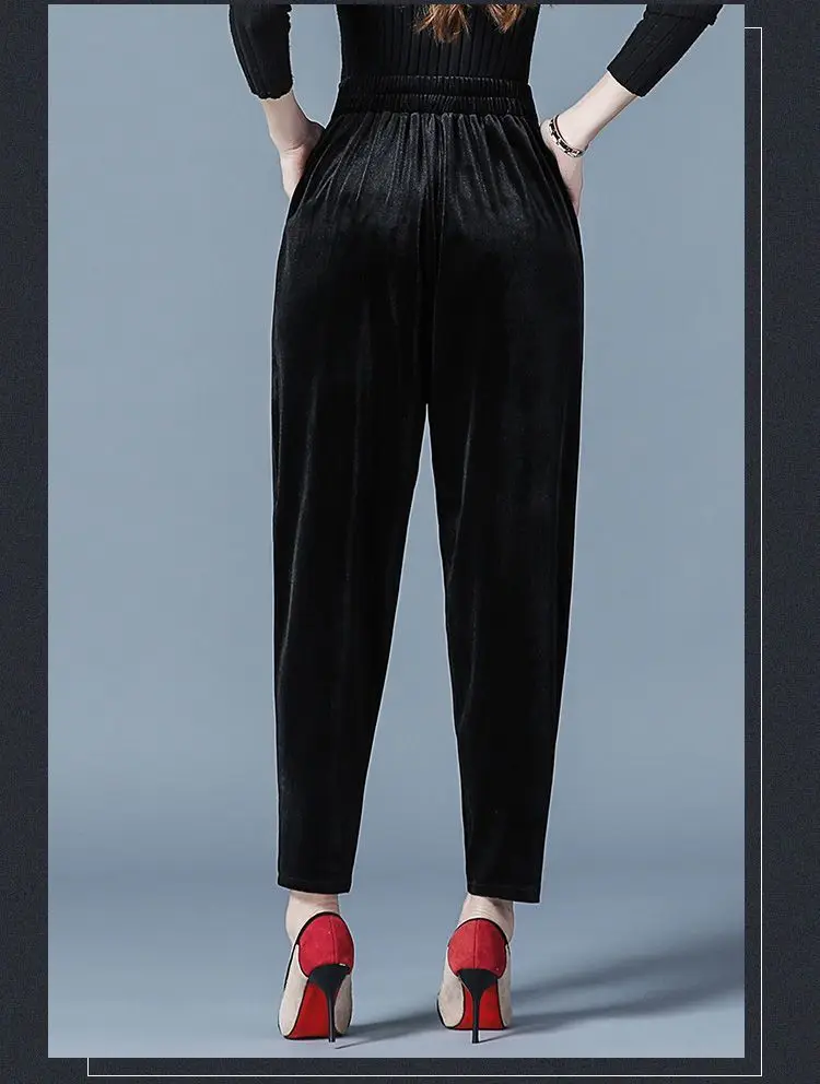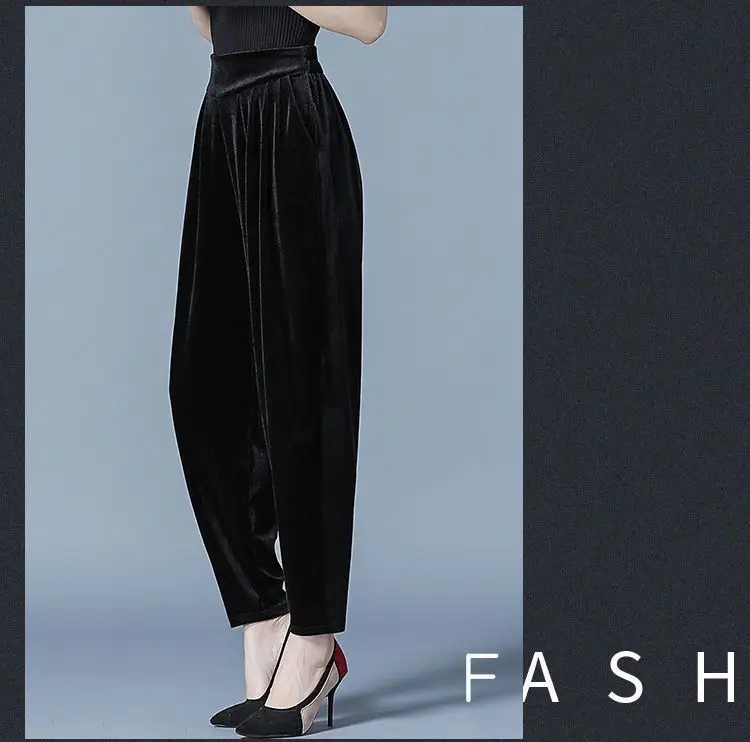 Pantaloni casual a vita alta slim Harren autunno e inverno da donna in velluto dorato