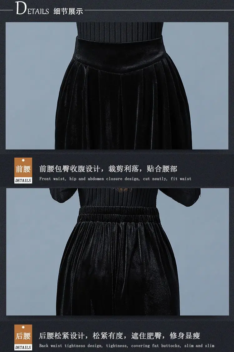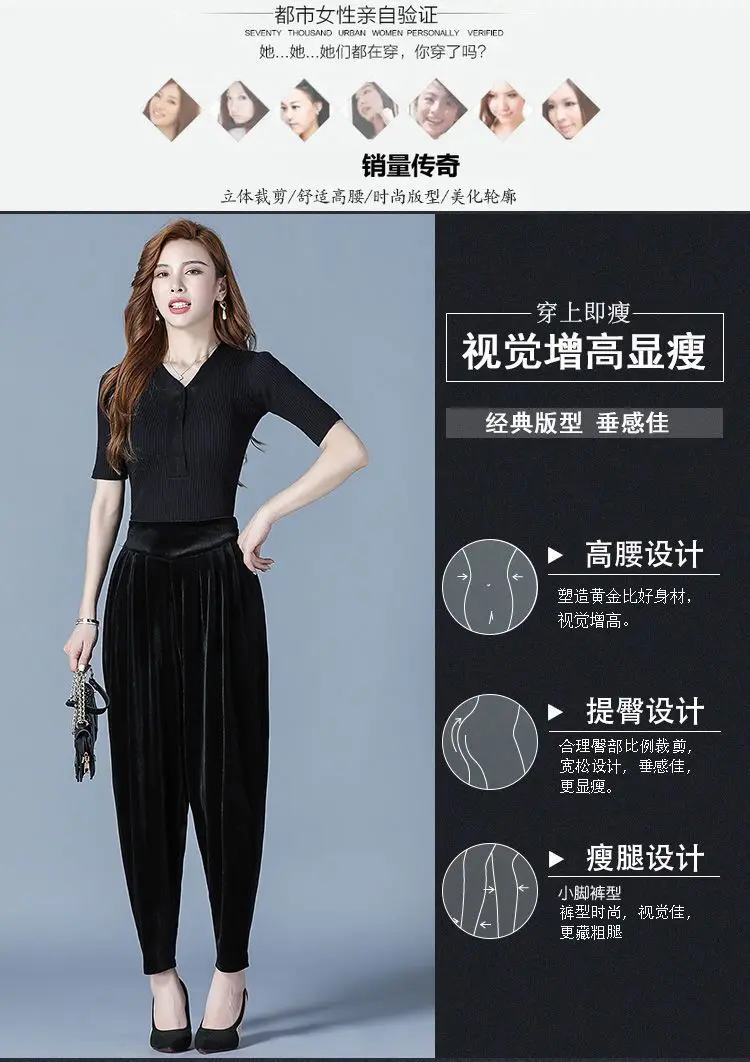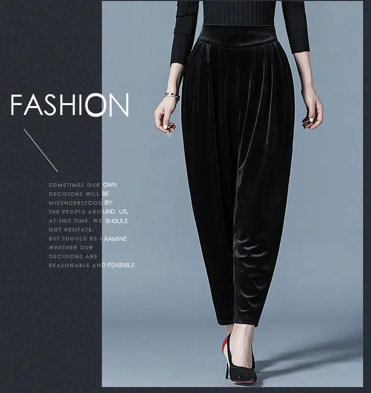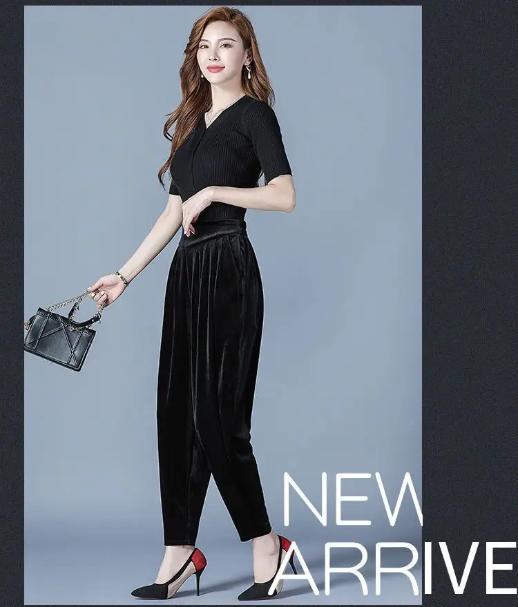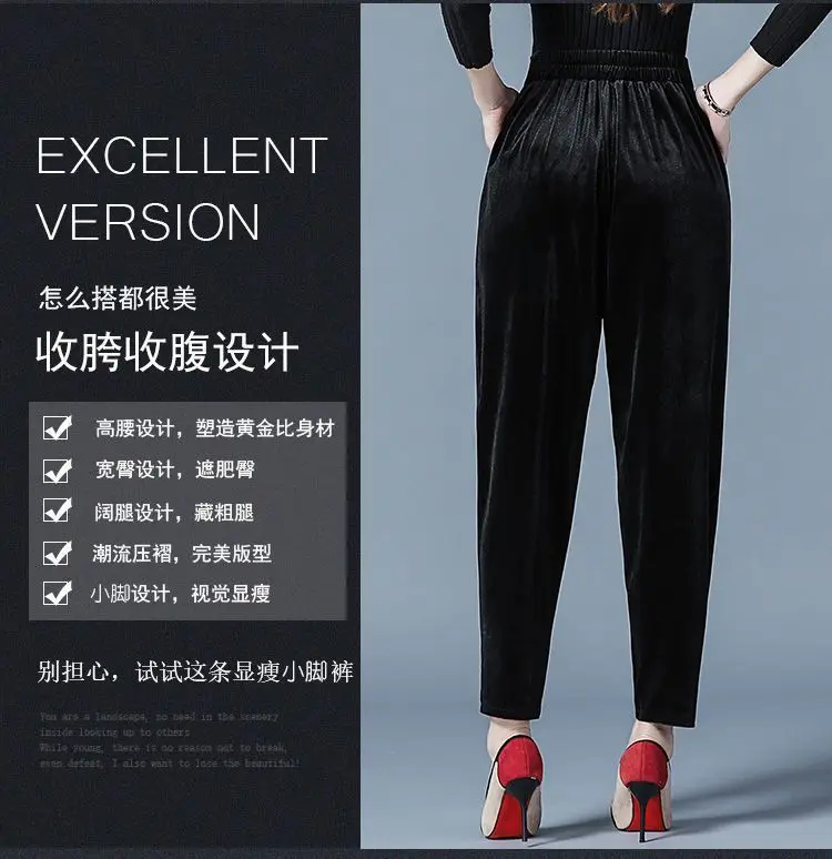 Pantaloni casual a vita alta slim Harren autunno e inverno da donna in velluto dorato