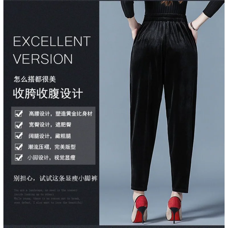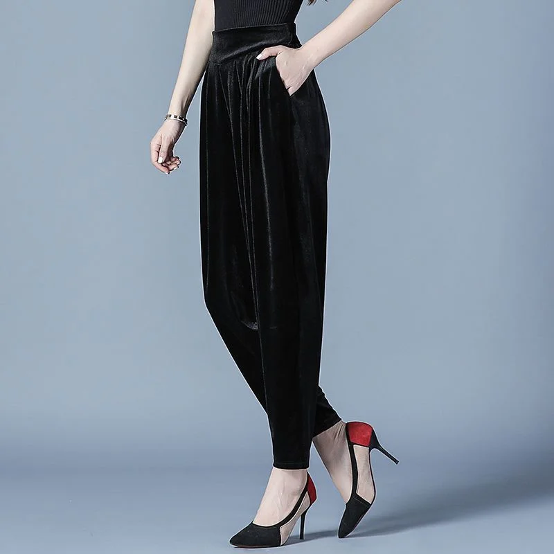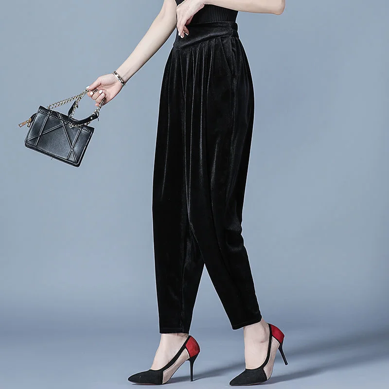 Pantaloni casual a vita alta slim Harren autunno e inverno da donna in velluto dorato