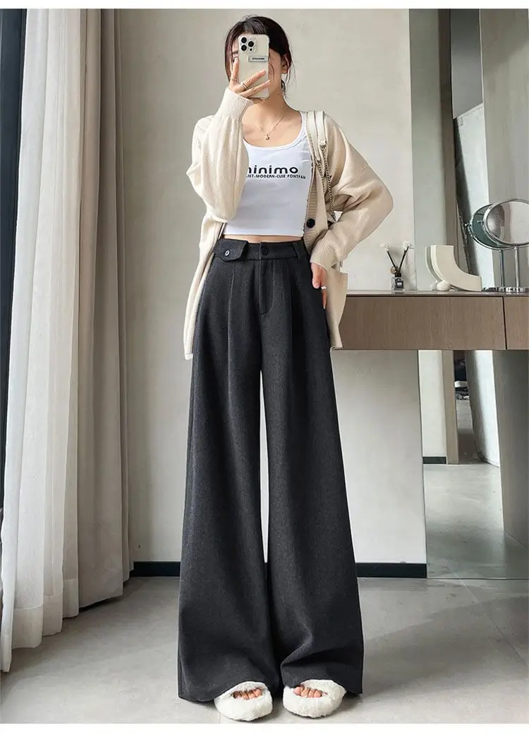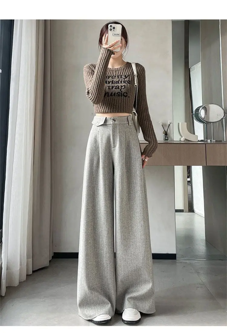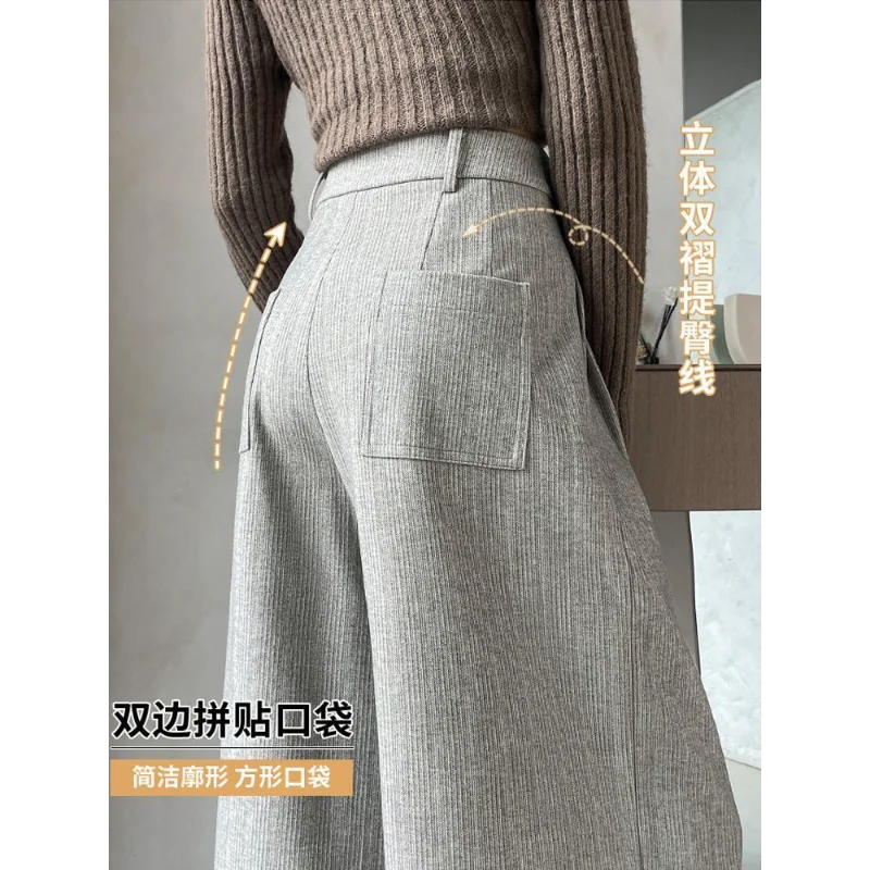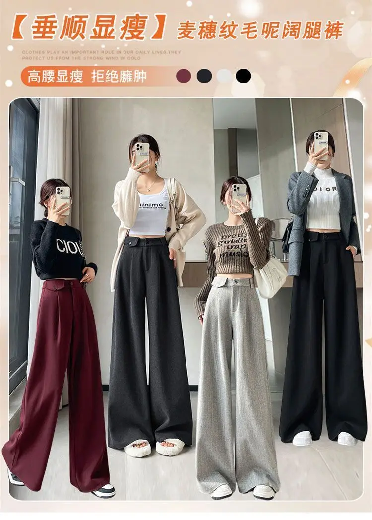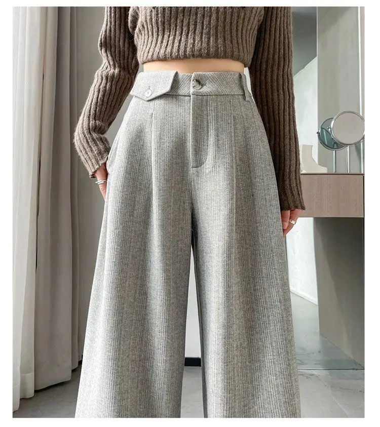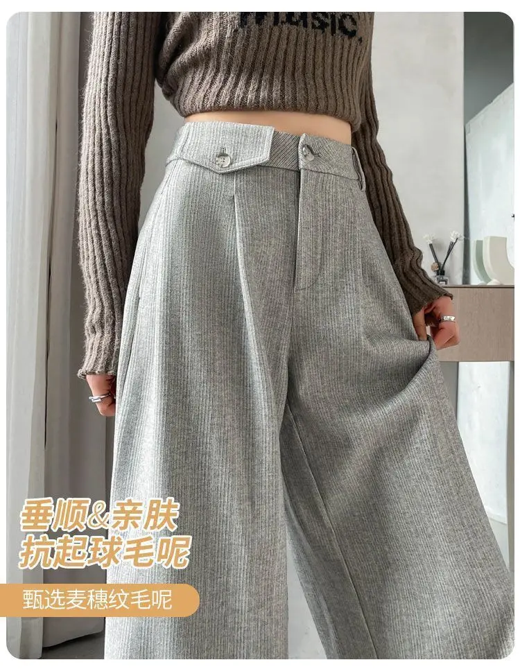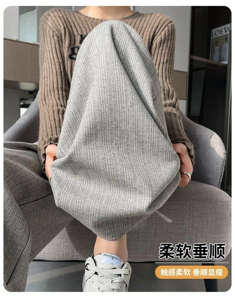 Pantaloni casual caldi autunno inverno da donna in lana con motivo a grano in pile spesso Pantaloni versatili in lana dimagrante