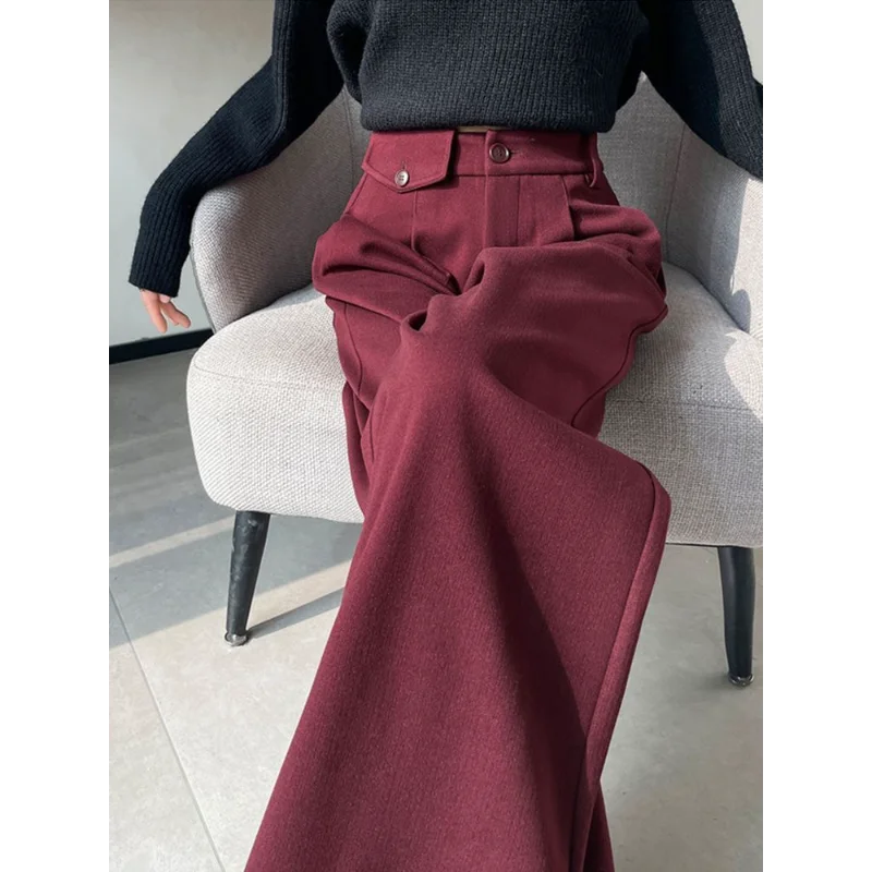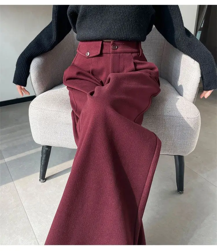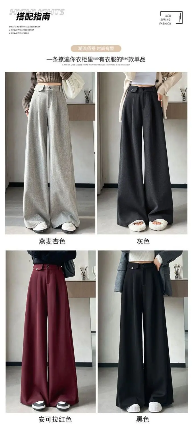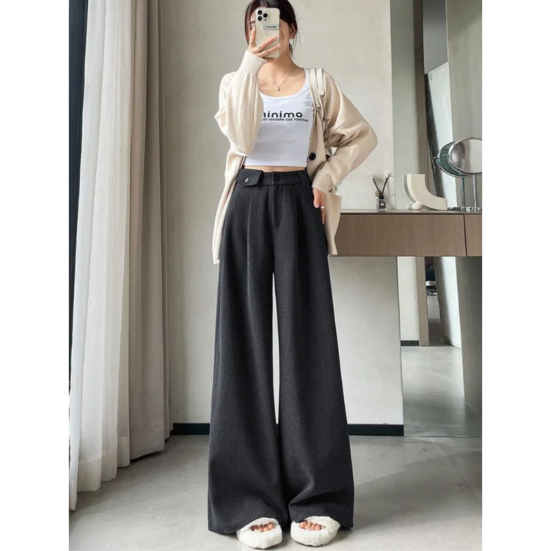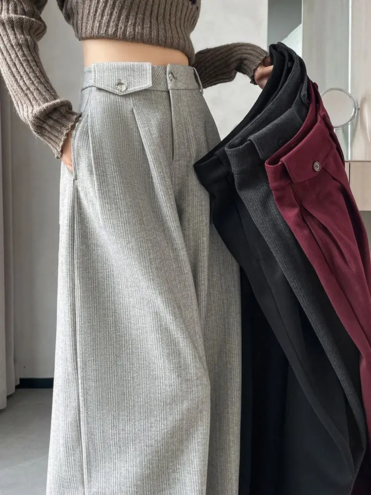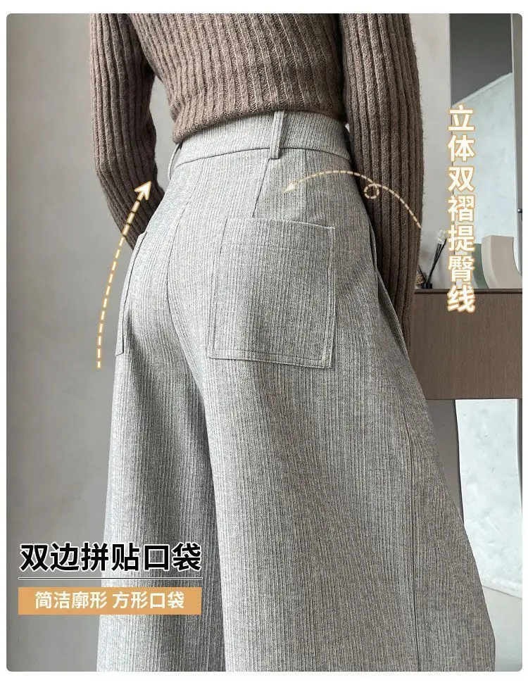 Pantaloni casual caldi autunno inverno da donna in lana con motivo a grano in pile spesso Pantaloni versatili in lana dimagrante