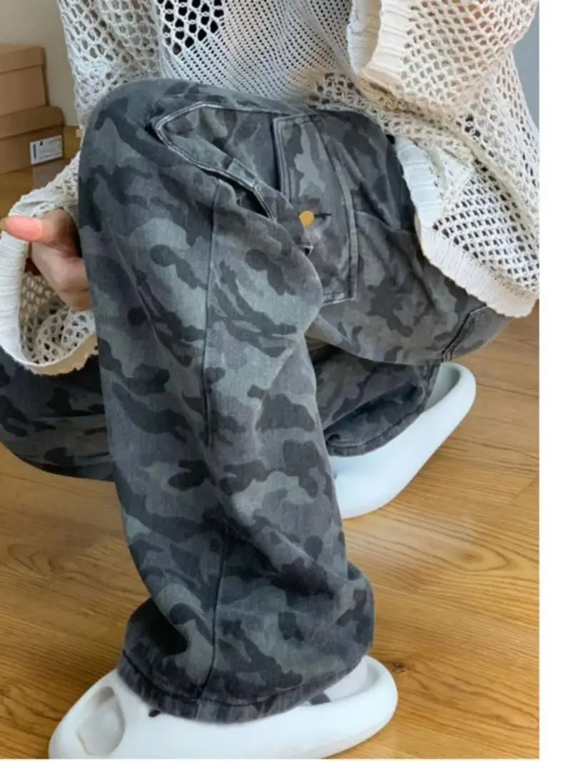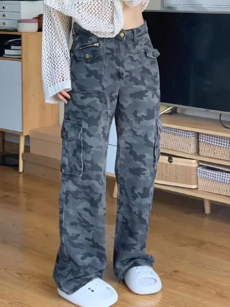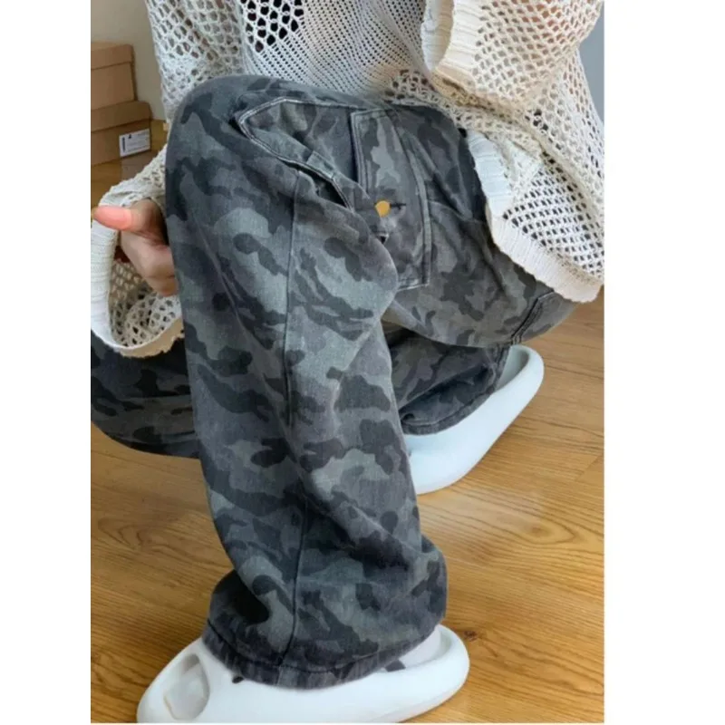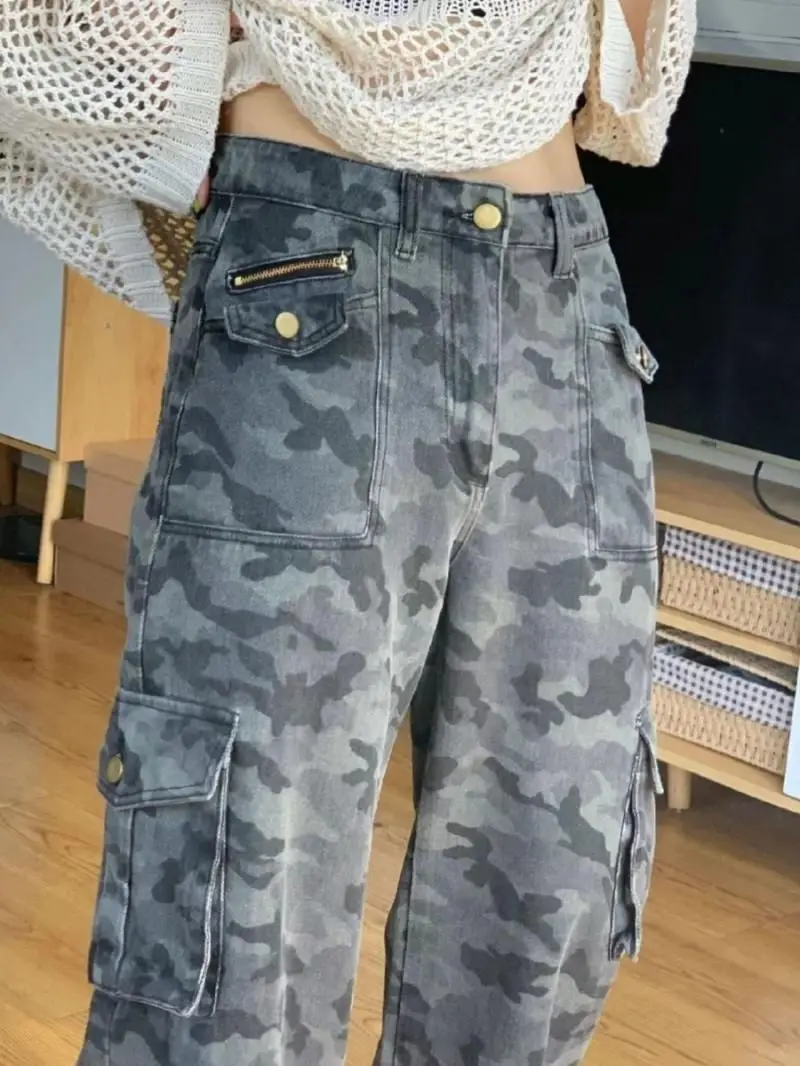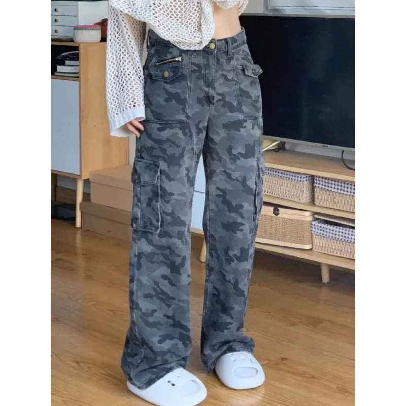Pantaloni casual in denim da donna dalla vestibilità rilassata Pantaloni a gamba larga a vita alta Tuta mimetica americana Pantaloni da donna autunno invernoPensa ad un Regalo Unico e Utile per le Persone a te Vicine!! Regala un buono a partire da € 10,00 a € 300,00