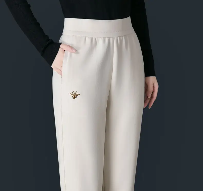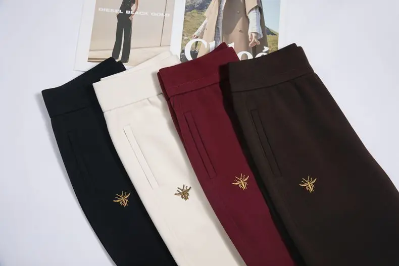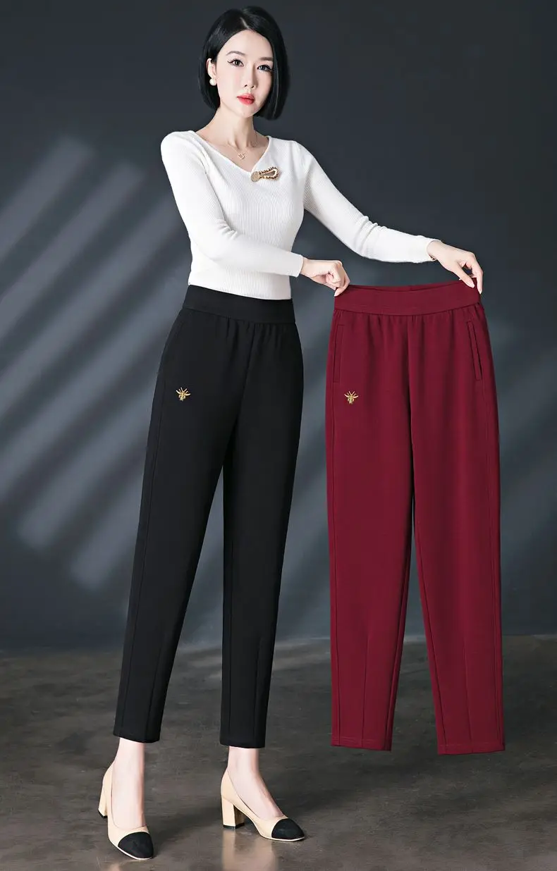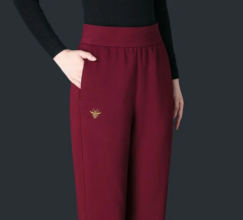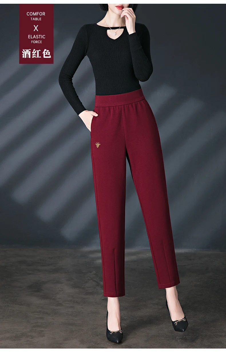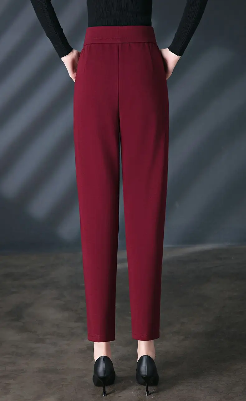 Pantaloni casual rosso vino di alta qualità per le donne allentati 2025 primavera autunno inverno vita alta elastici nuovi pantaloni Harun Bloomers per