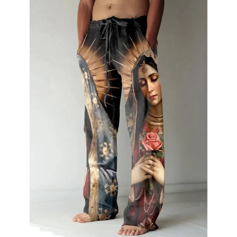 Pantaloni casual stampati vintage rinascimentali della Vergine Maria da uomo Pantaloni larghi artistici Pantaloni estivi freschi Streetwear Uomo Donna Abbigliamento