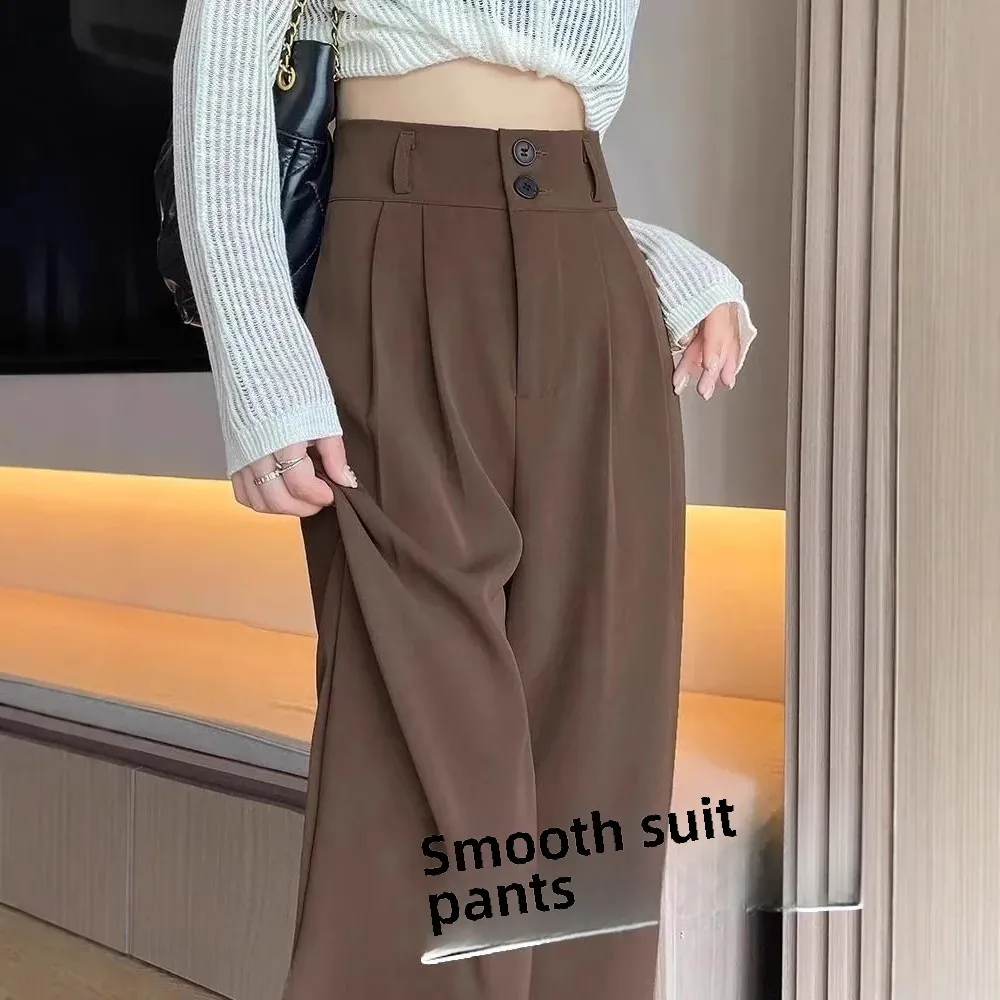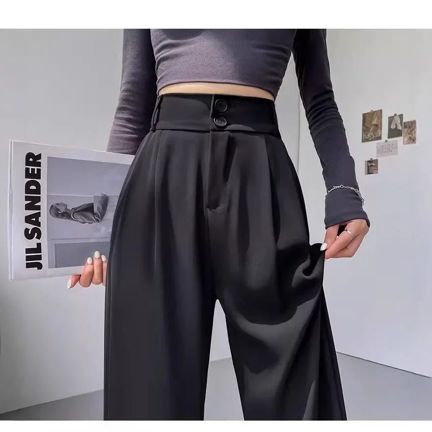 Pantaloni da abito a gamba dritta a vita alta Pantaloni casual drappeggiati che nascondono i fianchi a gamba larga per le donne taglie forti Primavera Estate Nuovo stile