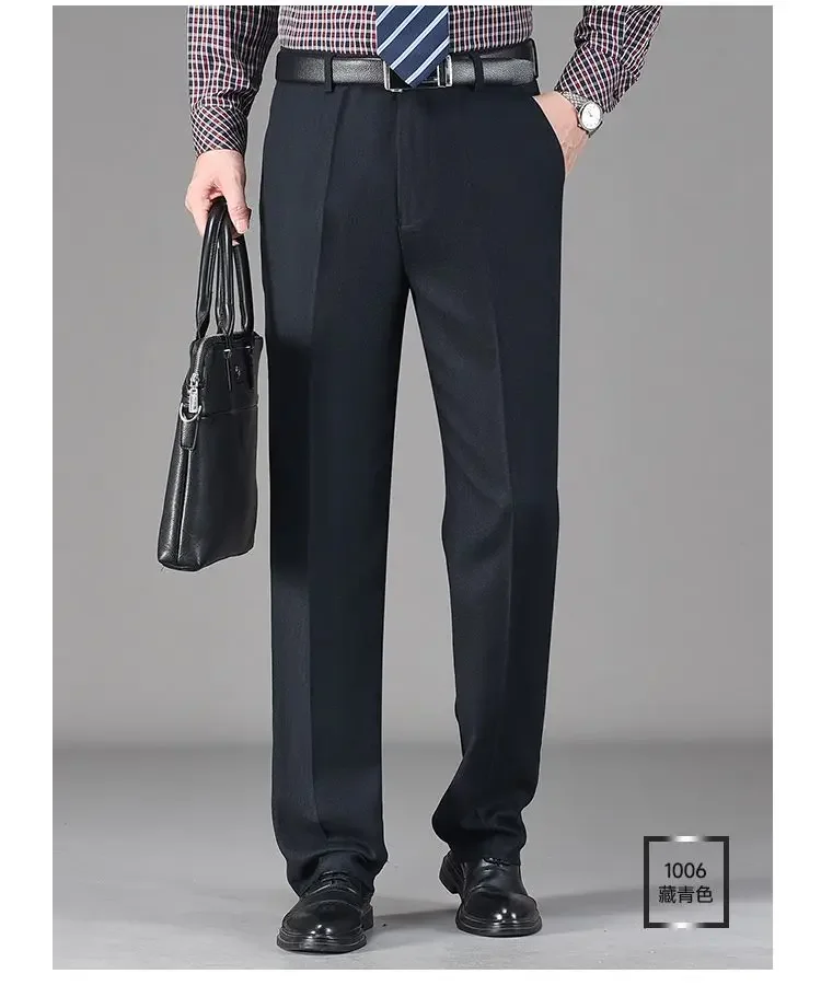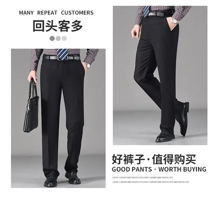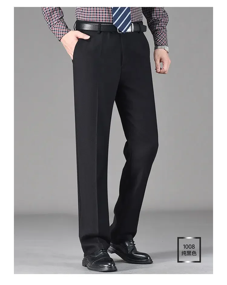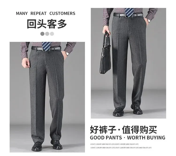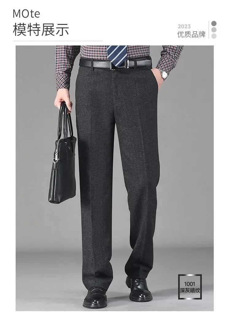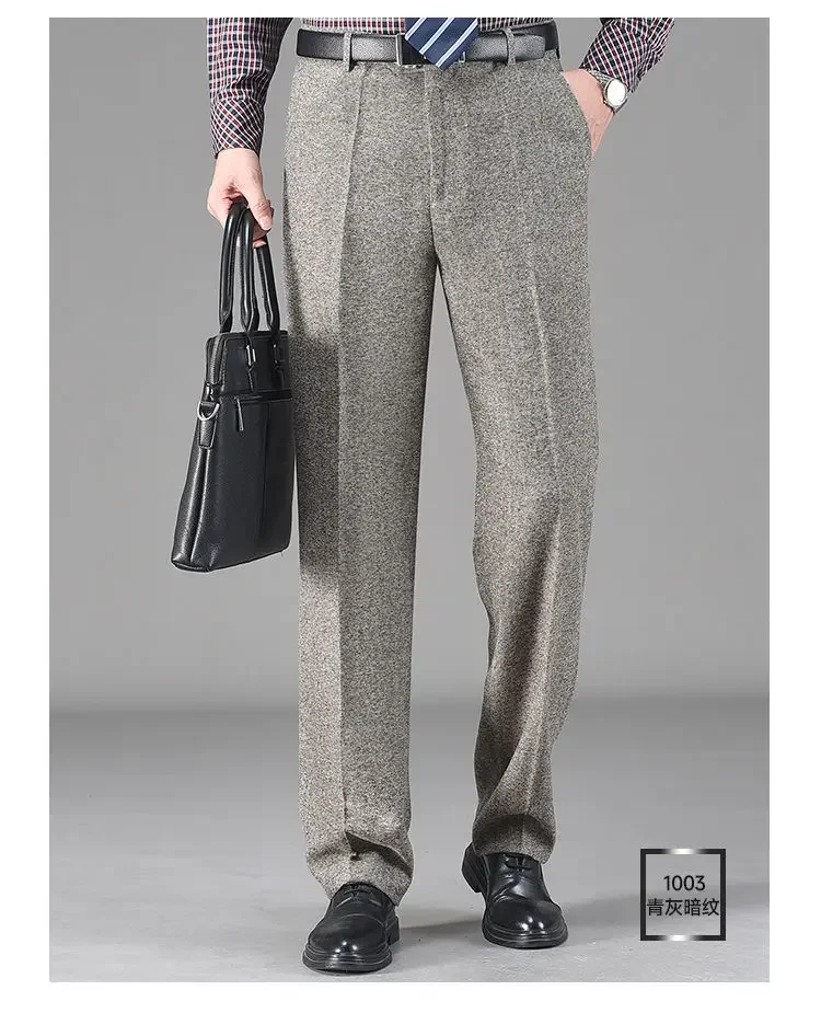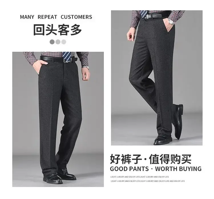 Pantaloni da abito in pile di lana addensata autunno inverno vintage da uomo Pantaloni dritti casual da lavoro larghi a vita alta di mezza età 1Pantaloni da abito in pile di lana addensata autunno inverno vintage da uomo Pantaloni dritti casual da lavoro larghi a vita alta di mezza età