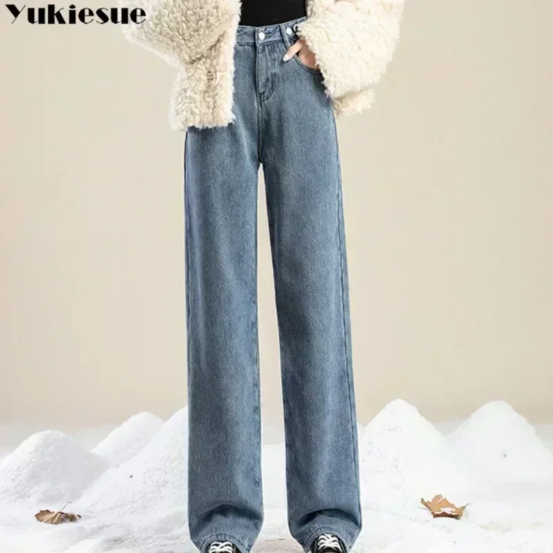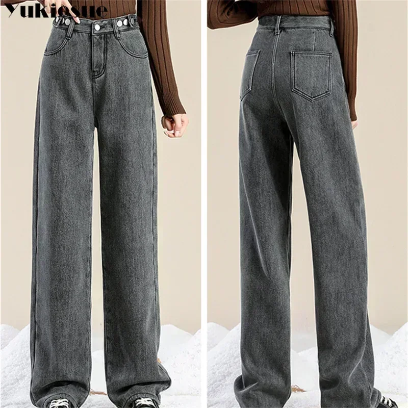 Pantaloni da donna 2023 moda invernale edizione coreana nuovo stile versatile vita alta cilindro dritto jeans a gamba larga in pile spessoPensa ad un Regalo Unico e Utile per le Persone a te Vicine!! Regala un buono a partire da € 10,00 a € 300,00
