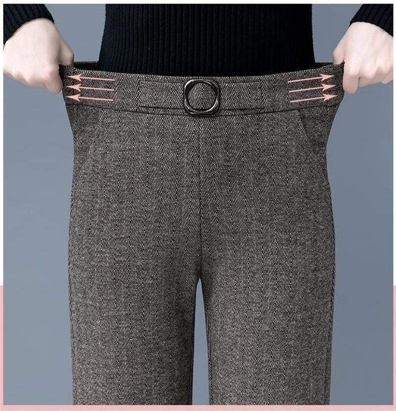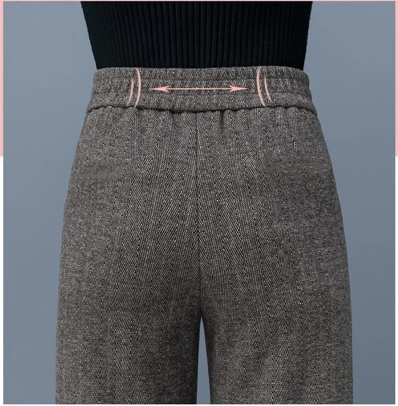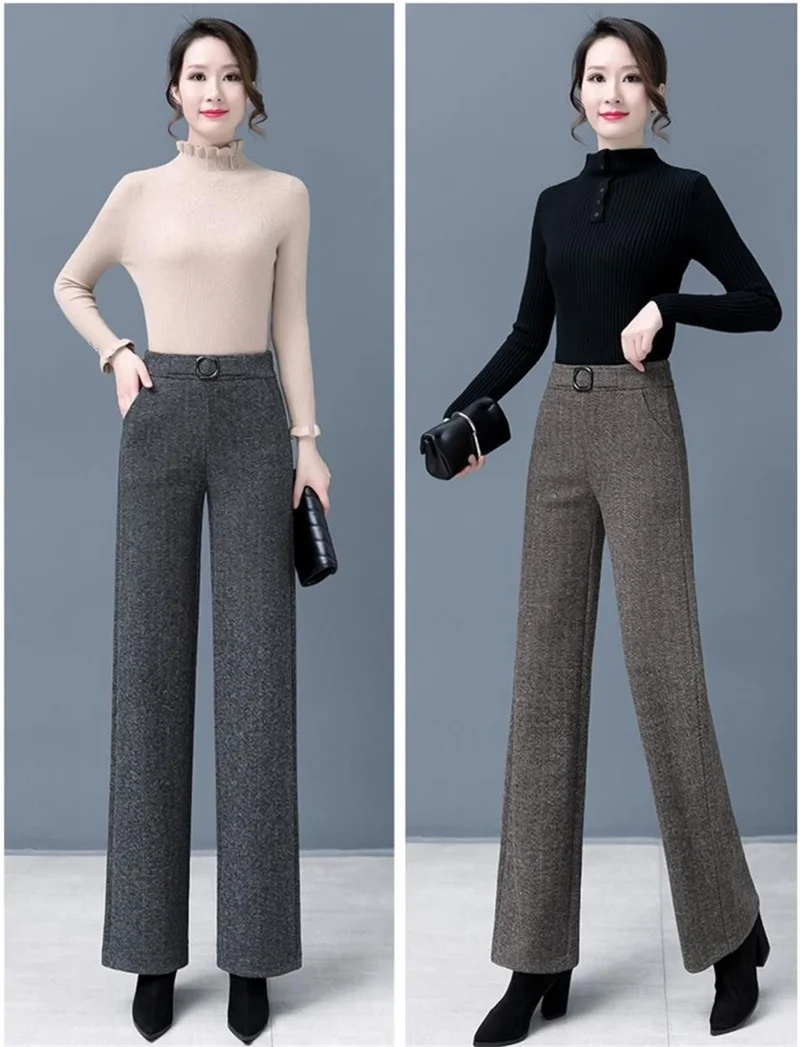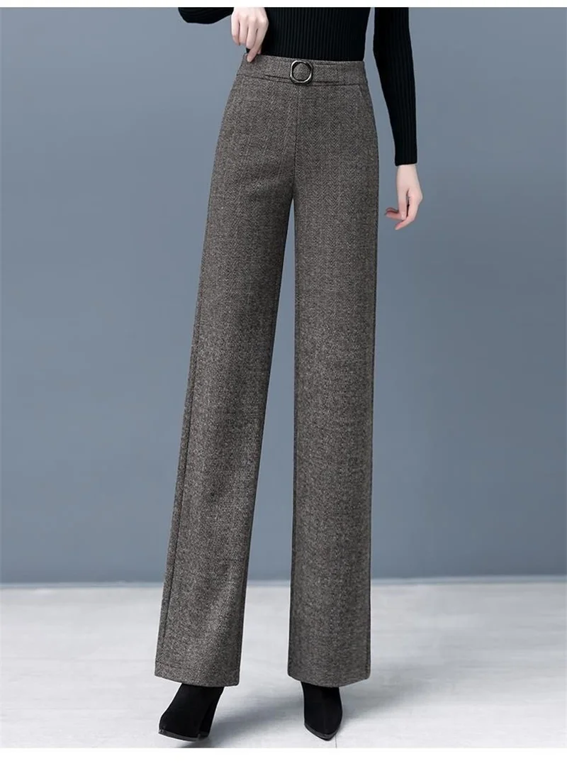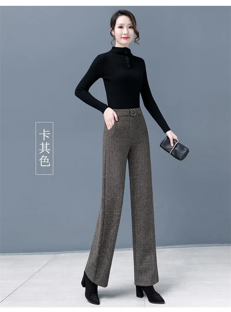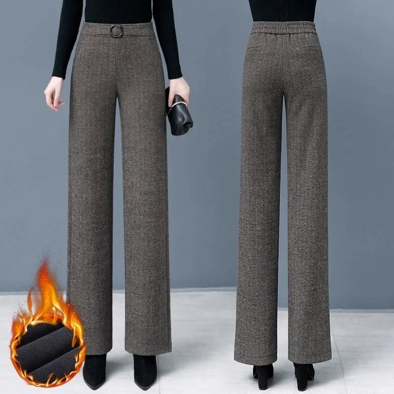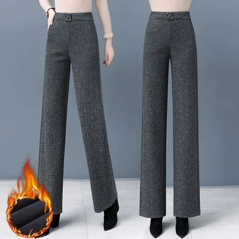 Pantaloni da donna autunnali 2023 pantaloni di lana larghi elastici a vita alta di nuova moda pantaloni lunghi dritti Casual in velluto invernale femminile