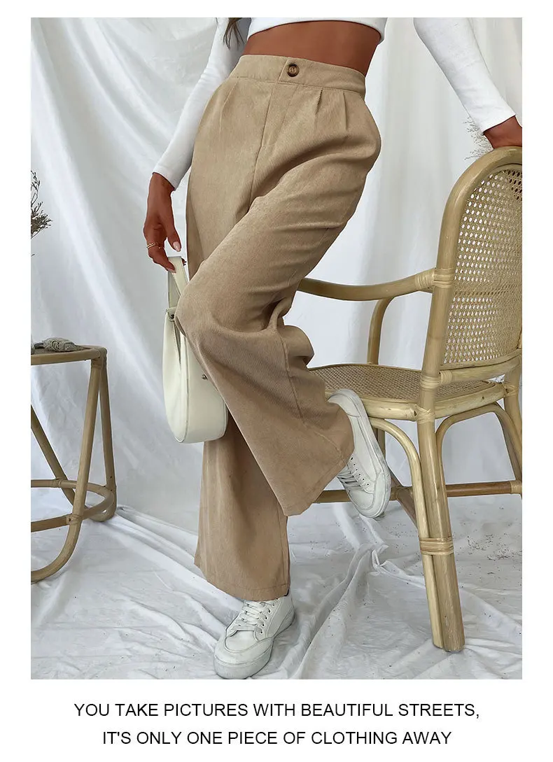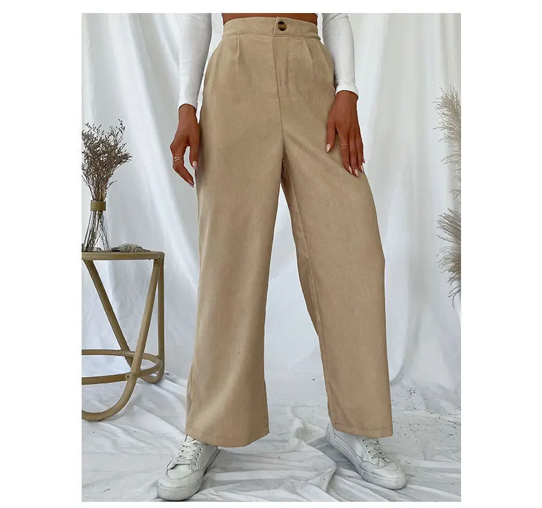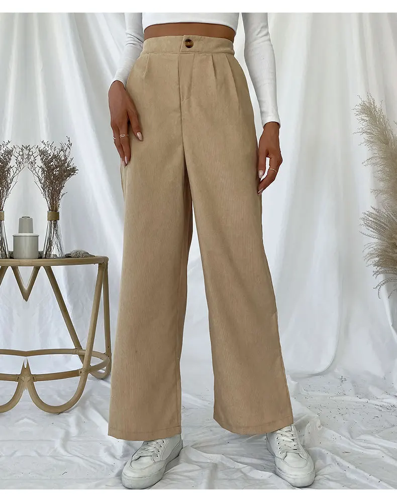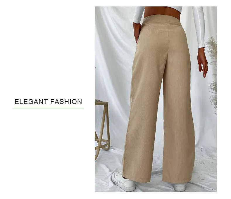 Pantaloni da donna casual autunnali e invernali Pantaloni a gamba larga stile pendolarismo in velluto a coste