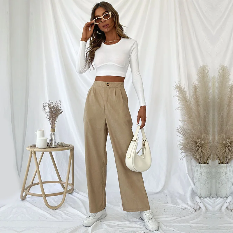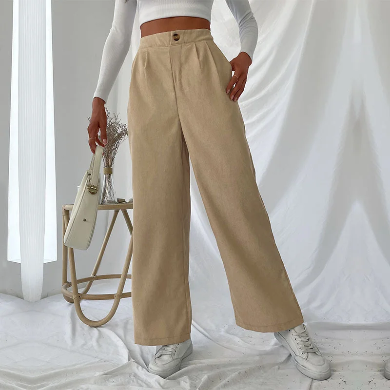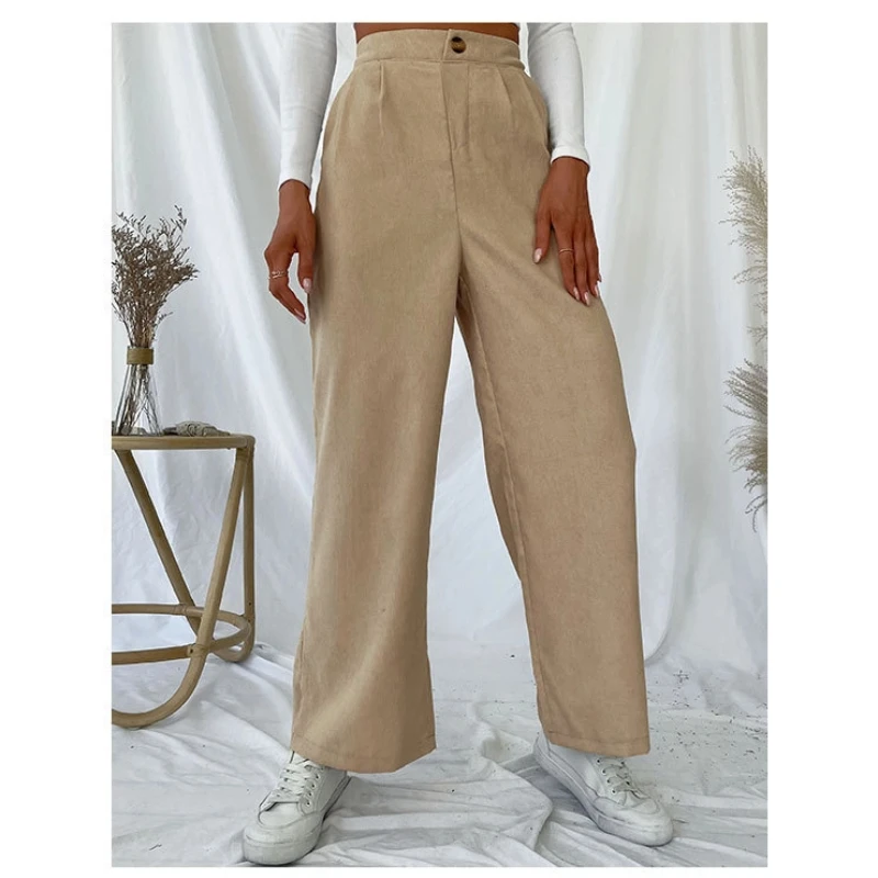 Pantaloni da donna casual autunnali e invernali Pantaloni a gamba larga stile pendolarismo in velluto a coste