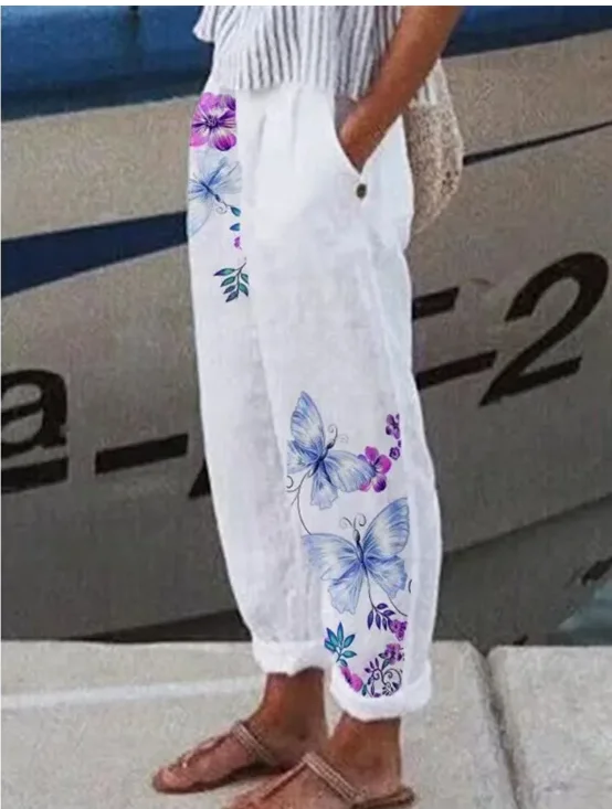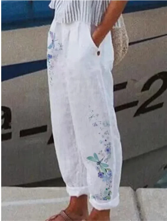 Pantaloni da donna in lino di cotone di nuova moda Pantaloni larghi in vita elastica in vita Pantaloni da lavoro casual primavera estate