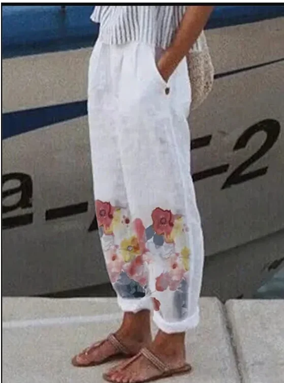 8 recensioni per Pantaloni da donna in lino di cotone di nuova moda Pantaloni larghi in vita elastica in vita Pantaloni da lavoro casual primavera estate
