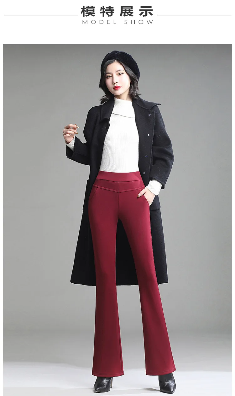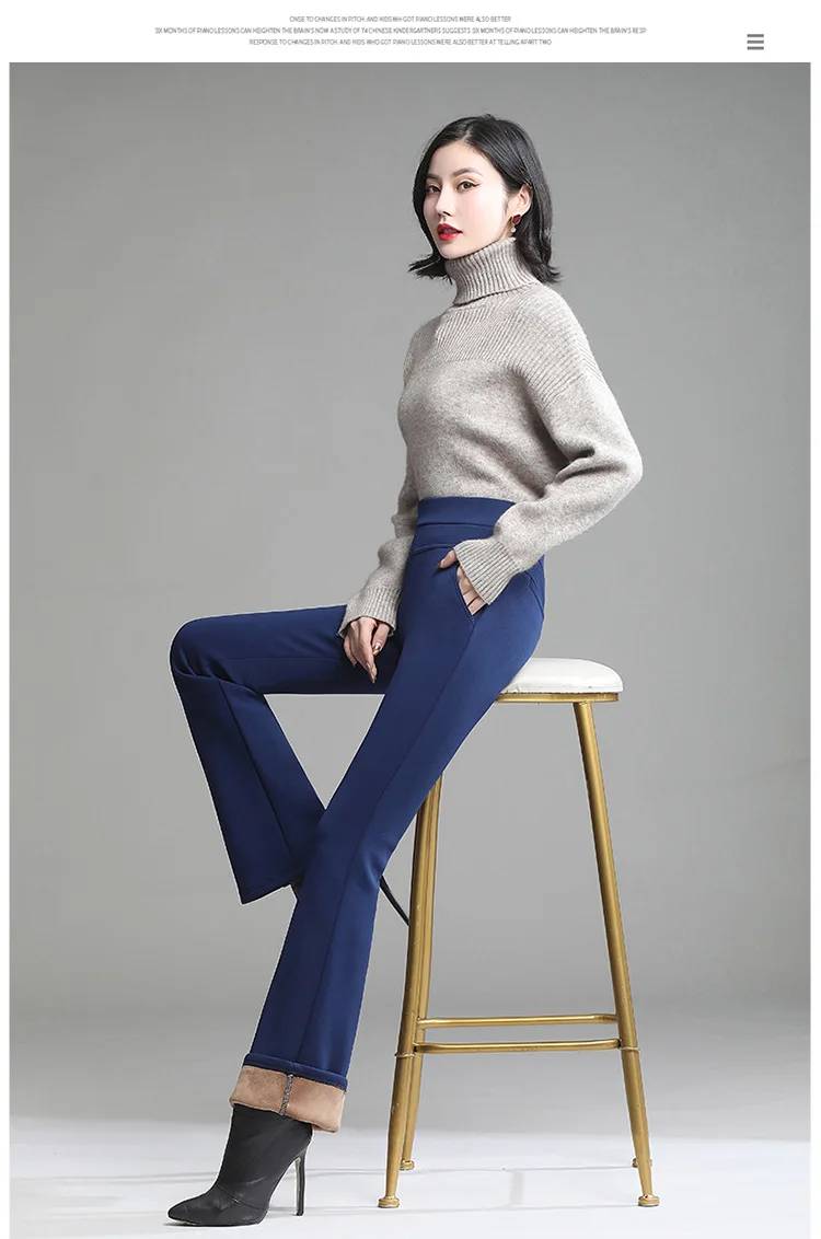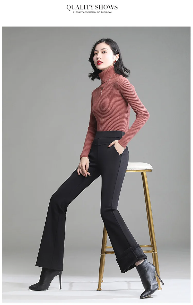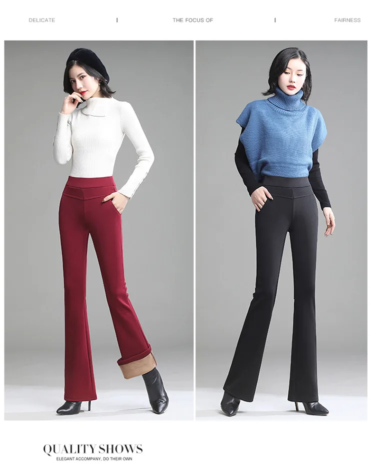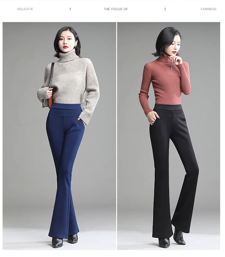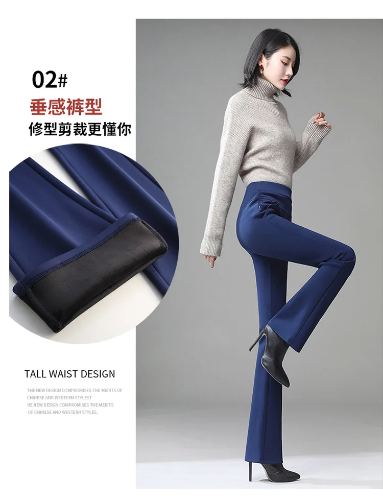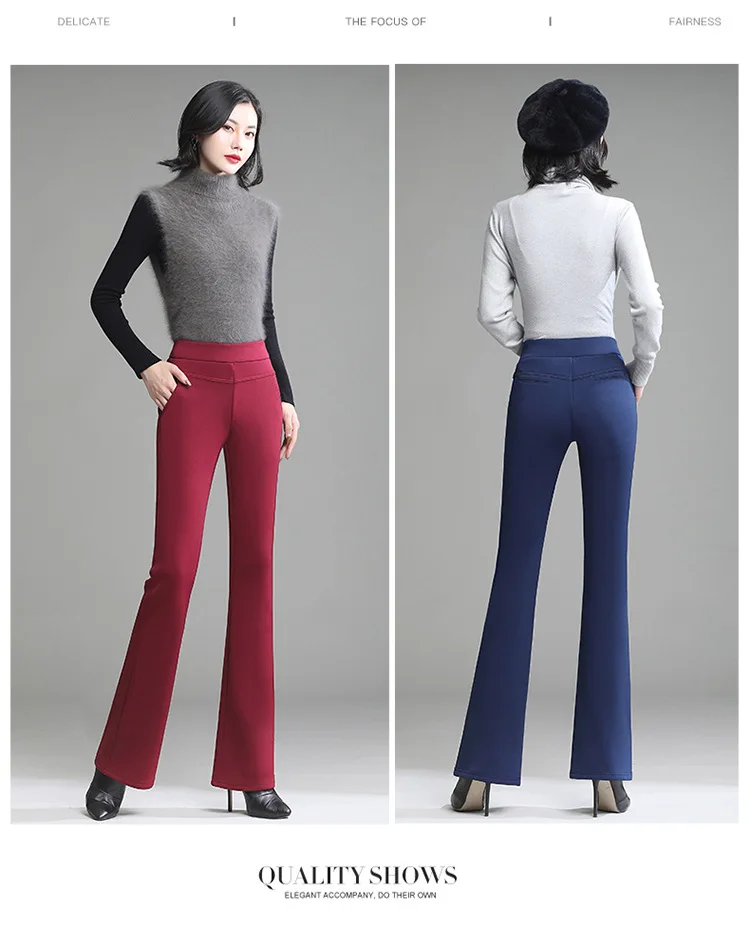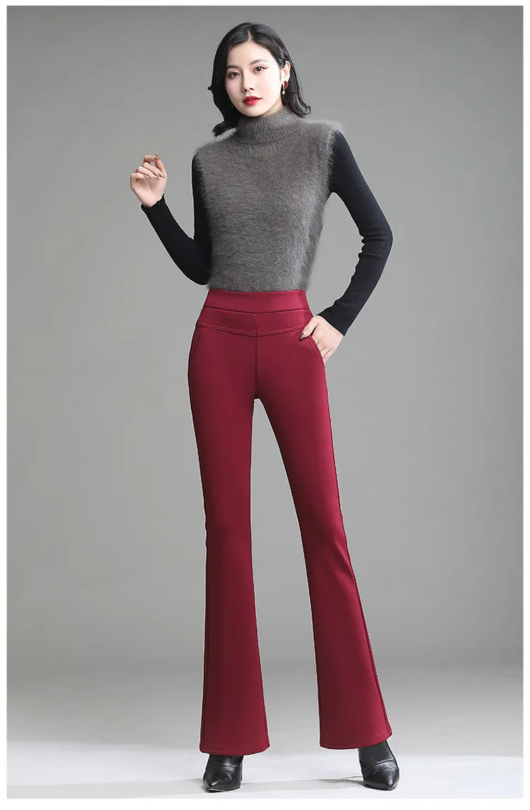 Pantaloni da donna in pile spesso caldo invernale da ufficio OL pantaloni svasati a gamba larga a vita alta femminile per pantaloni da donna donna