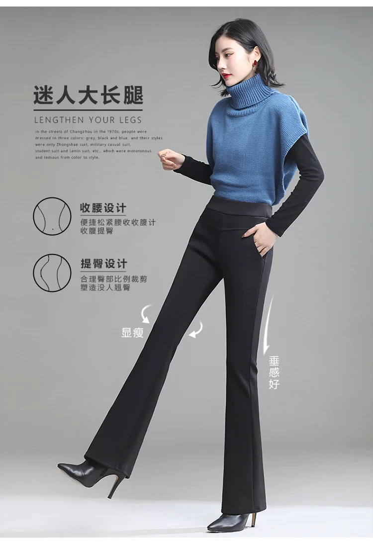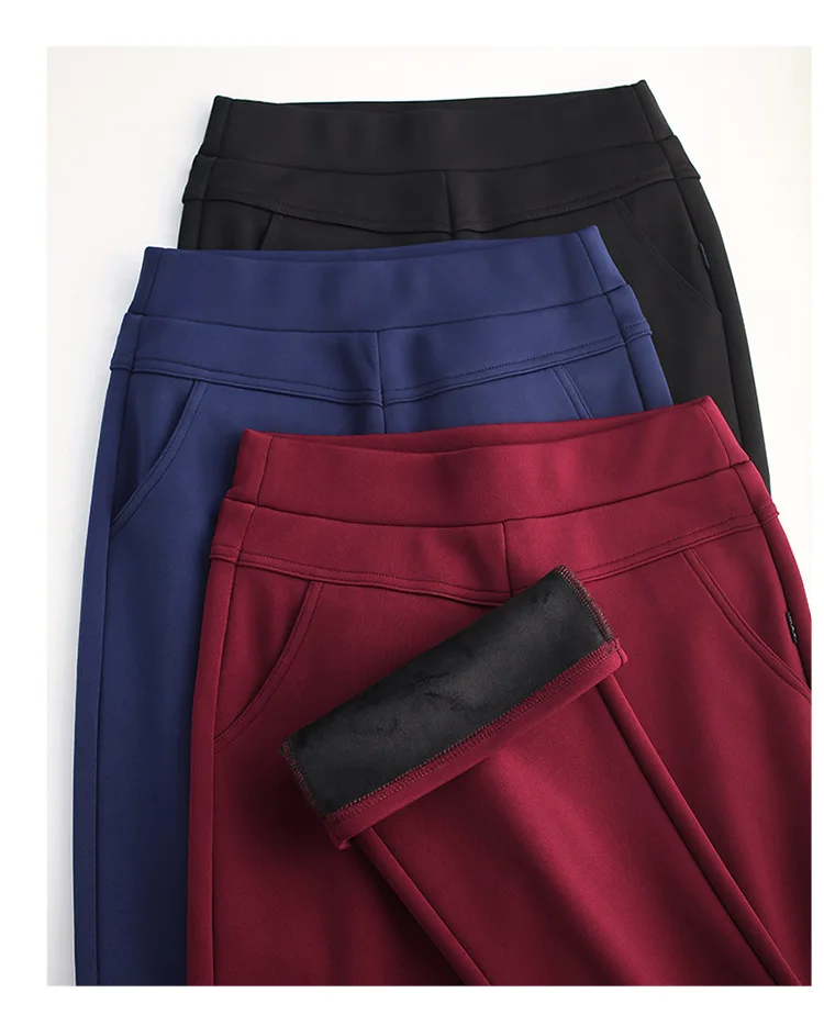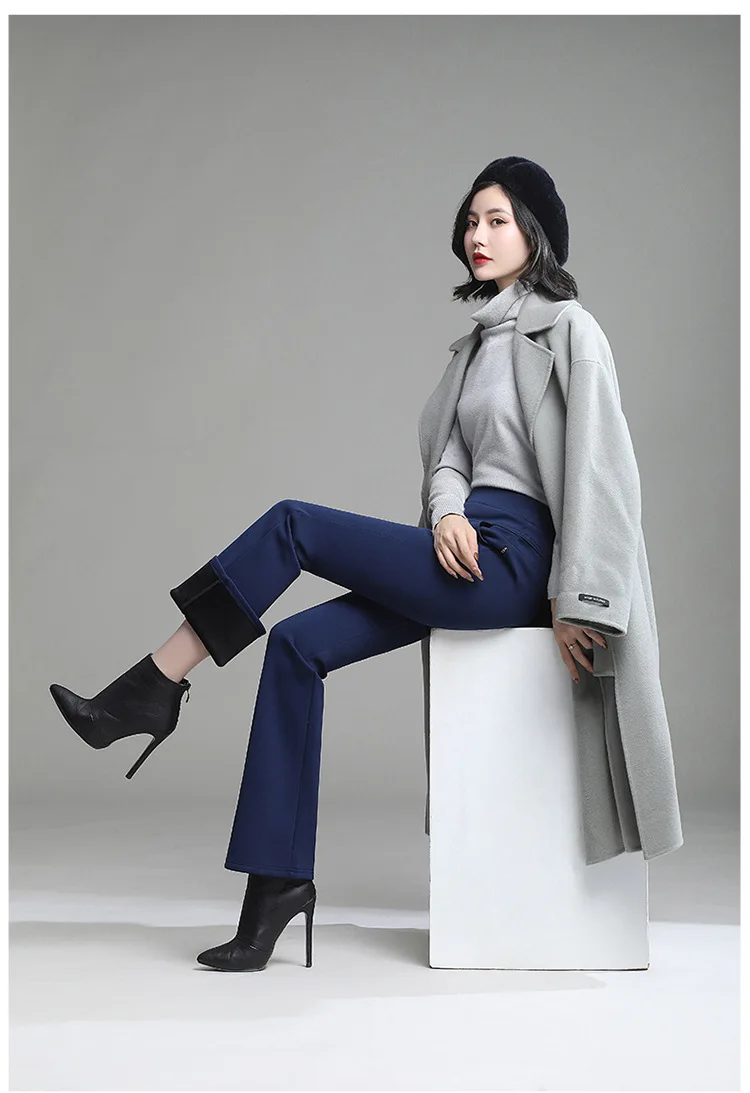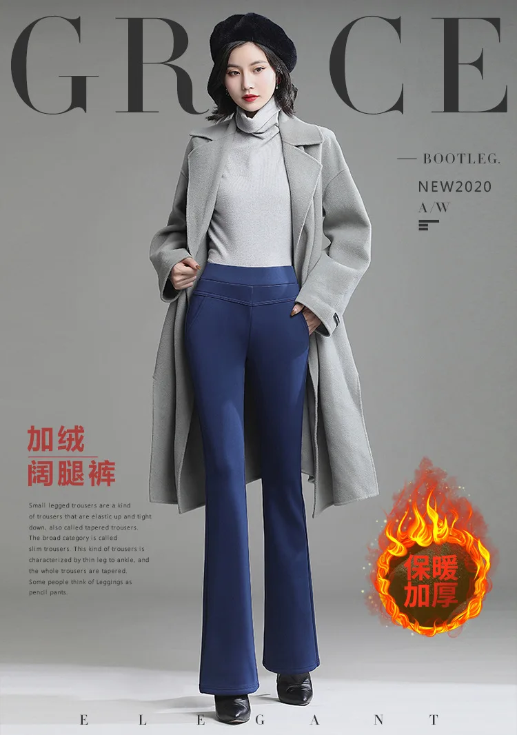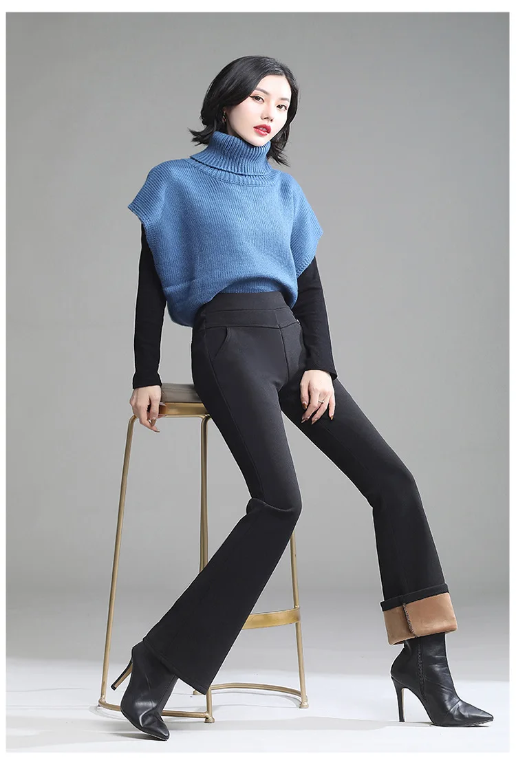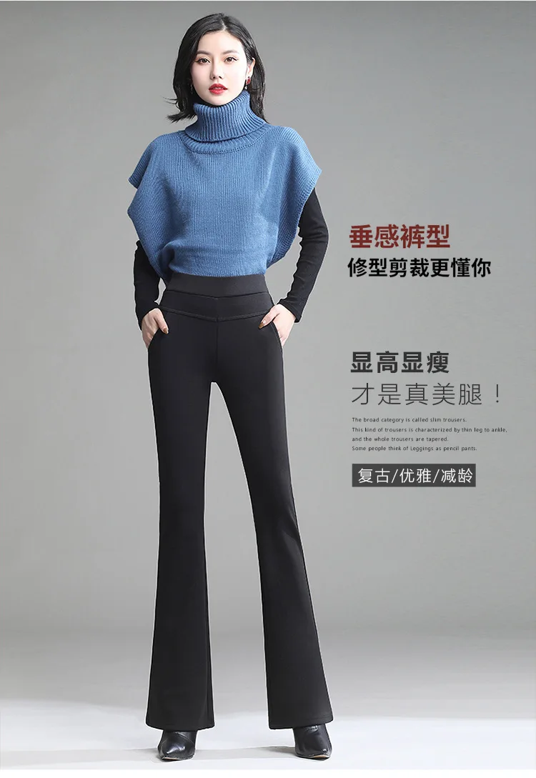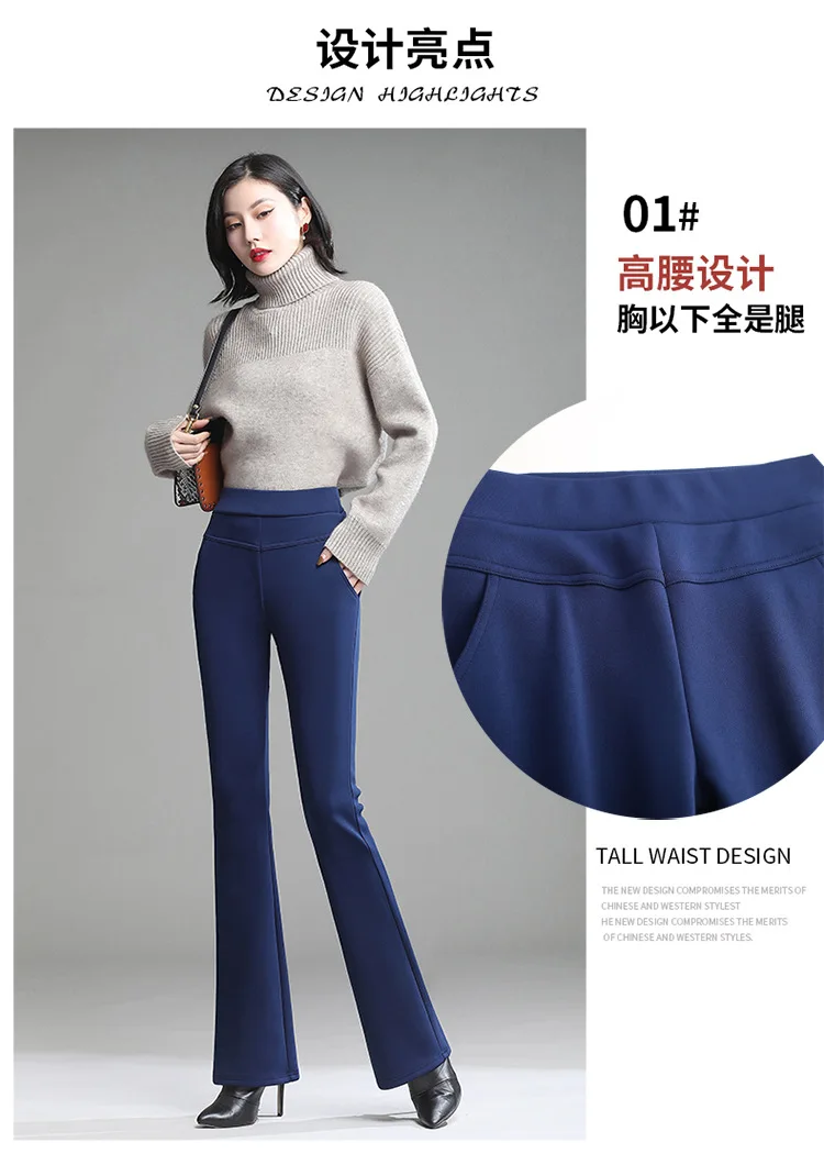 Pantaloni da donna in pile spesso caldo invernale da ufficio OL pantaloni svasati a gamba larga a vita alta femminile per pantaloni da donna donna