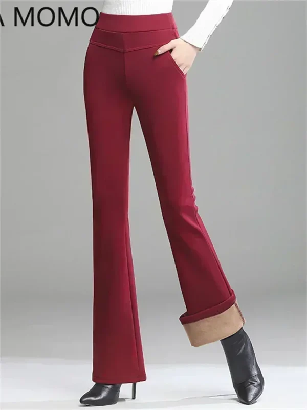 Pantaloni da donna in pile spesso caldo invernale da ufficio OL pantaloni svasati a gamba larga a vita alta femminile per pantaloni da donna donna