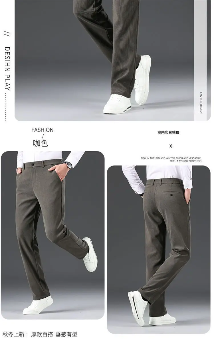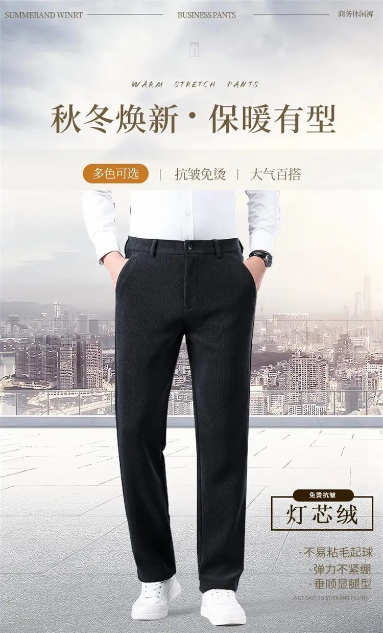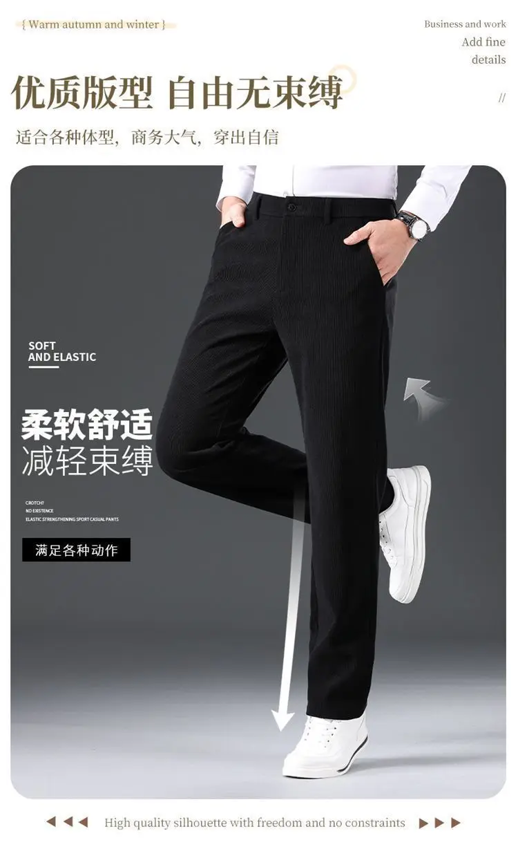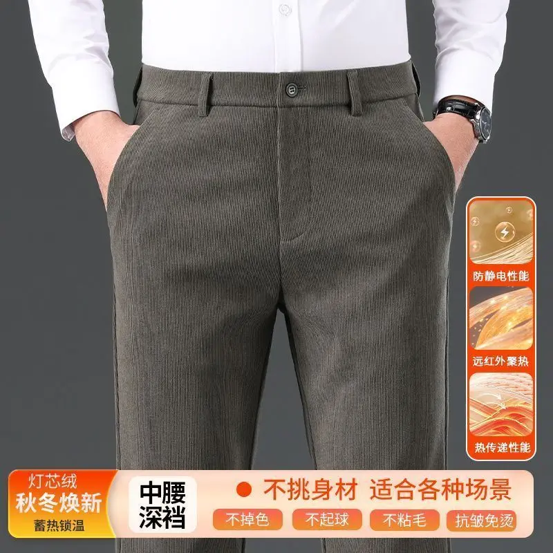 Pantaloni da lavoro dritti larghi autunnali da uomo in velluto a coste Pantaloni casual a vita media per papà