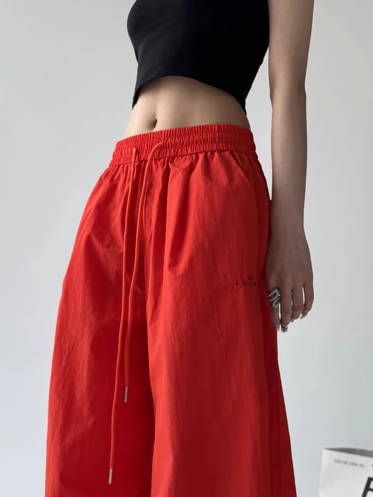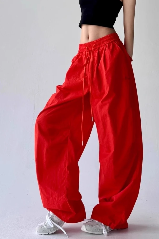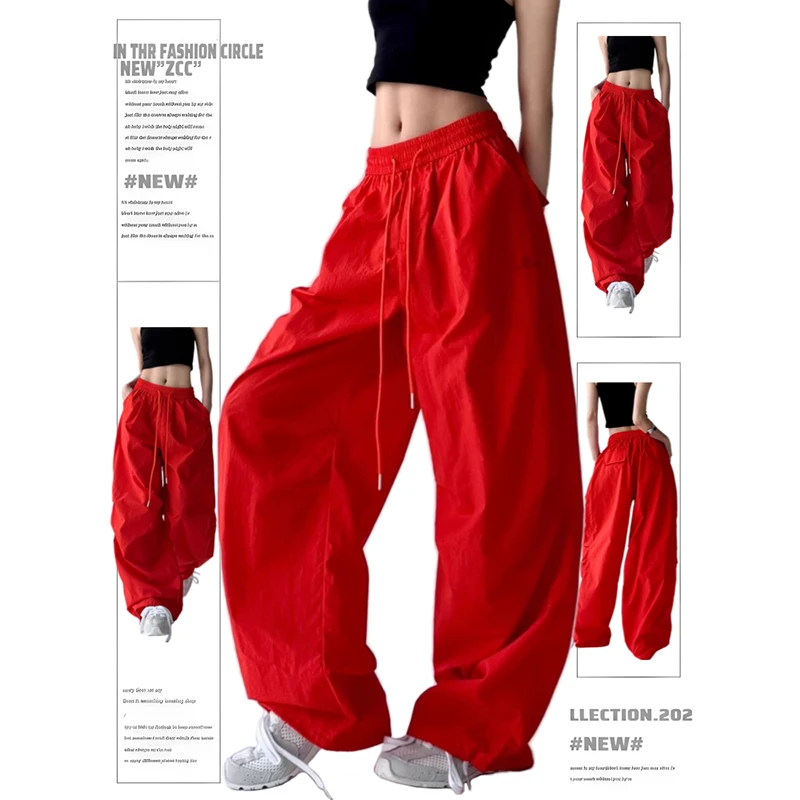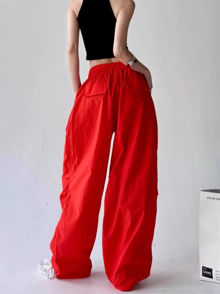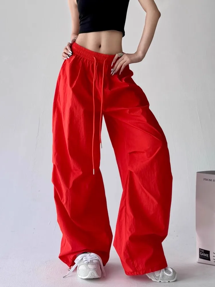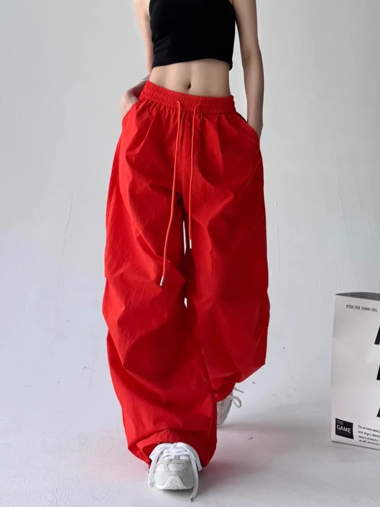 Pantaloni da paracadute larghi rossi da donna Y2k Pantaloni sportivi vintage Pantaloni cargo Harajuku Pantaloni stile giapponese anni 2000 Abbigliamento Estate 2025