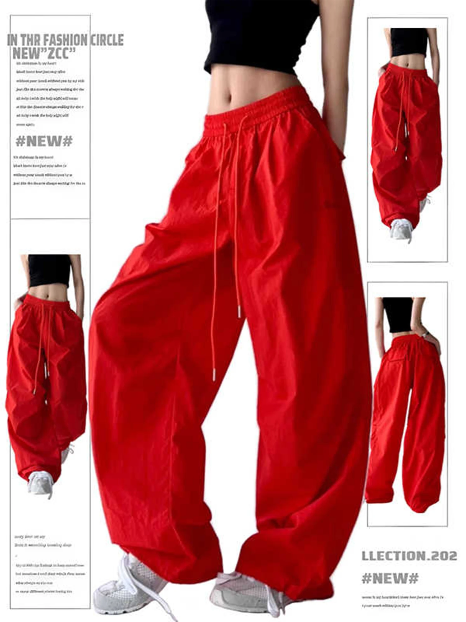 Pantaloni da paracadute larghi rossi da donna Y2k Pantaloni sportivi vintage Pantaloni cargo Harajuku Pantaloni stile giapponese anni 2000 Abbigliamento Estate 2025