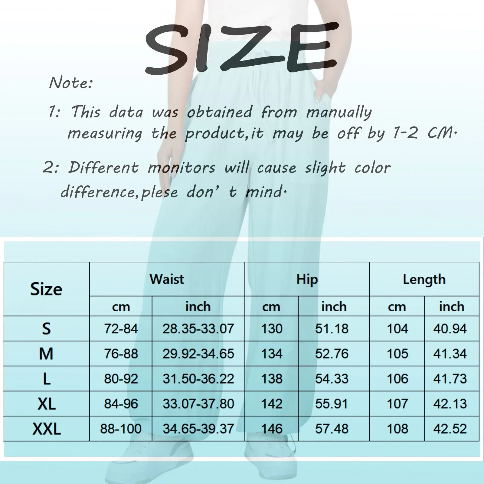 Taglia:XXL Vita: 88-100 cm/34,65-39,37” Anca: 146 cm/57,48” Lunghezza: 108 cm/42,52”