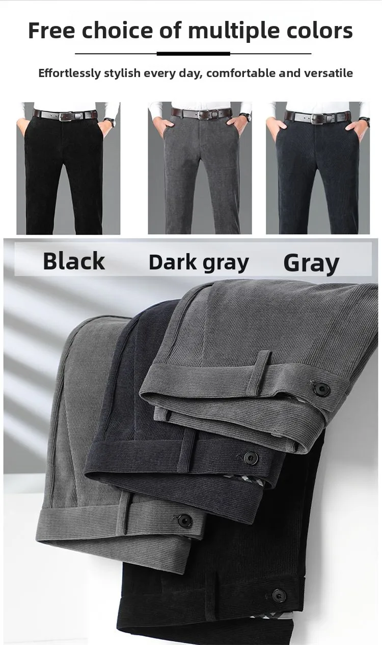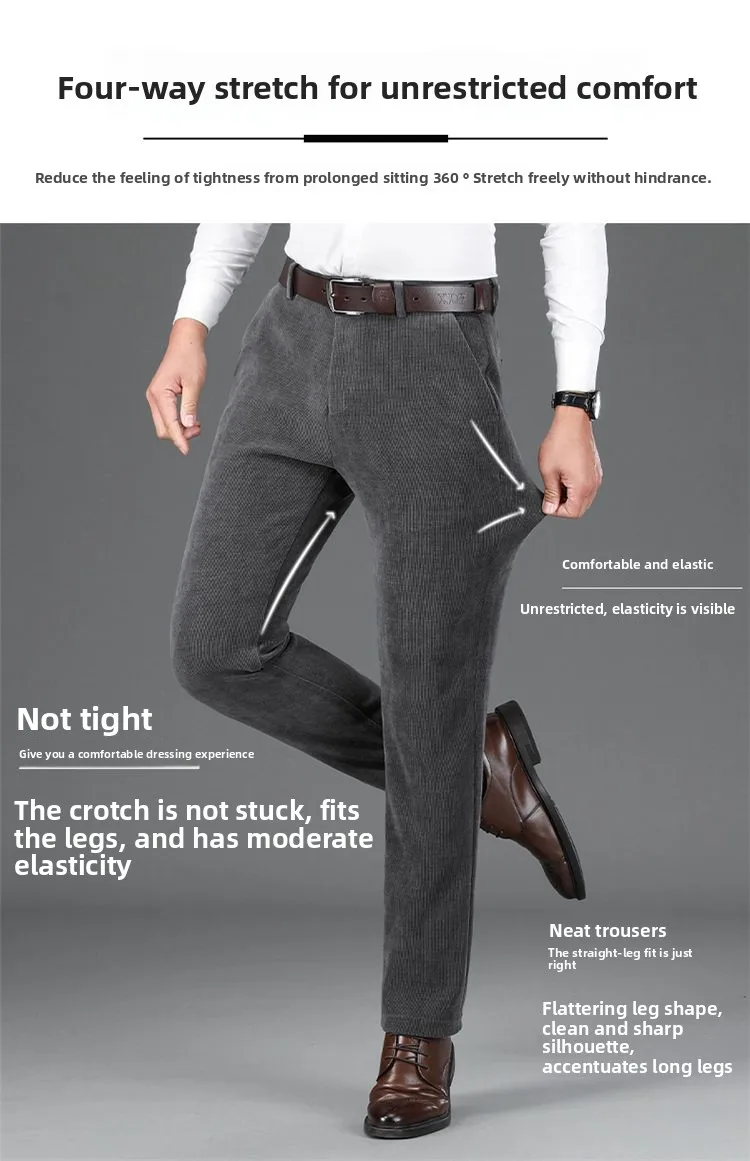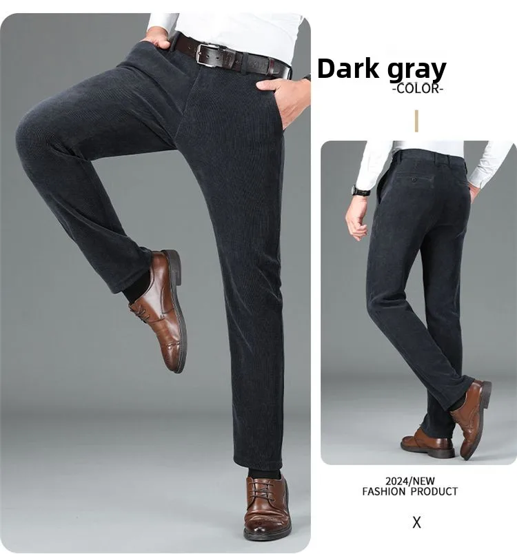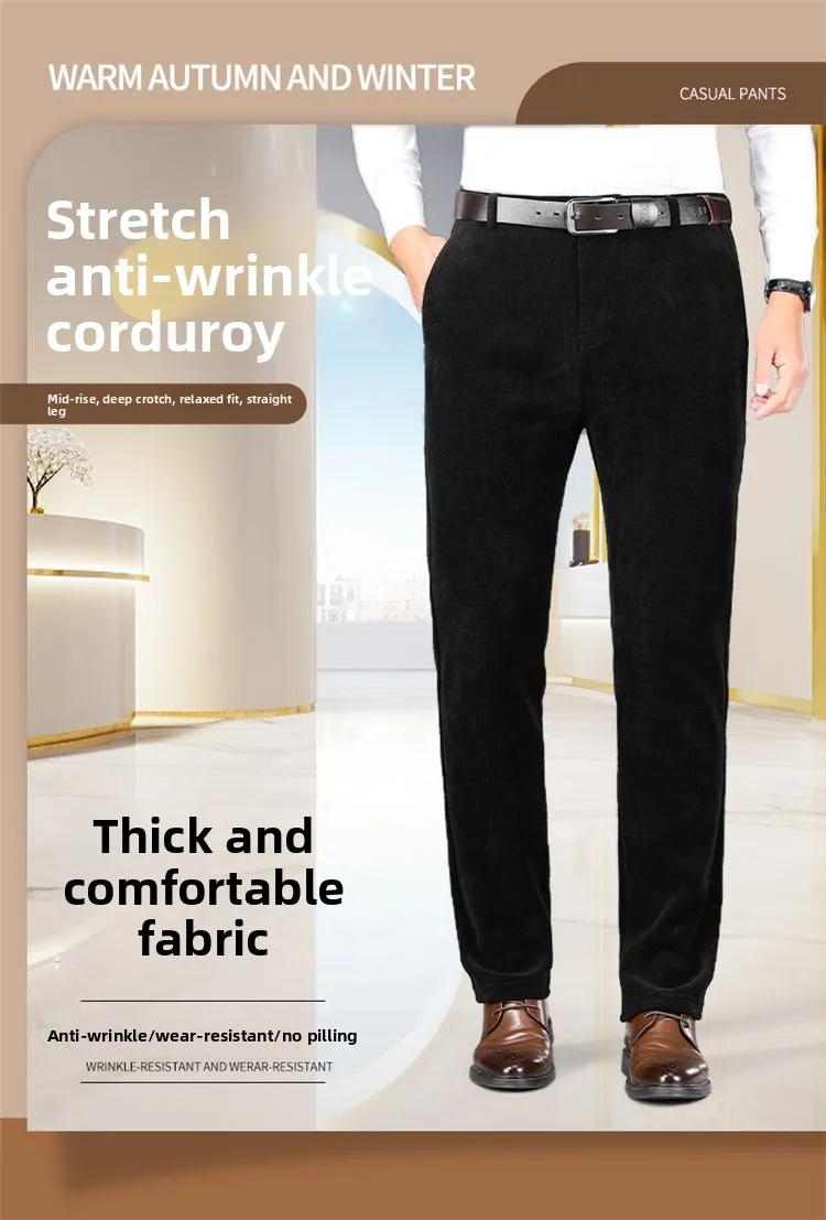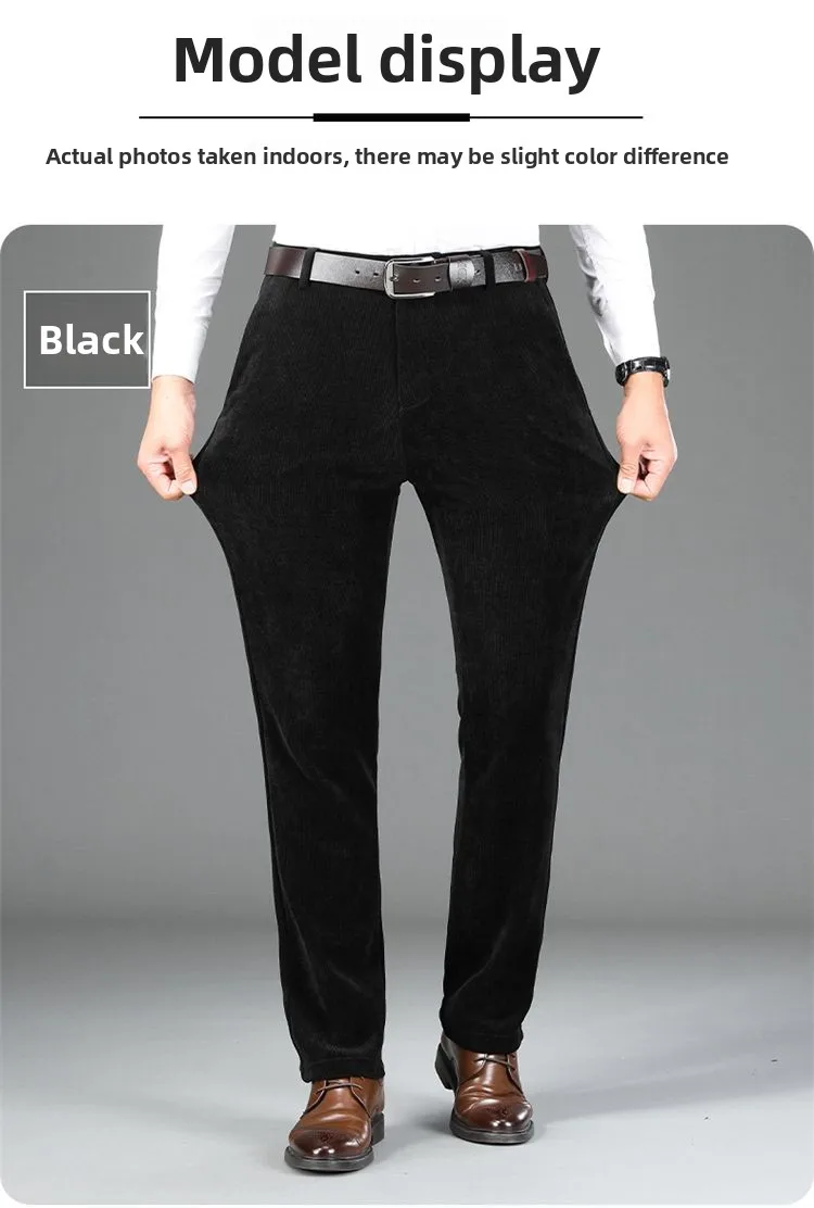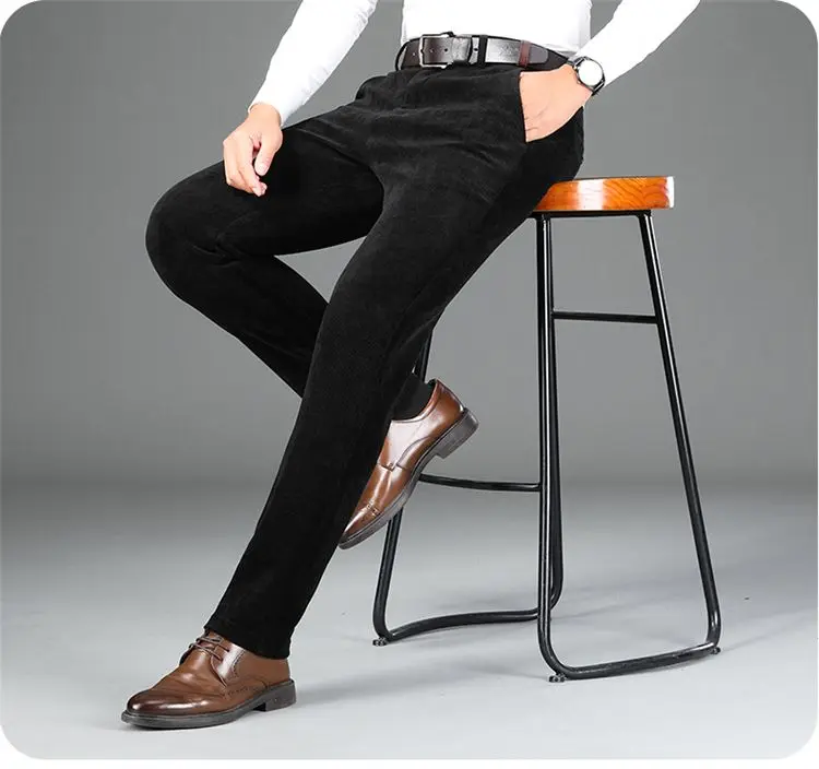 Pantaloni da uomo casual da uomo d'affari in velluto a coste spesso autunno inverno Pantaloni da padre con fodera in pile elastici e vestibilità ampia 1Pantaloni da uomo casual da uomo d’affari in velluto a coste spesso autunno inverno Pantaloni da padre con fodera in pile elastici e vestibilità ampia