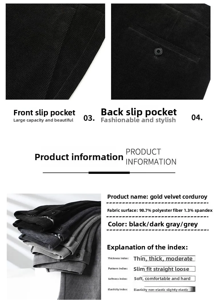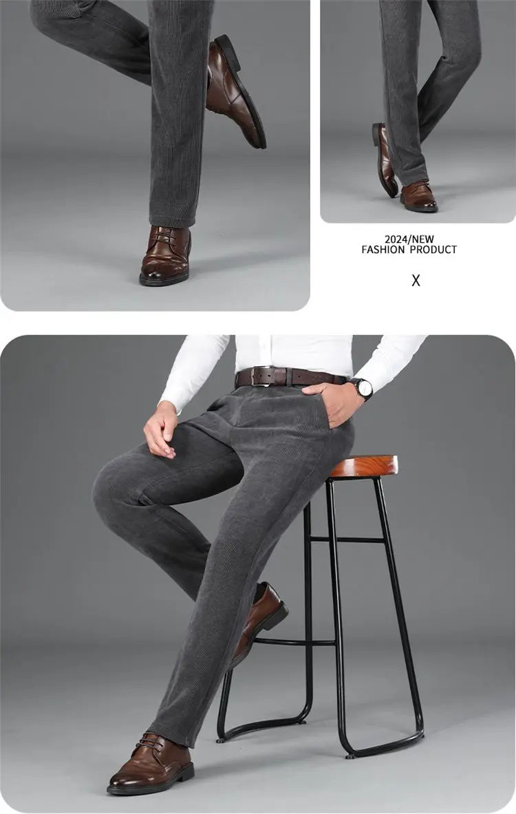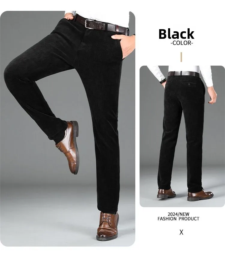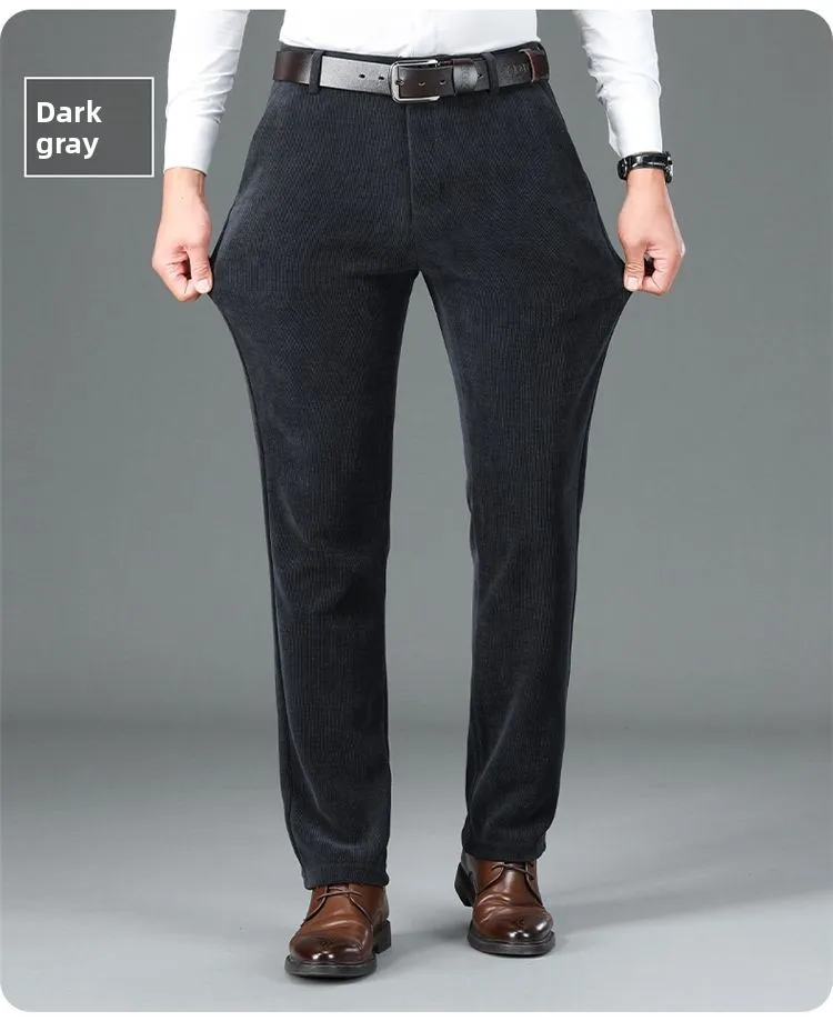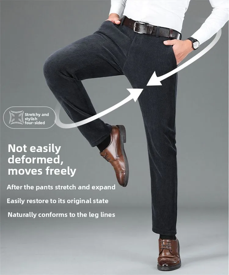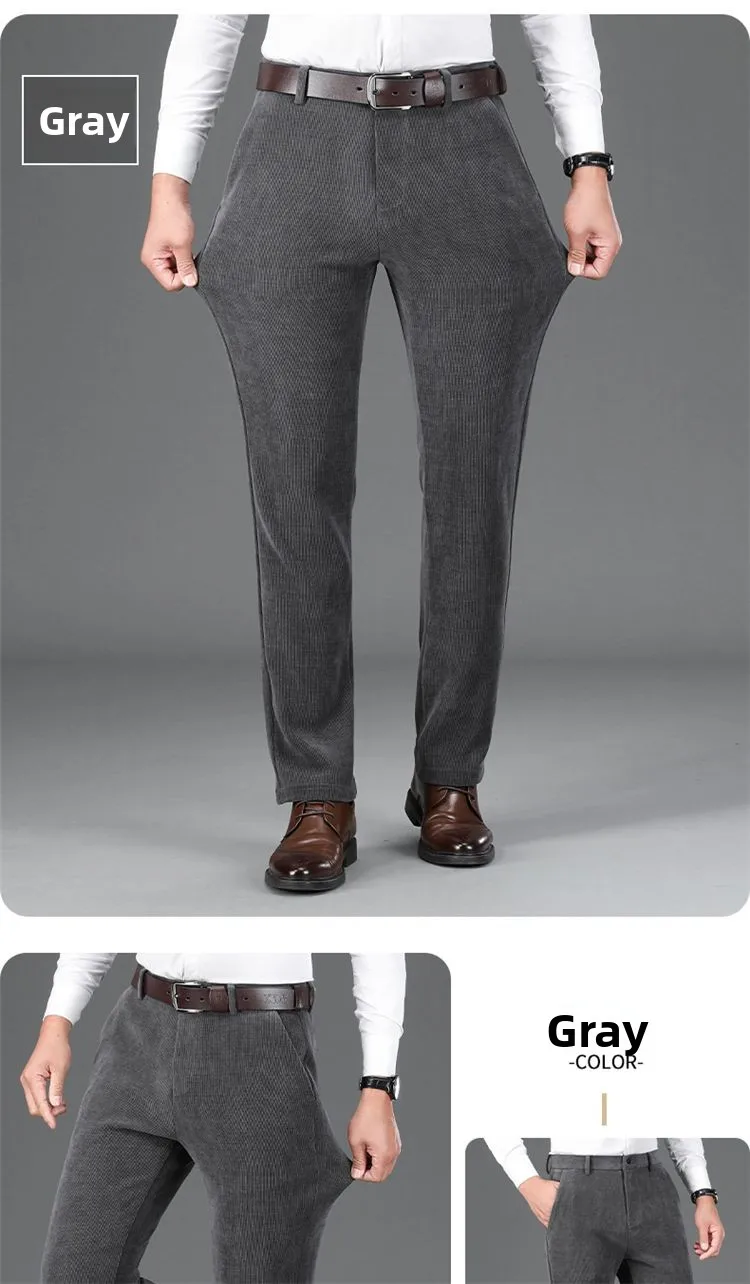 Pantaloni da uomo casual da uomo d'affari in velluto a coste spesso autunno inverno Pantaloni da padre con fodera in pile elastici e vestibilità ampia 1Pantaloni da uomo casual da uomo d’affari in velluto a coste spesso autunno inverno Pantaloni da padre con fodera in pile elastici e vestibilità ampia