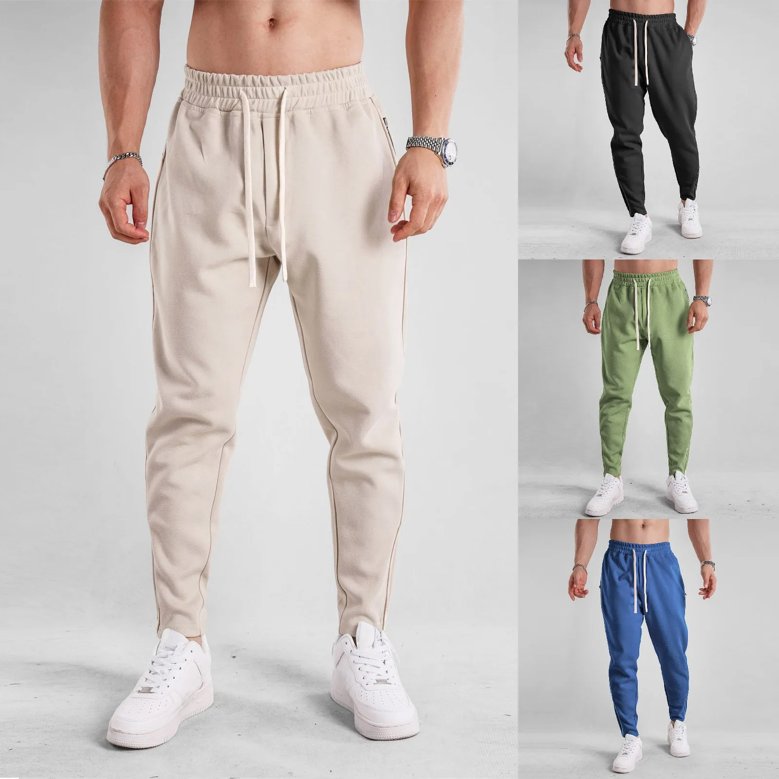 Pantaloni casual da uomo per il tempo libero, sport all’aria aperta, autunno e inverno, biancheria intima lunga, sottile, bocca del piede, cerniera, cravatta