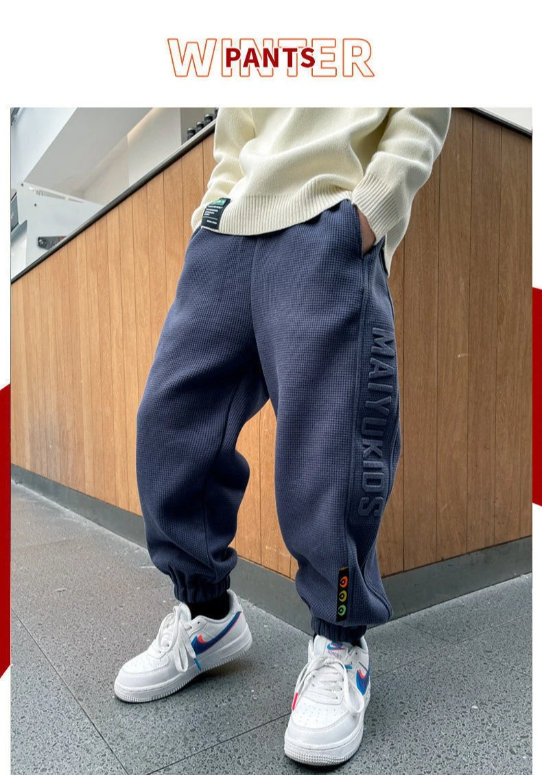Pantaloni della tuta Ragazzi Pantaloni invernali Sport Pantaloni caldi Walf Checks Bambini Pantaloni spessi Abbigliamento per bambini 4-14 anni Pantaloni causali per bambini