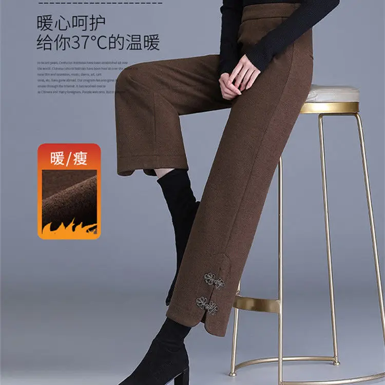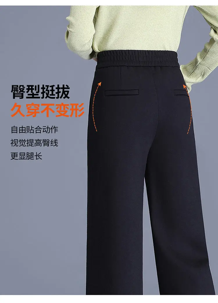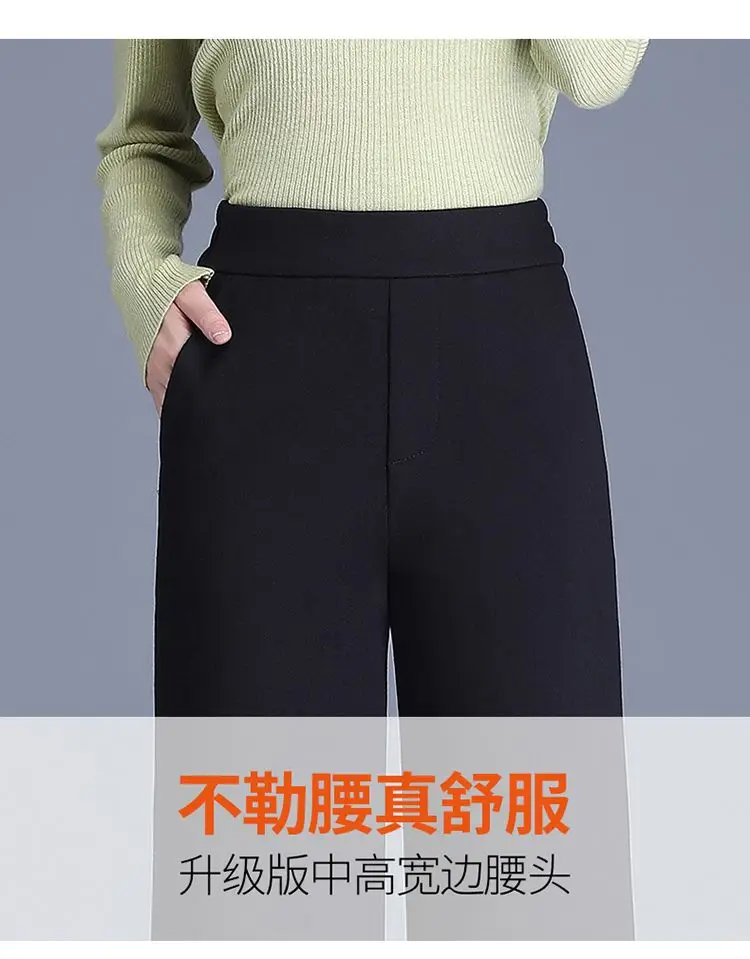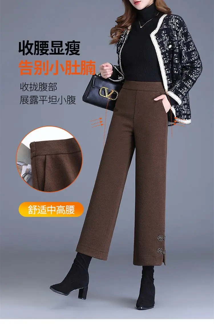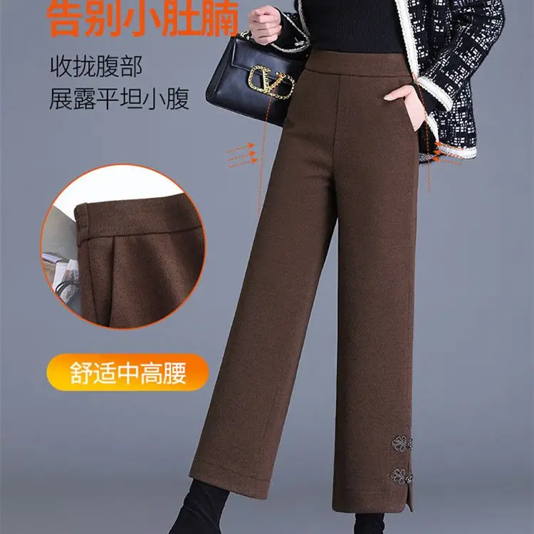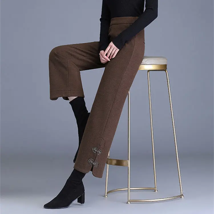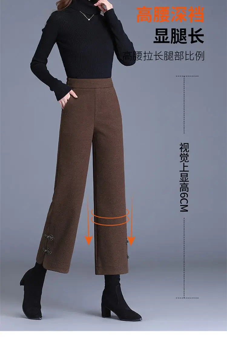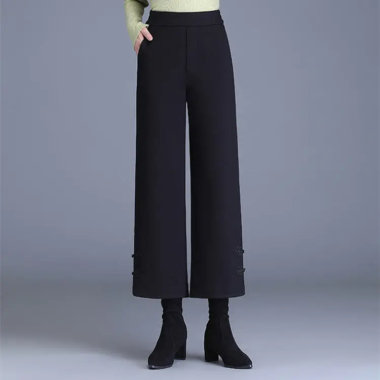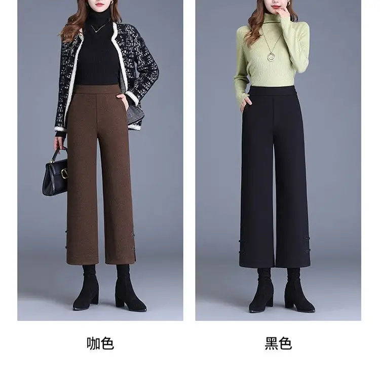 Pantaloni di lana autunno inverno moda Vintage donna Solid Elastic tasche a vita alta rana pantaloni dritti a gamba larga alla caviglia