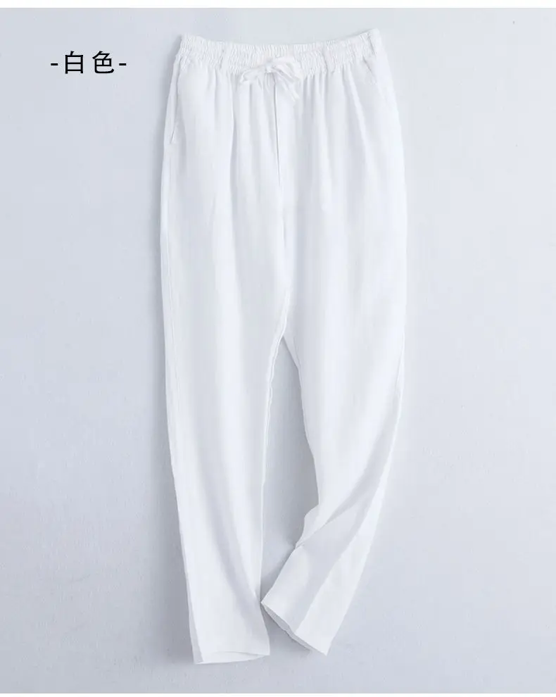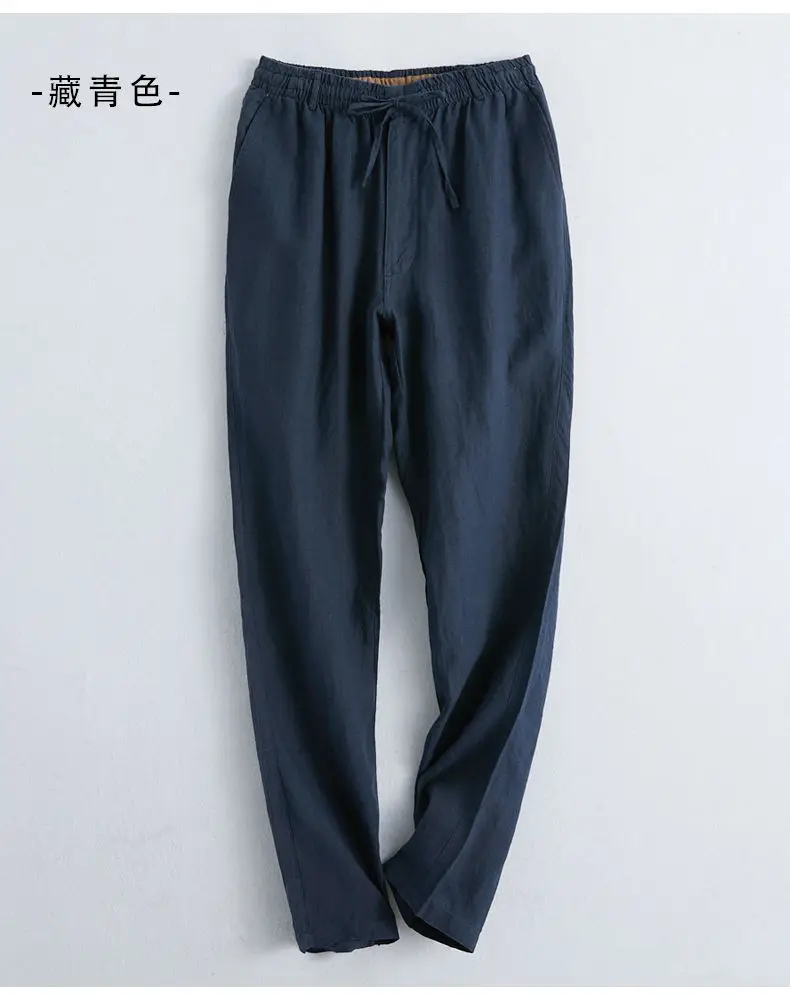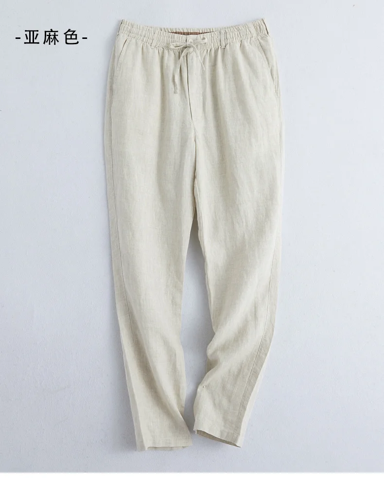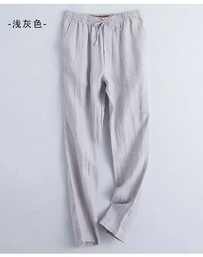 Pantaloni di lino da uomo, pantaloni casual a gamba dritta di grandi dimensioni dal taglio ampio per la primavera e l’estate sottili e