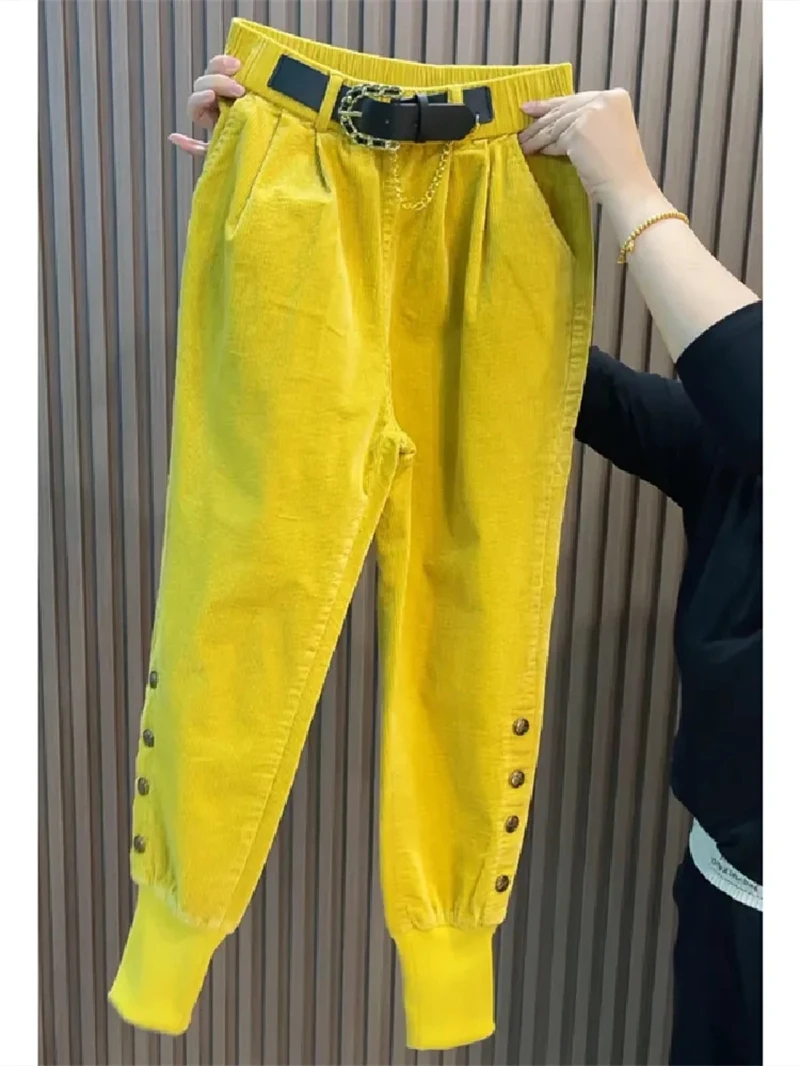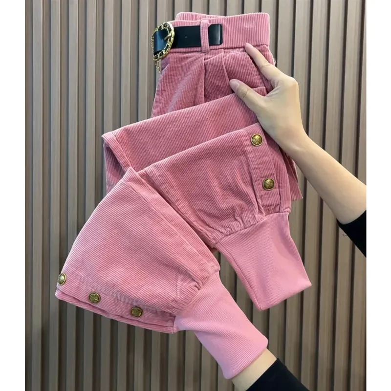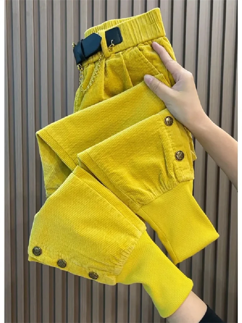 Pantaloni di velluto a coste di nuova moda donna autunno inverno tinta unita pantaloni caldi da donna Casual All-Match comodi pantaloni Harem da donna