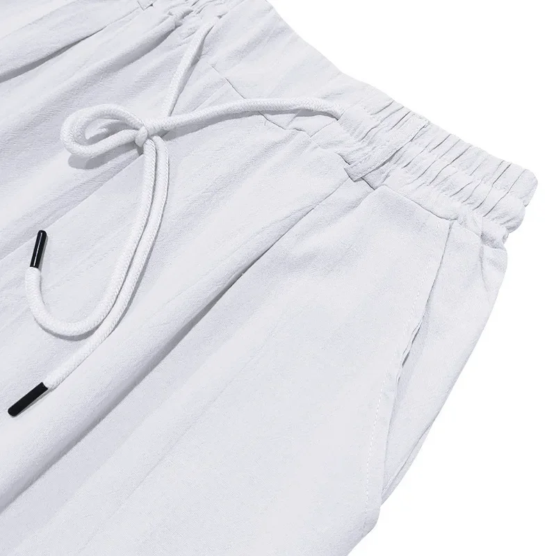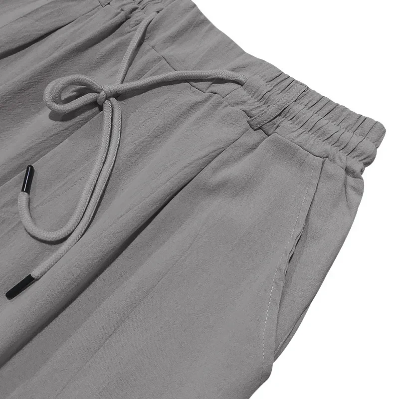 Pantaloni dritti casual in cotone e lino tinta unita alla moda semplice da uomo con coulisse 2024 1Pantaloni dritti casual in cotone e lino tinta unita alla moda semplice da uomo con coulisse 2024