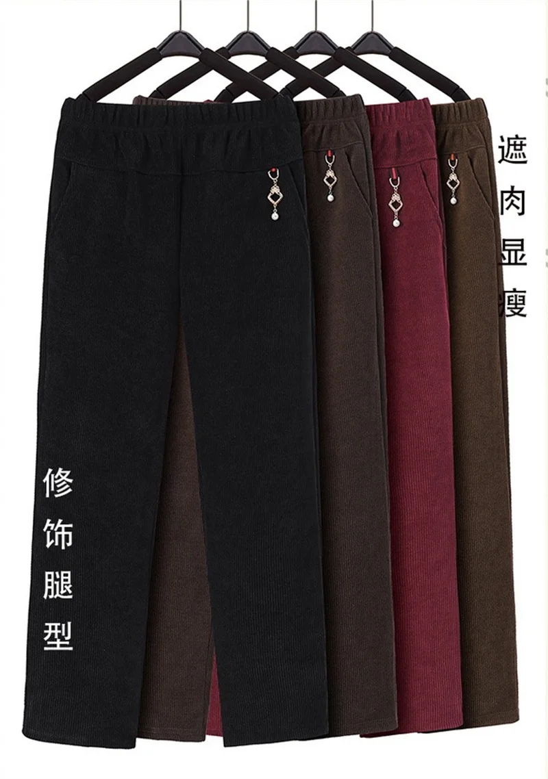 Pantaloni dritti in velluto a coste di alta qualità donna autunno inverno Oversize 8XL pantaloni madre in pile Thicke pantaloni Casual caldi femminili nuovi