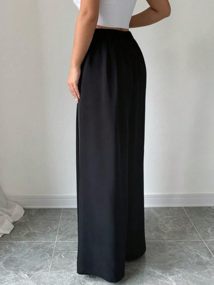 Ogilvy Mather Solido Elegante Donna Donna Gambe Pantaloni Palazzo Svasato Ampio Killer Vita Alta OL Ladies Carriera Pantaloni Lunghi