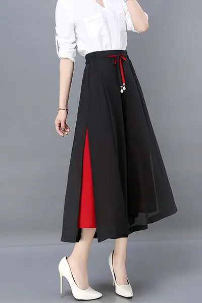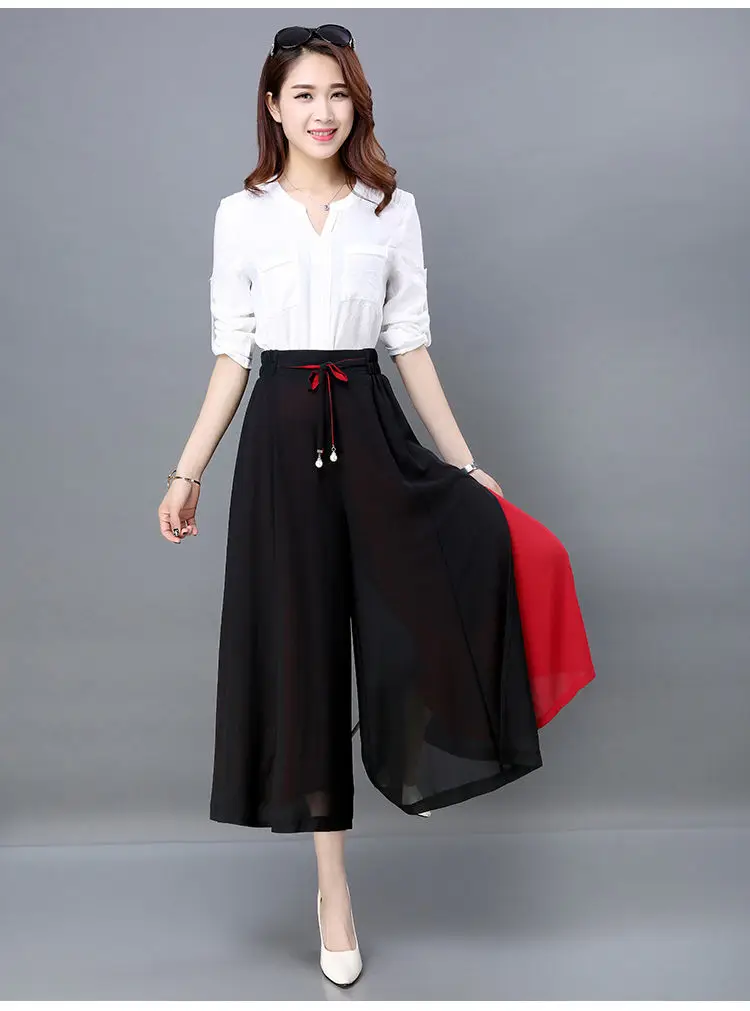 Ogilvy Mather Solido Elegante Donna Donna Gambe Pantaloni Palazzo Svasato Ampio Killer Vita Alta OL Ladies Carriera Pantaloni Lunghi