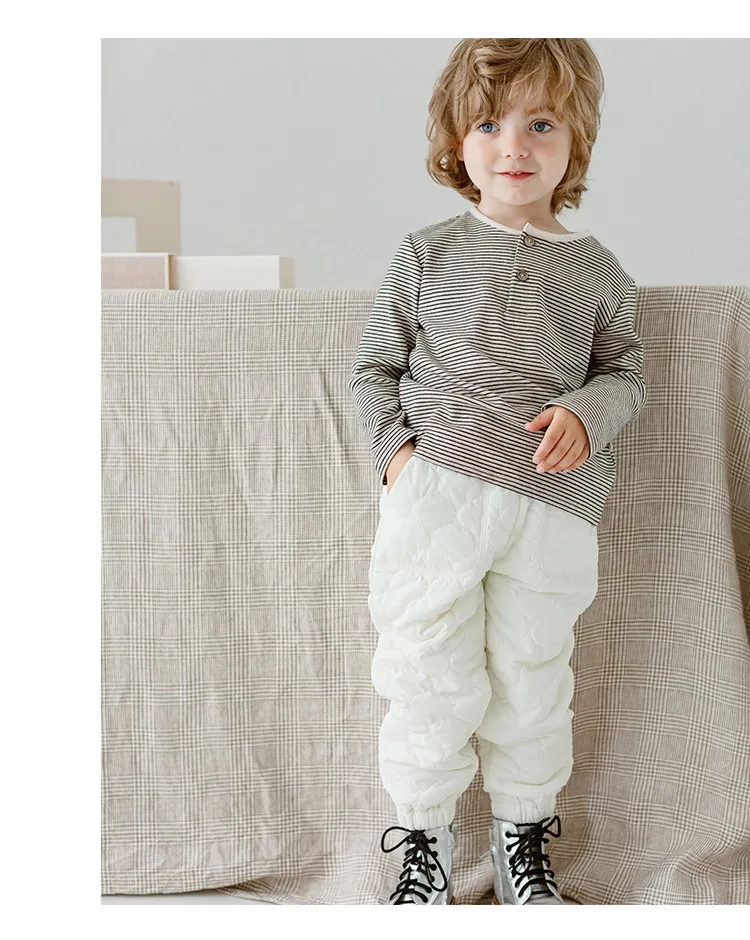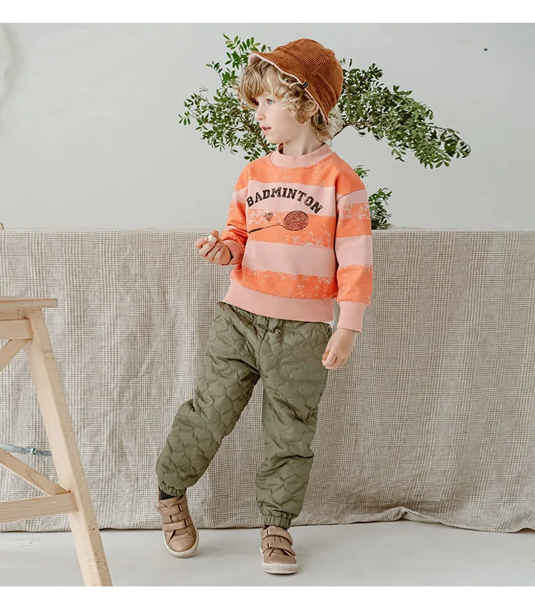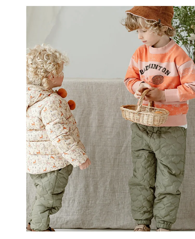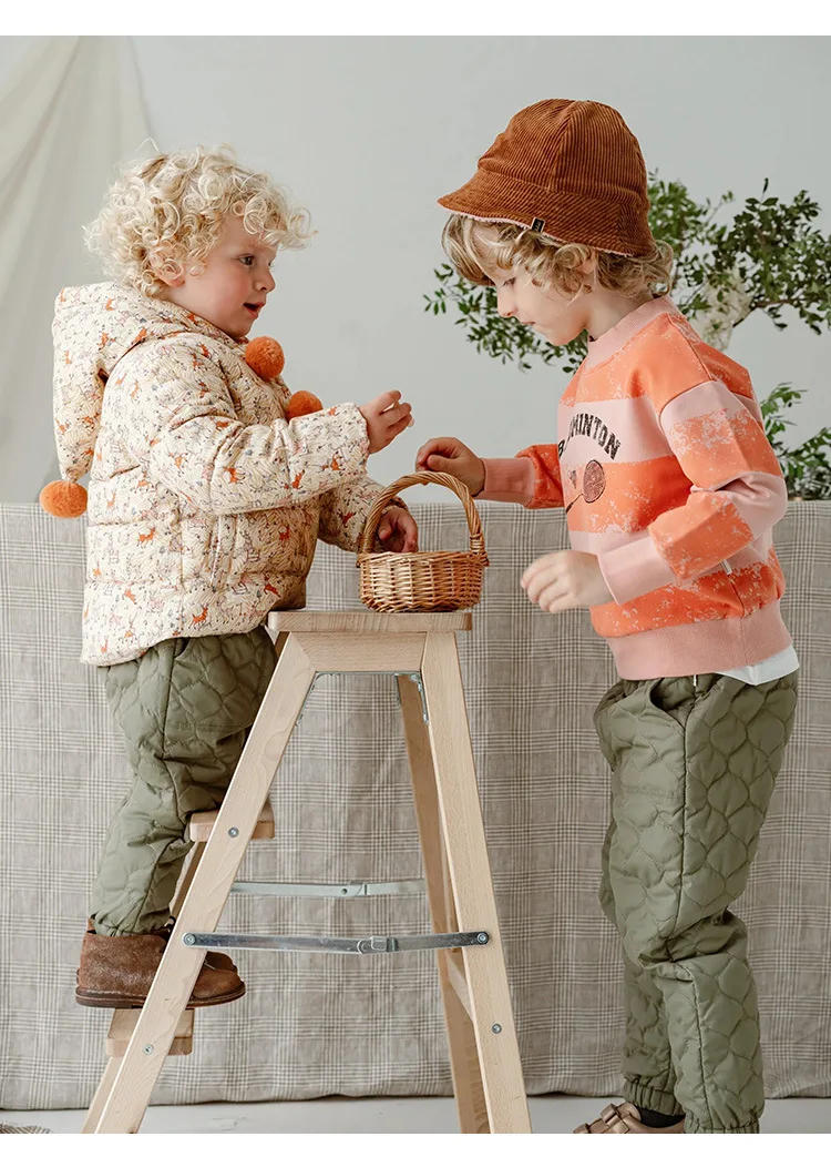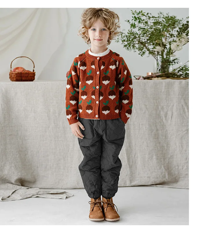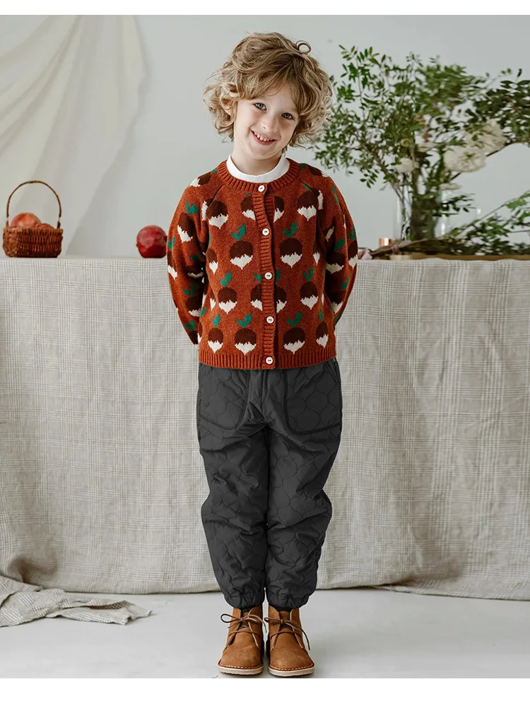 Pantaloni in cotone trapuntato per bambini autunno/inverno 2025 Nuovo stile in pile a forma di zucca addensato caldo pantaloni antivento Pantaloni per bambini