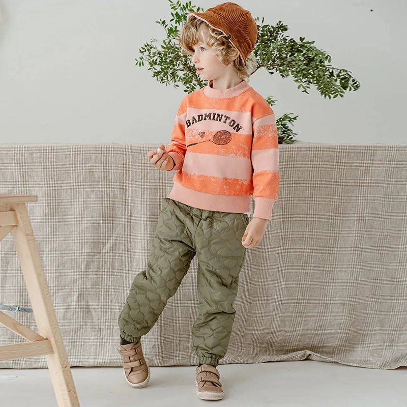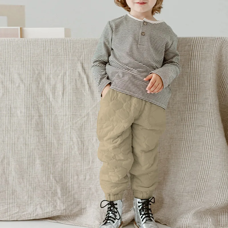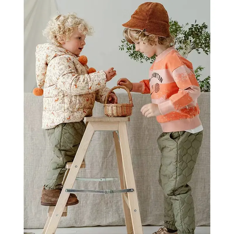 Pantaloni in cotone trapuntato per bambini autunno/inverno 2025 Nuovo stile in pile a forma di zucca addensato caldo pantaloni antivento Pantaloni per bambini