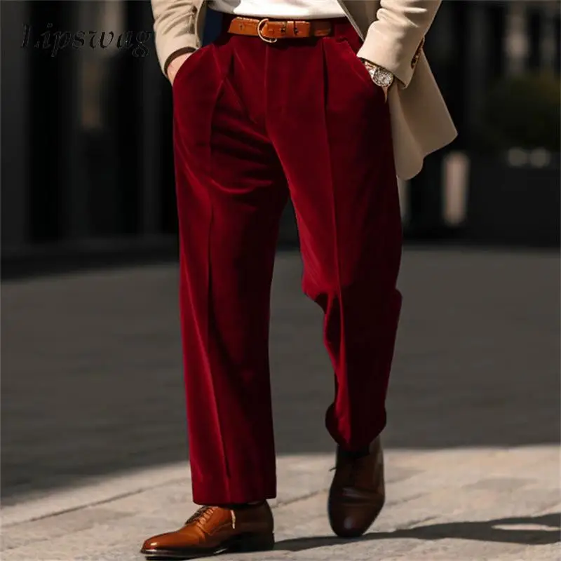 Pantaloni in velluto tinta unita per il tempo libero Pantaloni dritti larghi casual da uomo nuovi 2025 Pantaloni da abito moda primavera autunno per uomo Streetwear 1Pantaloni in velluto tinta unita per il tempo libero Pantaloni dritti larghi casual da uomo nuovi 2025 Pantaloni da abito moda primavera autunno per uomo Streetwear