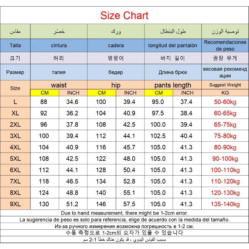 Taglia: 1XL ~ 9XL