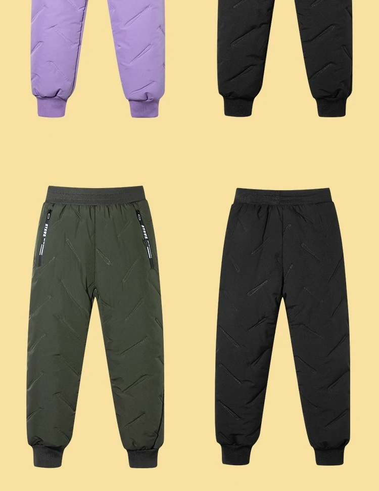 Pantaloni invernali per ragazze dei ragazzi doppiati Pantaloni caldi spessi imbottiti in cotone impermeabile Pantaloni da sci Pantaloni elastici in pile per bambini Abiti spessi