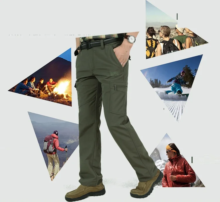 Nianjeep Pantaloni invernali in pile da uomo Pantaloni lunghi antivento impermeabili caldi Pantaloni casual da uomo Pantaloni militari da uomo Taglie forti