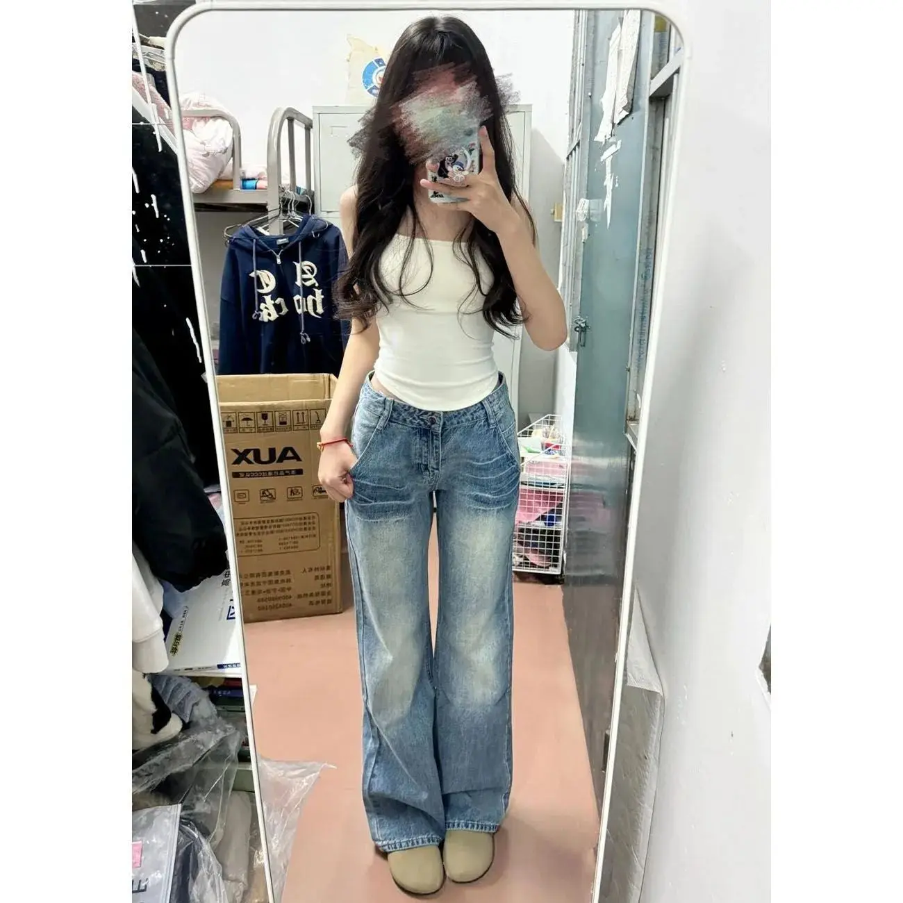 Pantaloni jeans da donna larghi slim fit American Vintage 2025 Autunno Inverno Nuovo stile a vita alta svasato gamba larga lunghezza del pavimento